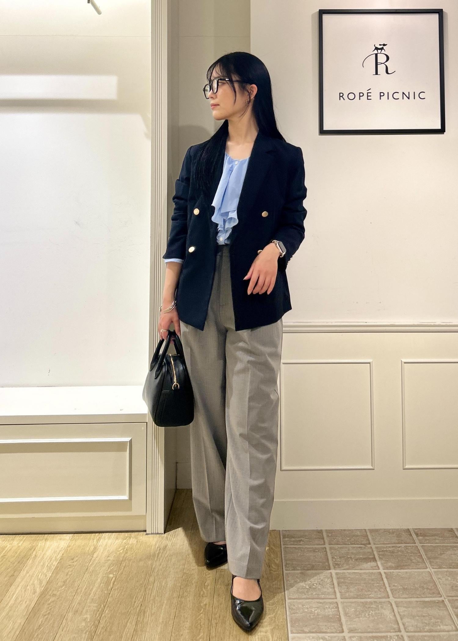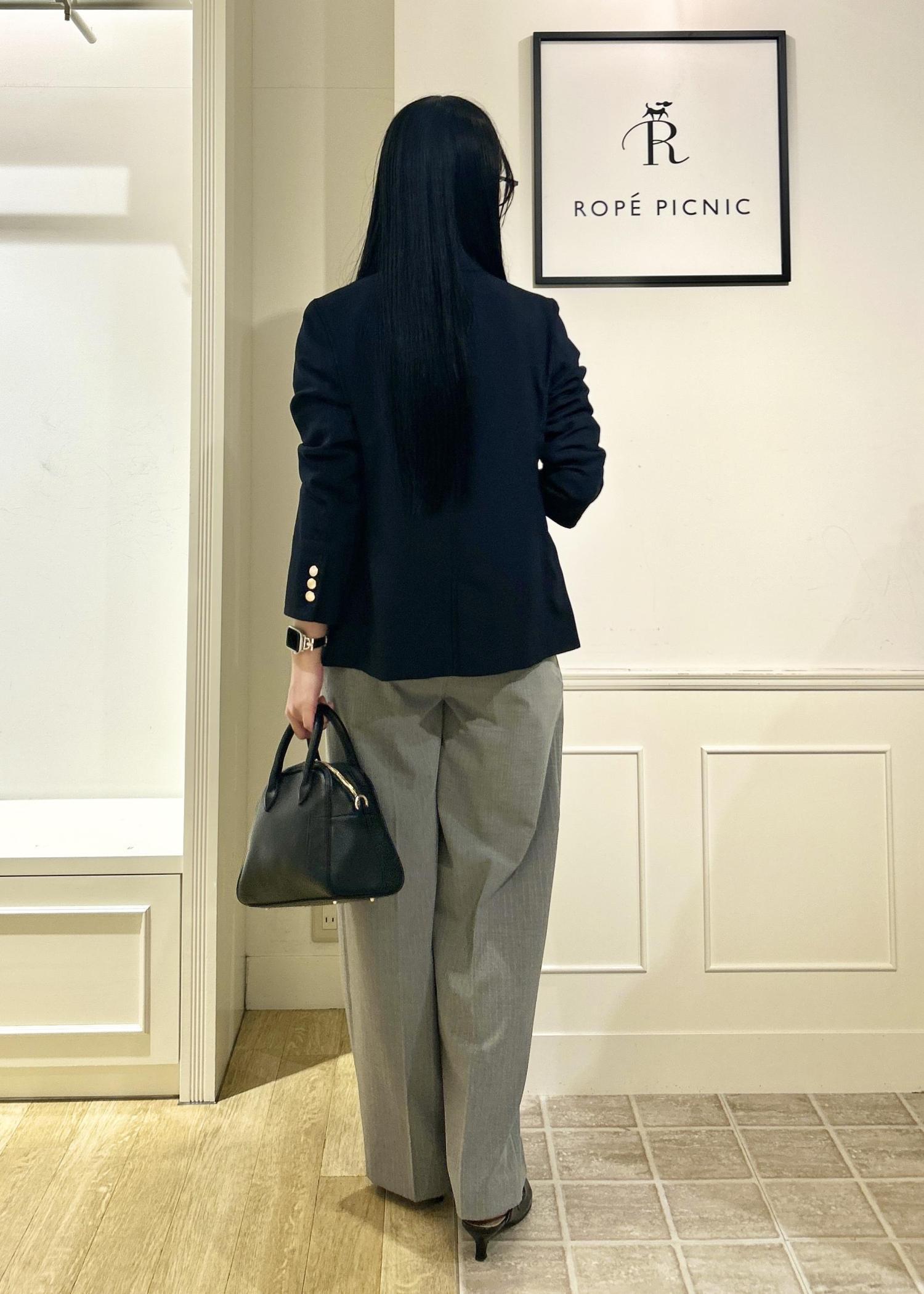 さらっとした素材感で、ネイビーでも重たく見えず、軽やかな印象です。