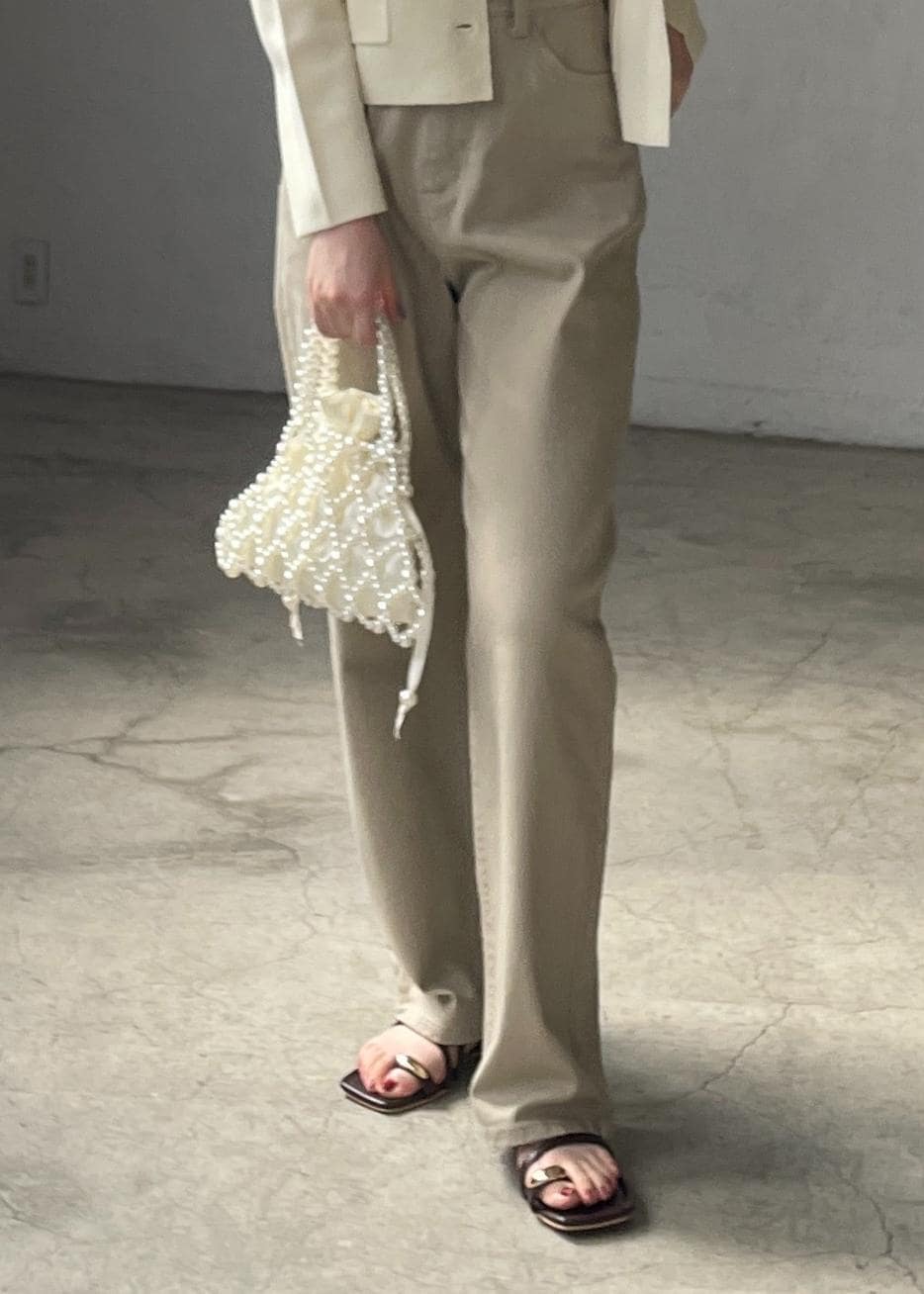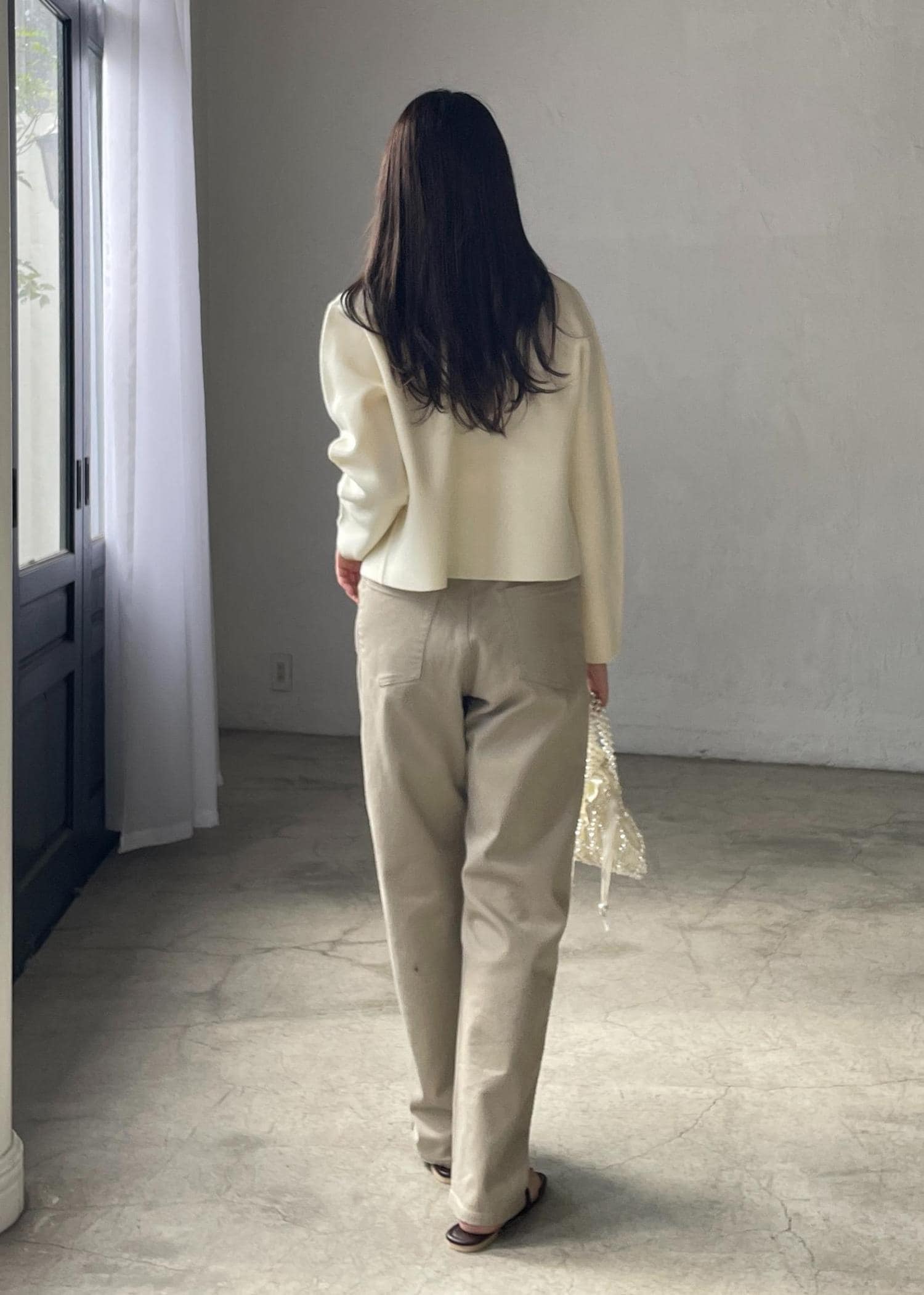 ベージュの色味は大人らしい落ち着いた印象になりながら、チノパンツのようなカジュアルさも感じられます。
