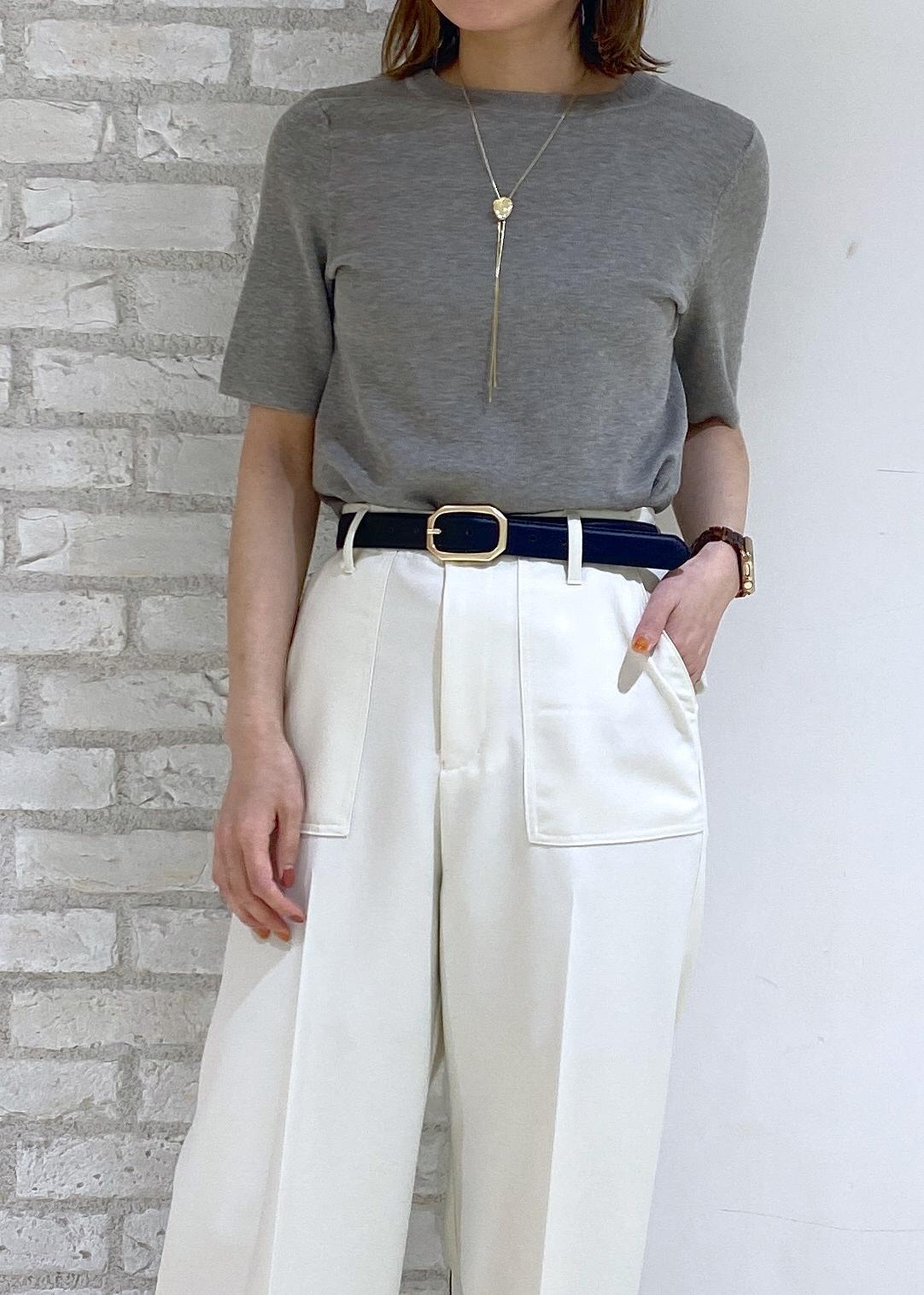グレーのハーフスリーブニットに
