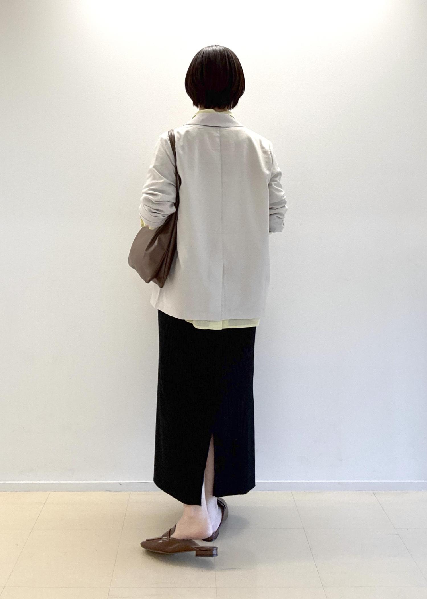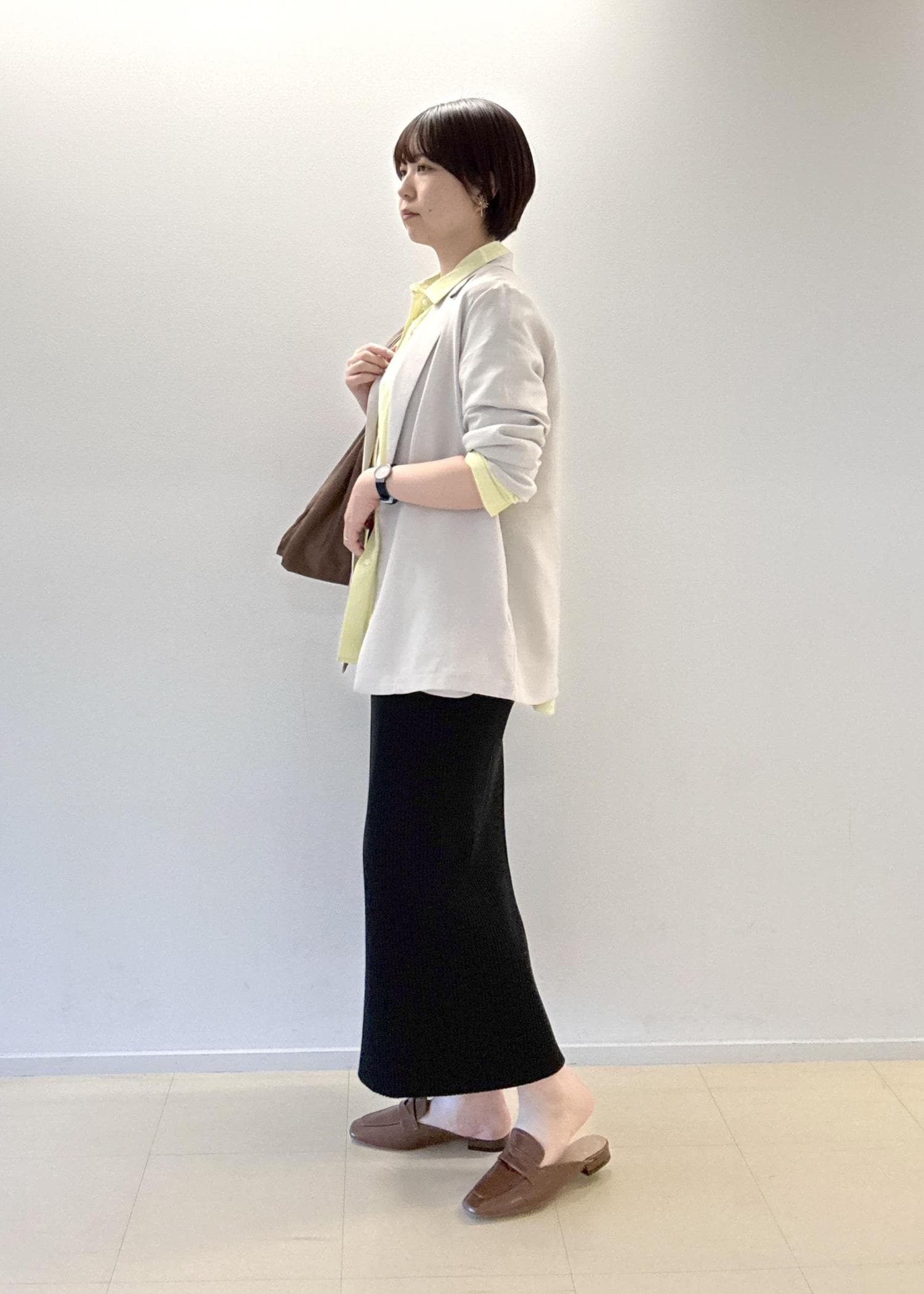 柔らかく少しとろみのある素材なのできれいめなスタイリングにも合わせやすいです。