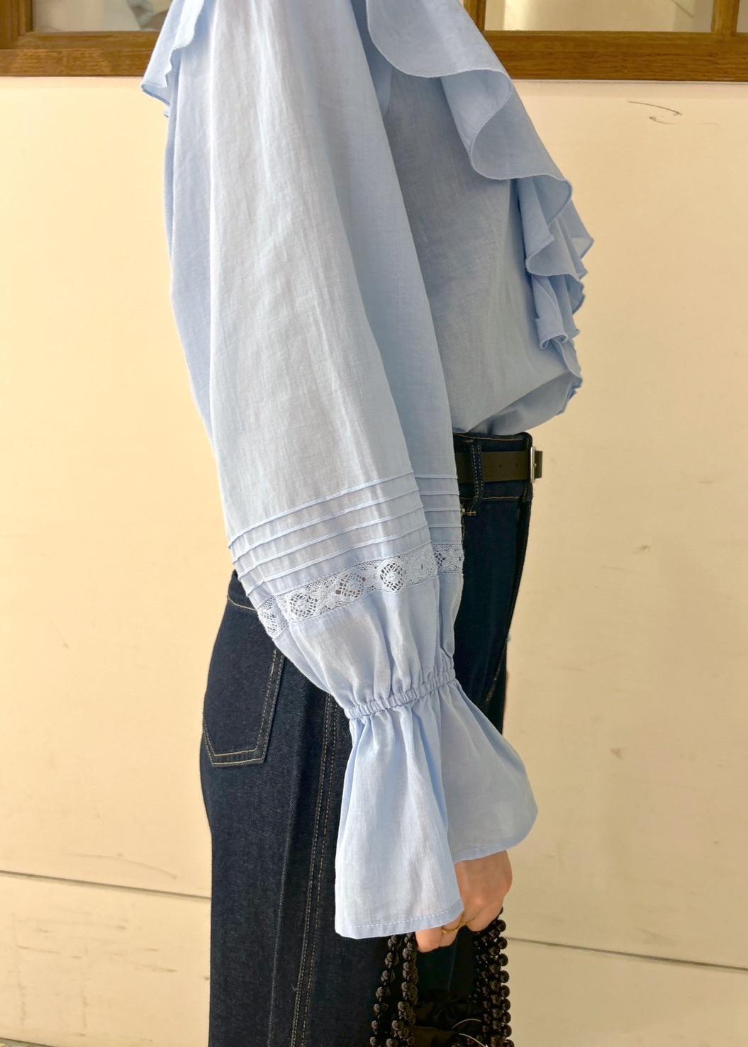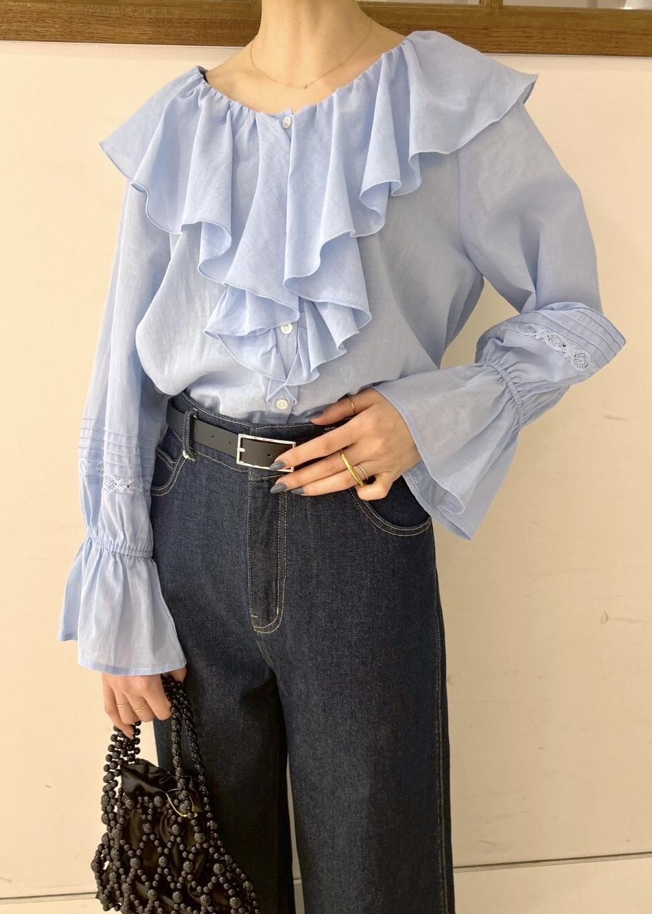 フリルが顔周りを華やかに見せてくれるブラウス。