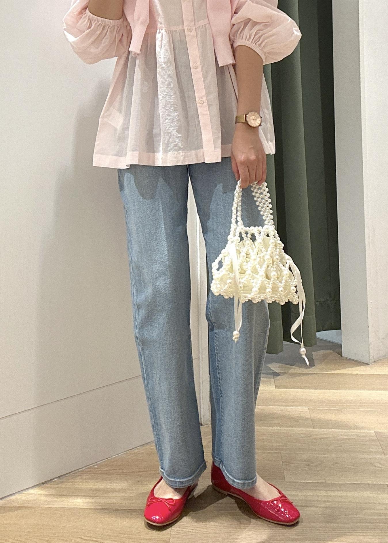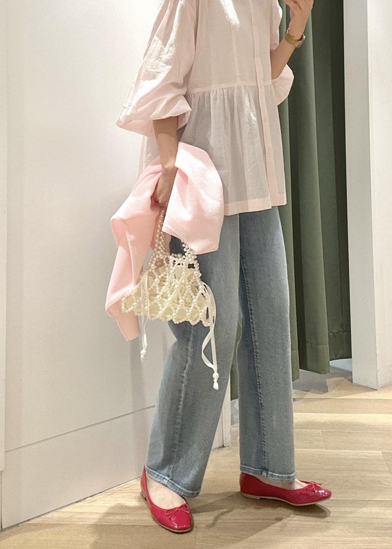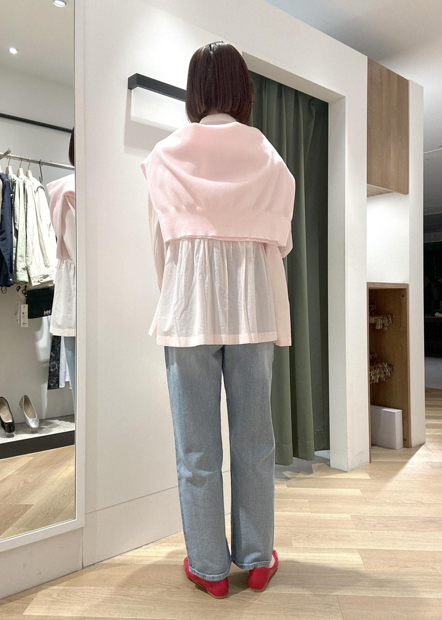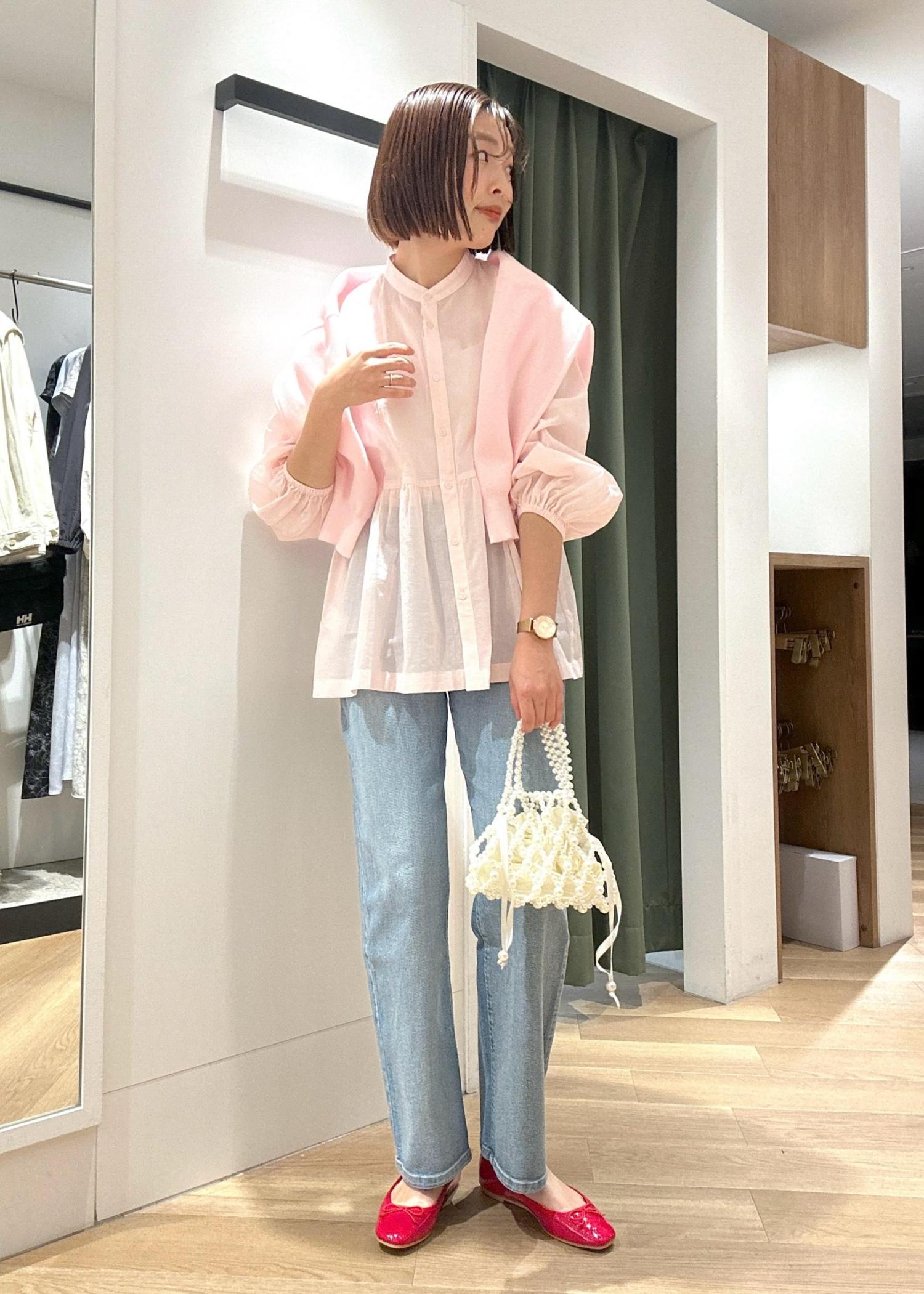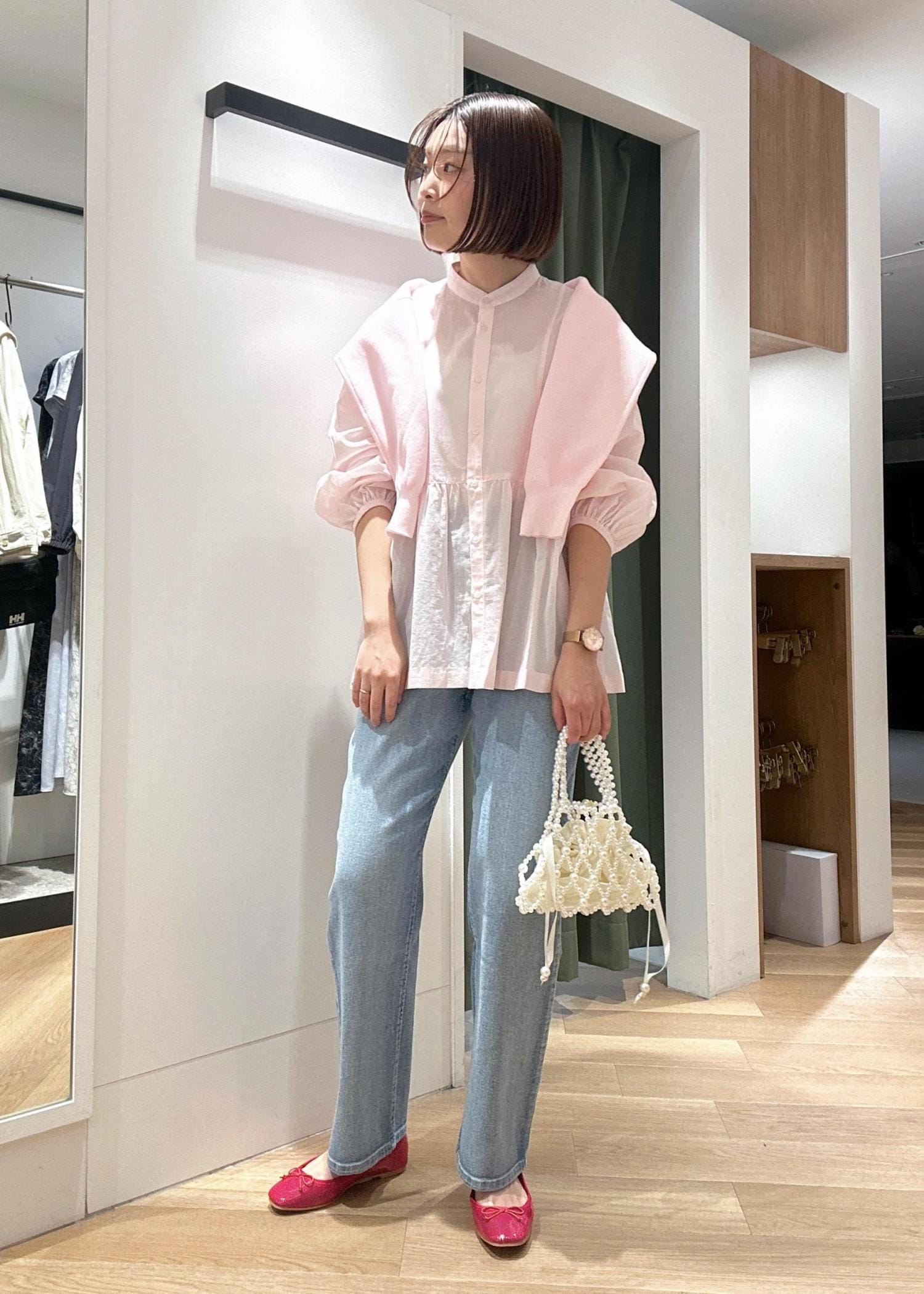 程よくハリのある、おしりにかかるくらいの丈を選ぶことが多いです!その分ボトムはボリュームを程よく抑えてスッキリと。