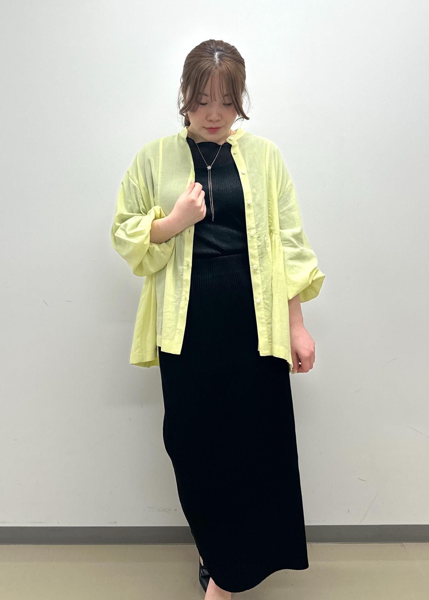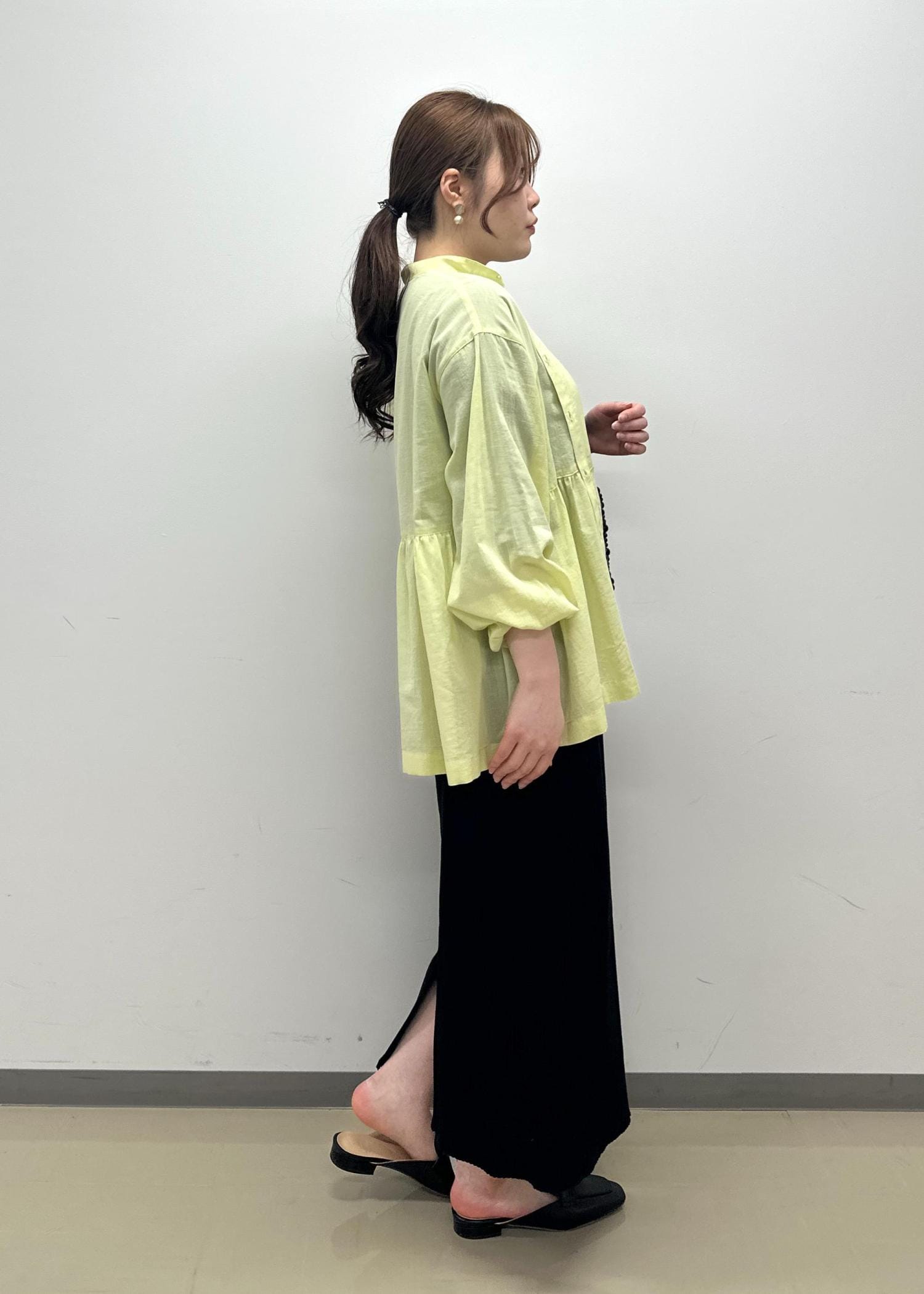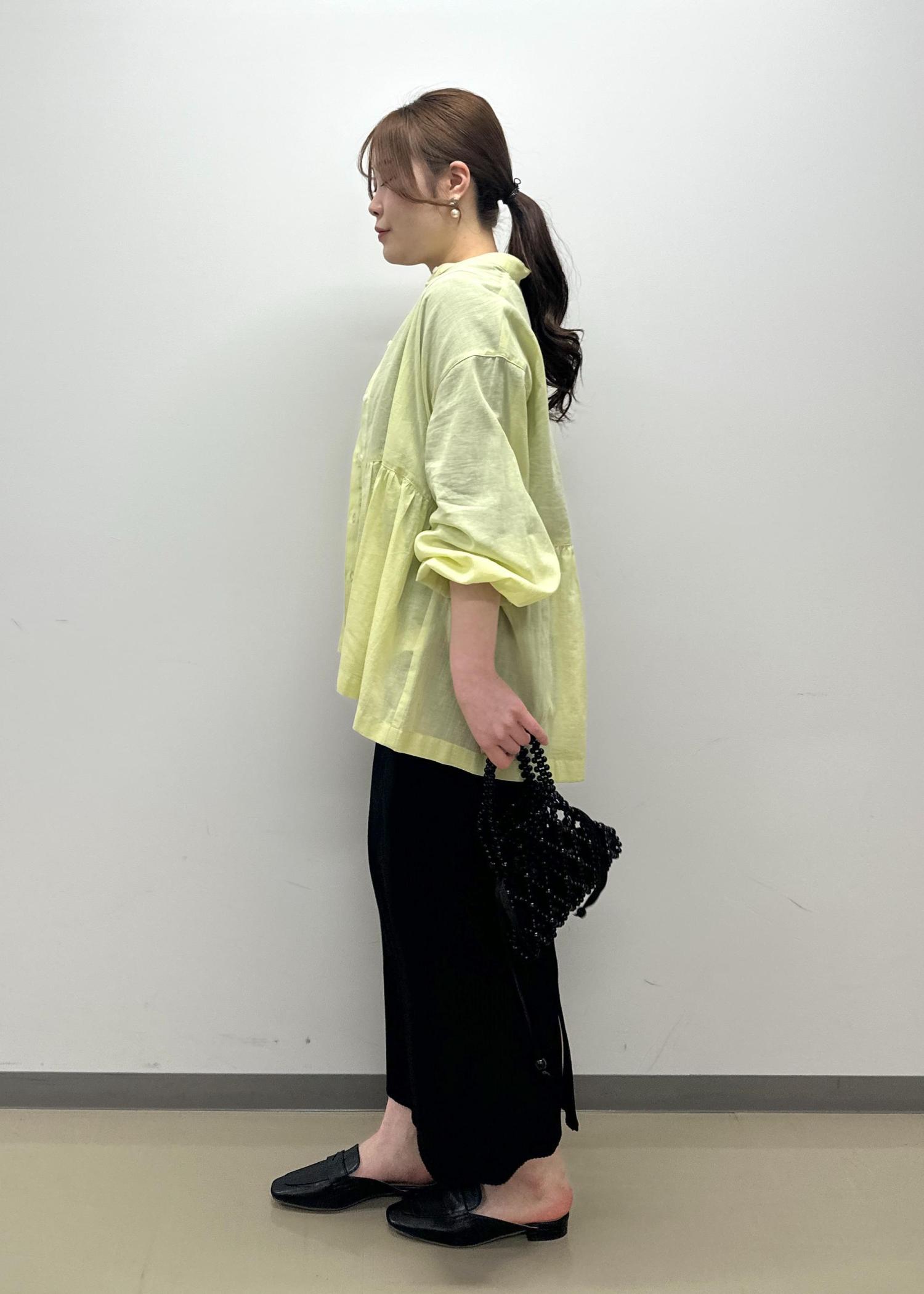 イエローのブラウスがメインになるようにその他のアイテムをオールブラックにしました!