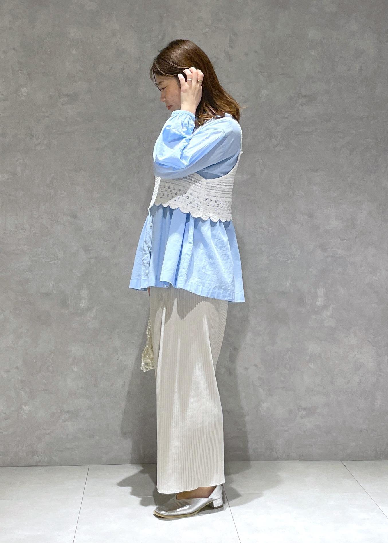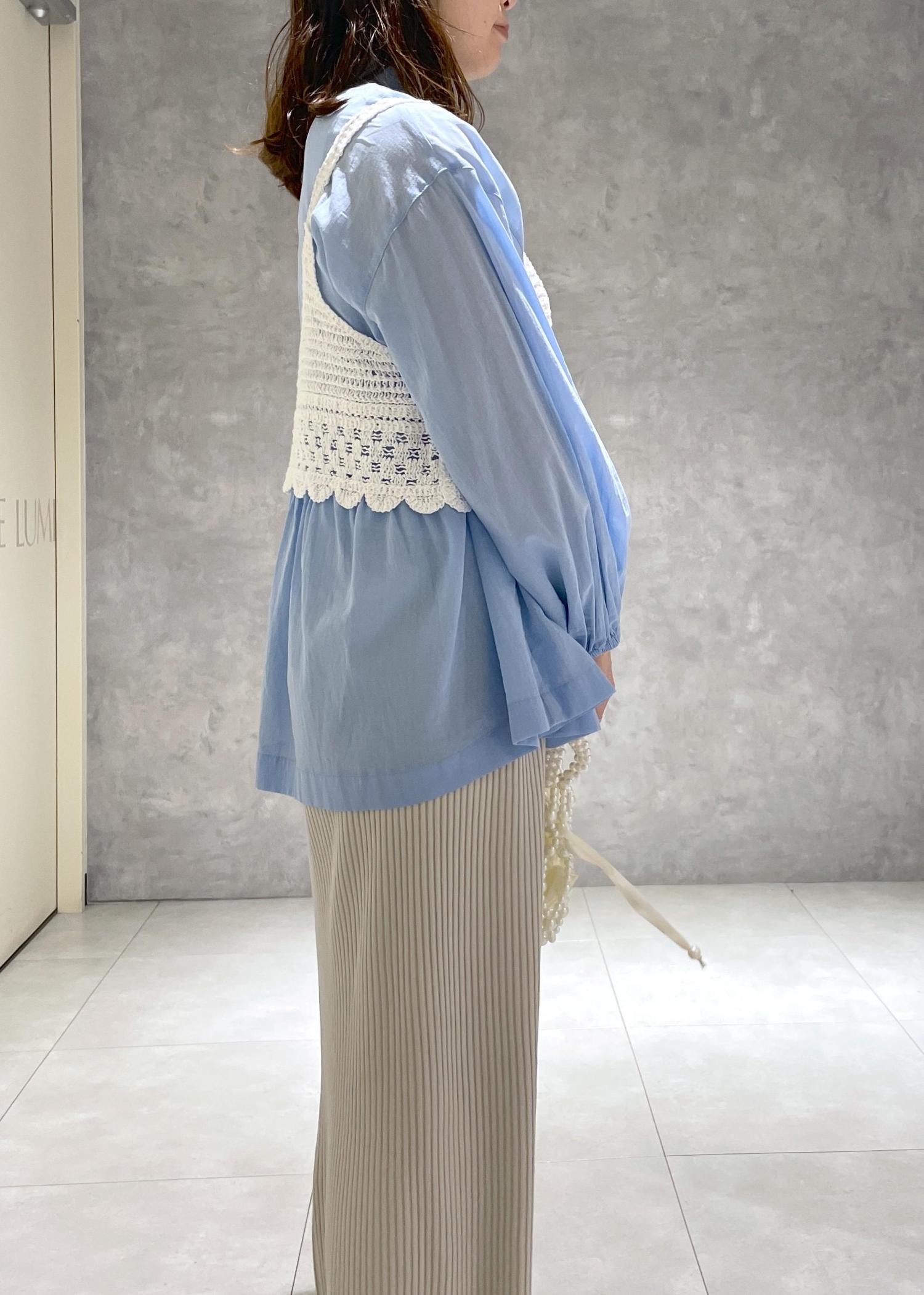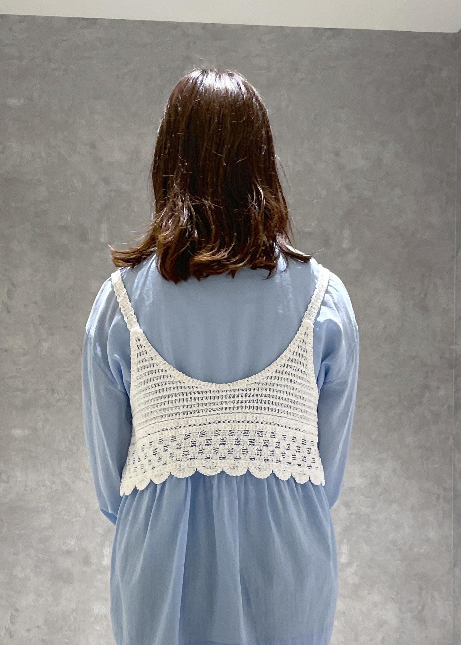 丈が短めなので合わせるアイテムを選びません。クロシェ編みがクラフト感ある雰囲気なのでカジュアルアイテムを合わせていただくのもおすすめです。