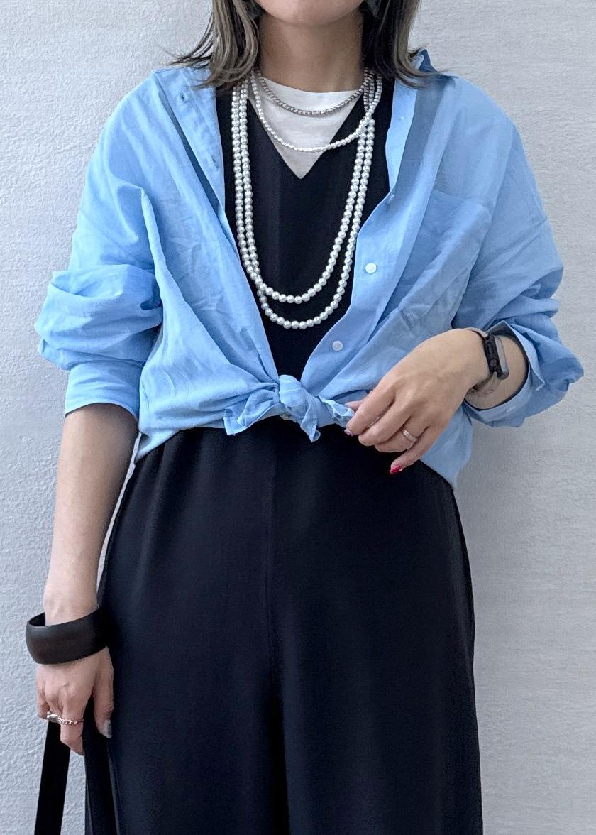 アウトレットROPÉ PICNIC【接触冷感・通気性】お着軽シャツシリーズ/綿ボイルバックタックシャツサックス / 38¥2,795レビューゆったりとしたシルエットでサラッと着られるシアーブラウス。バックスリットデザインがポイントで、1枚でもフロントを結んでアレンジしても、これからの春夏に着回し抜群のアイテムです。