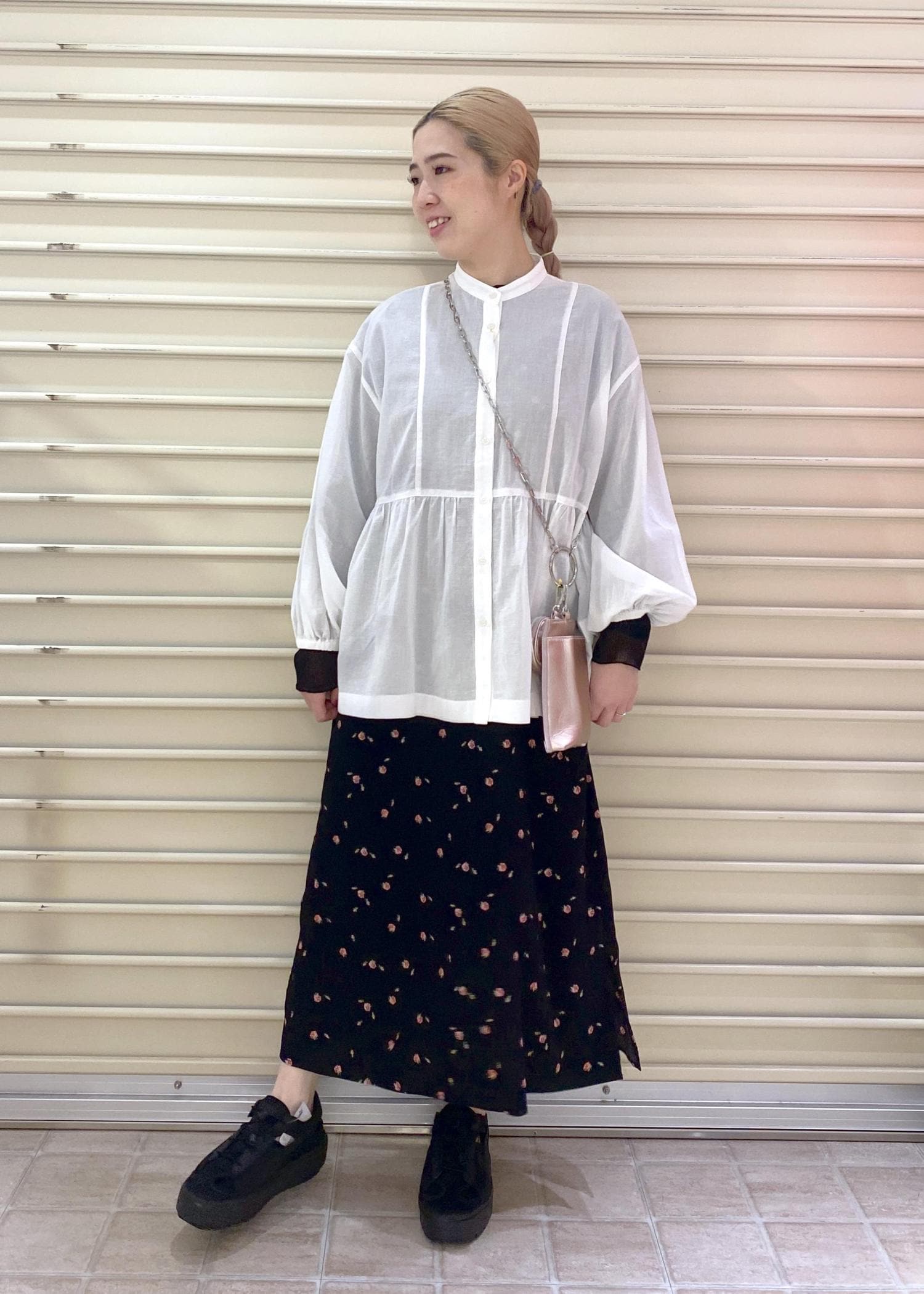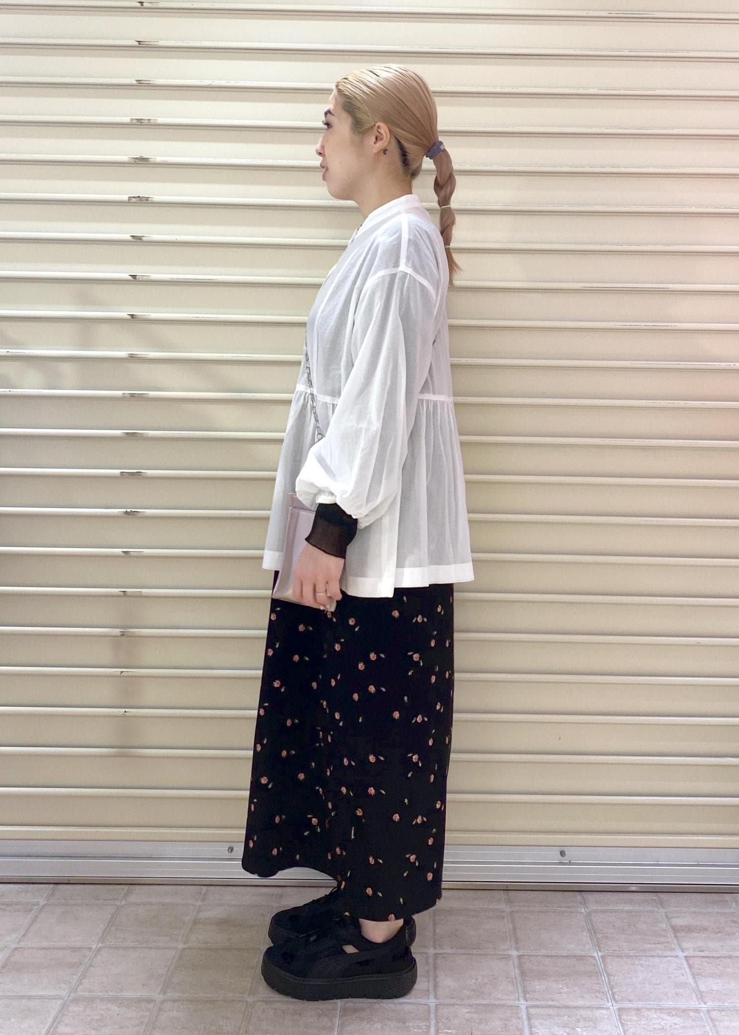 足元はブラックですがサンダルで軽く見えるようにしました。