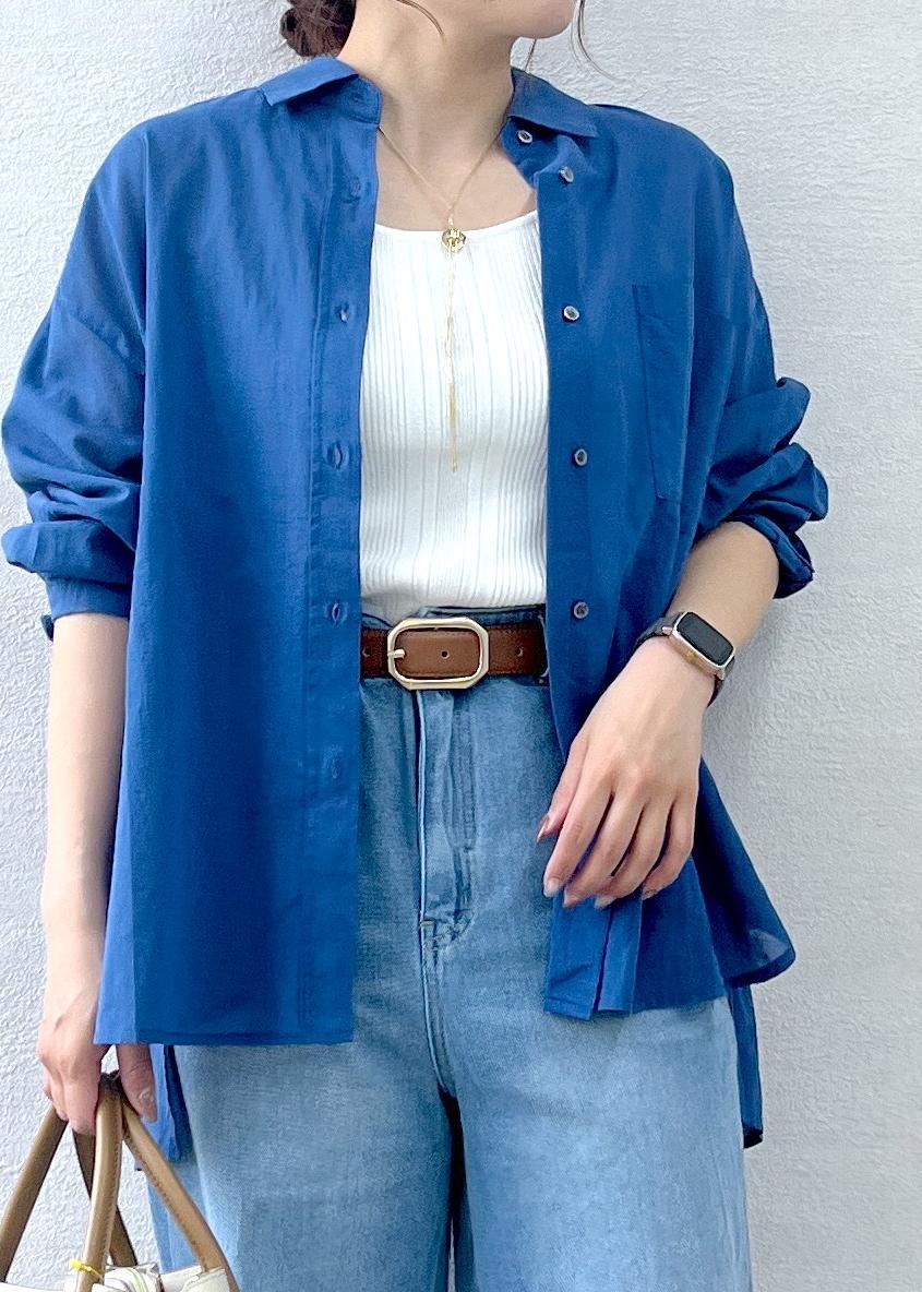 アウトレットROPÉ PICNIC【接触冷感・通気性】お着軽シャツシリーズ/綿ボイルバックタックシャツブルー / 38¥2,795レビューゆったりシルエットのシャツで、シアー感がある。