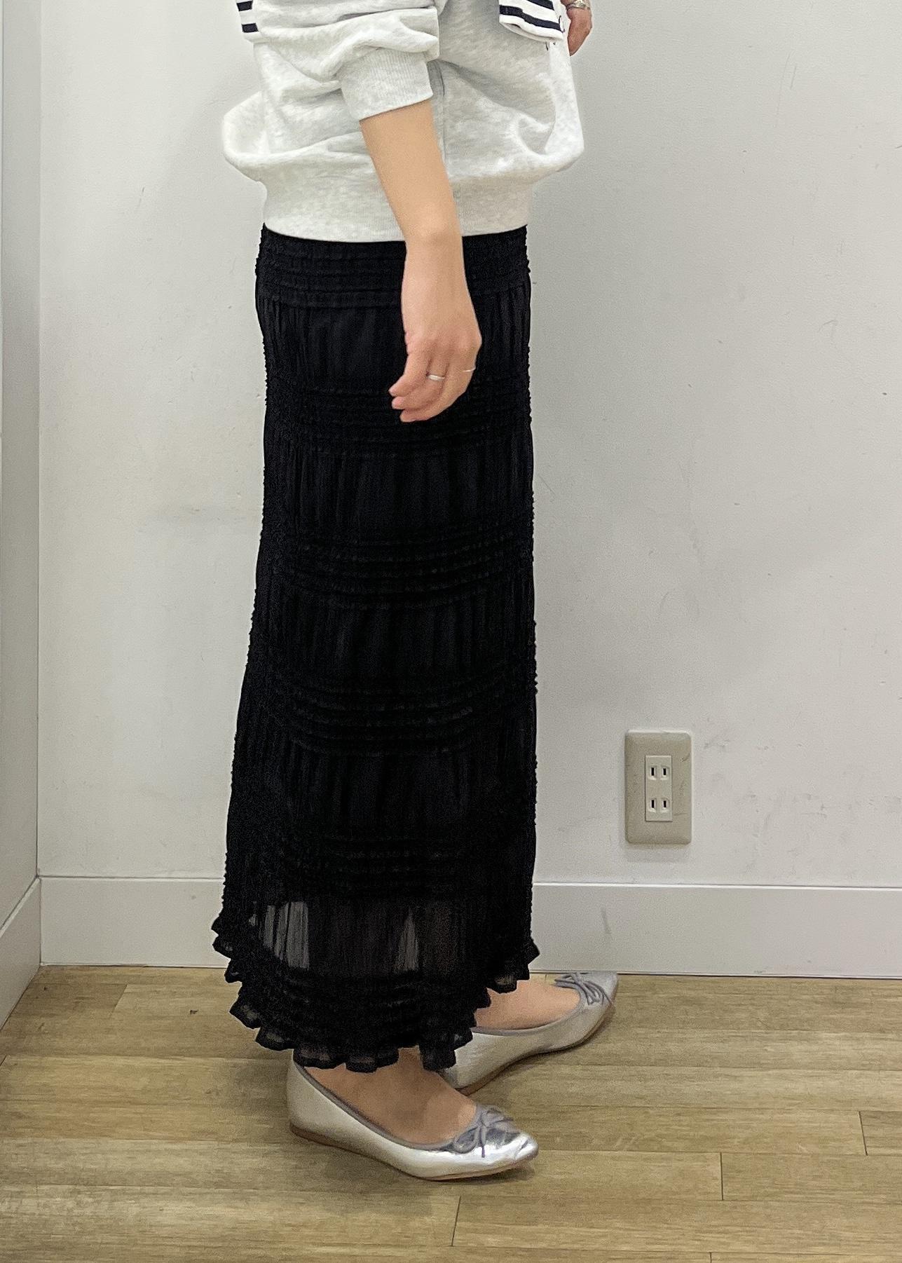 ROPÉ PICNICフリルギャザーロングスカートチャコール / 38¥6,490レビューウエストまわりがゴム仕様になっているので穿きやすいです。丈も長めで安心感があります。