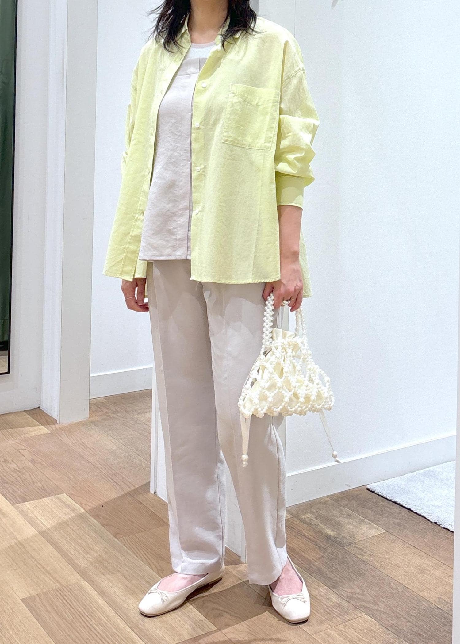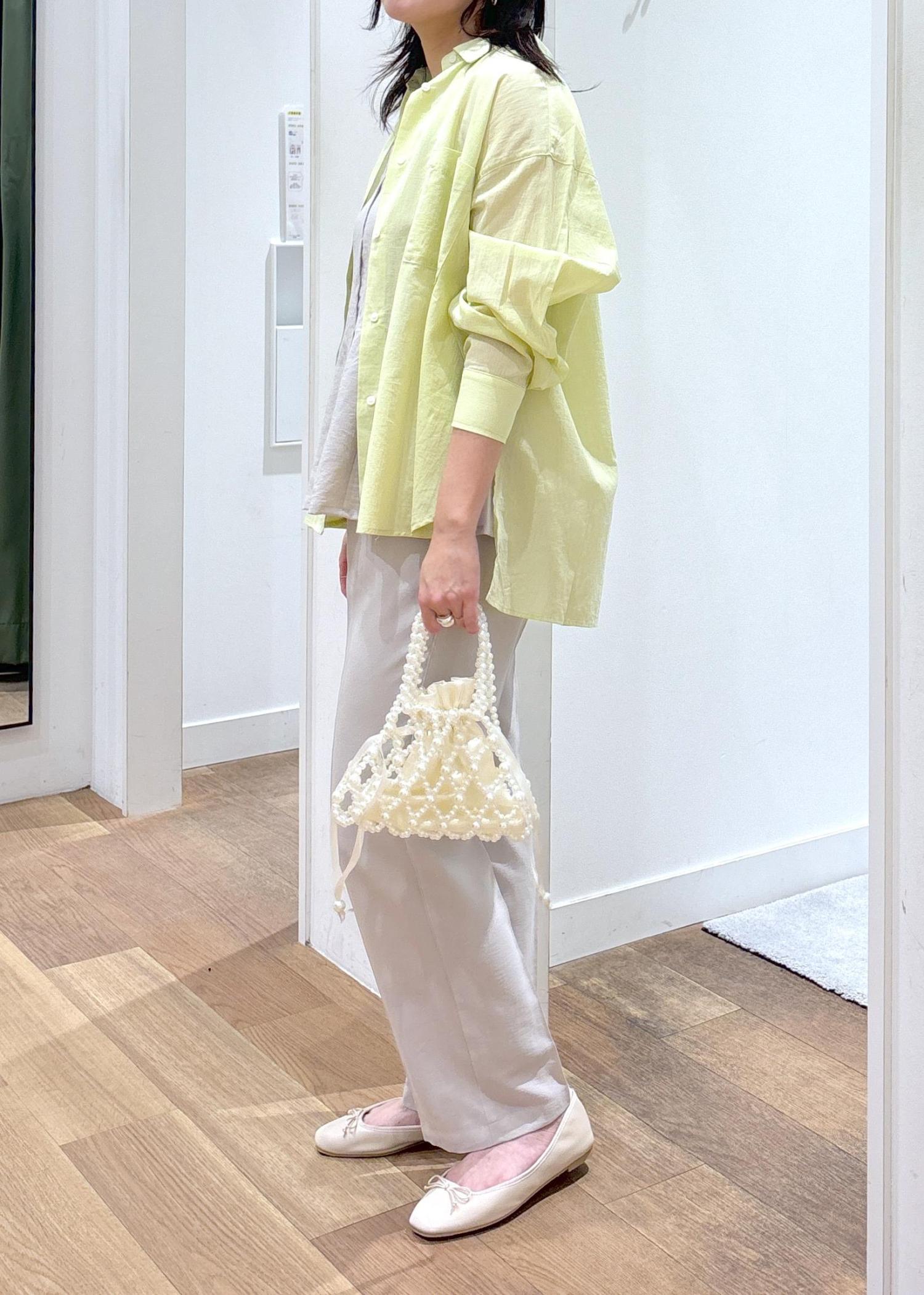 少し光沢のある柔らかなベージュは色物との相性も良く、春らしくておすすめです♪