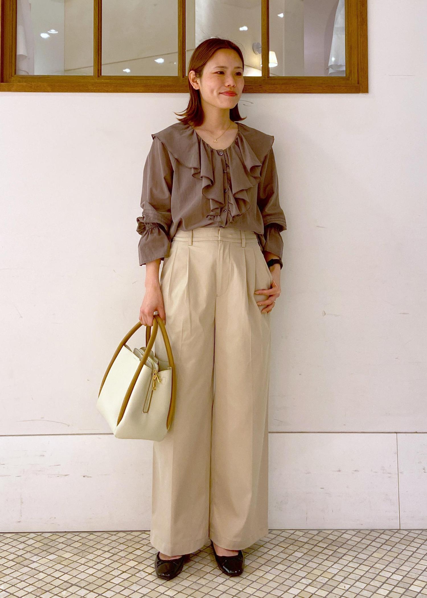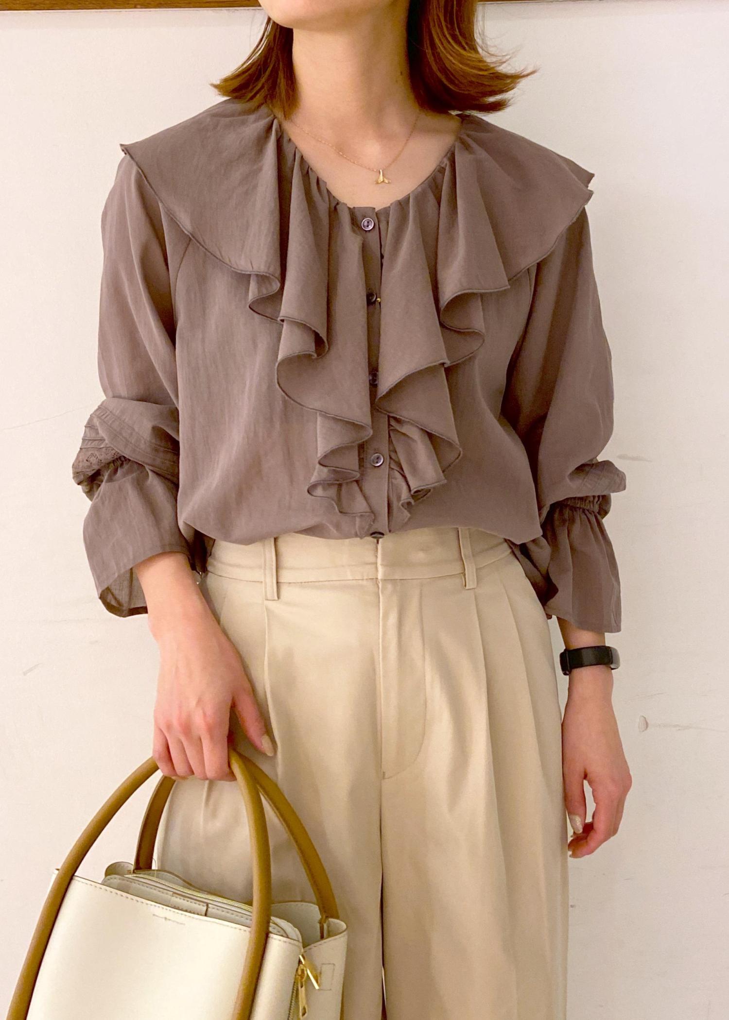 アウトレットROPÉ PICNIC【接触冷感・通気性】お着軽シャツシリーズ/綿ボイルフリルブラウスブラウン / 38¥4,391レビュー着丈は短めです。