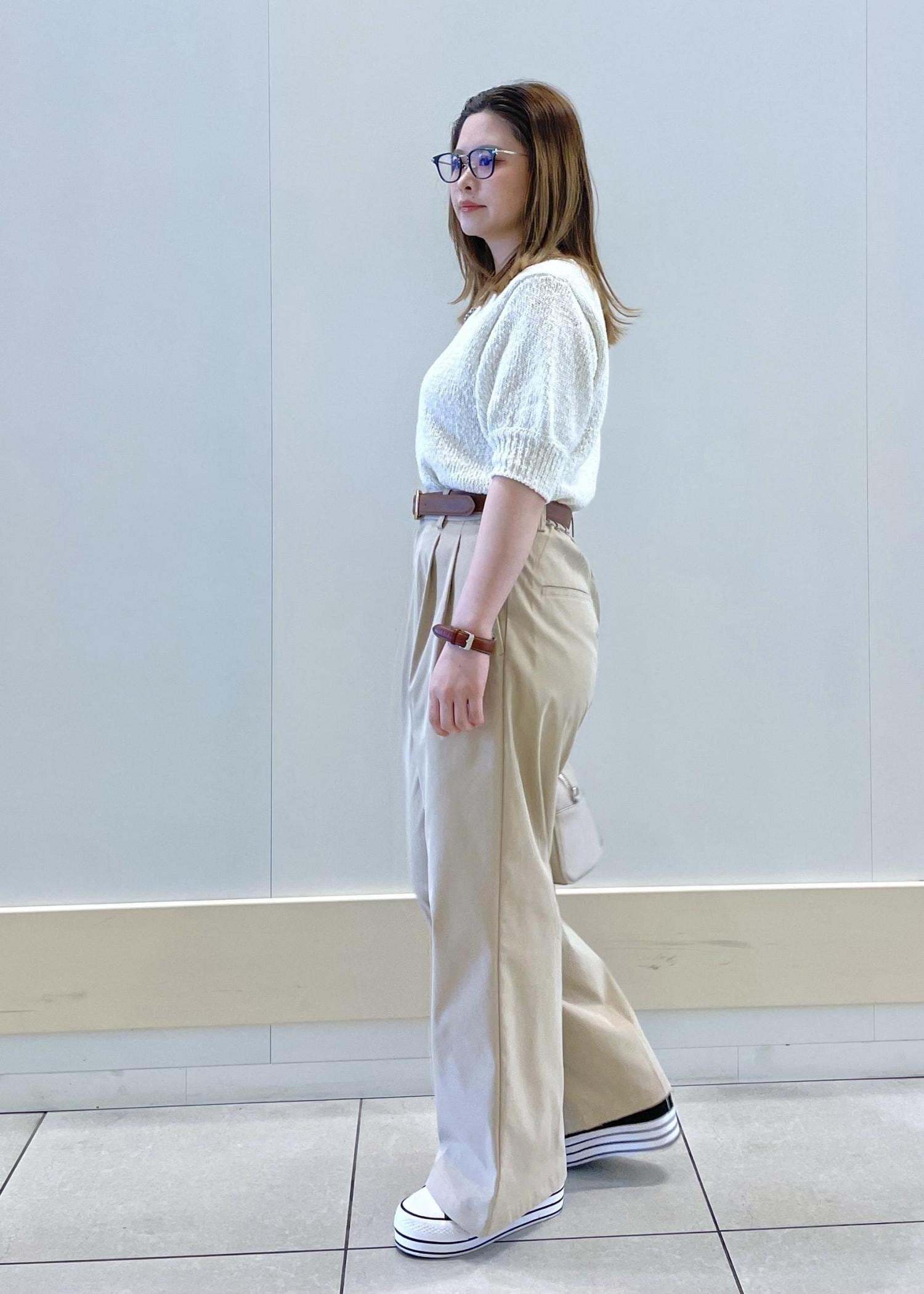 ラメ感がきれいなサマーニットにチノライクのパンツを合わせました!