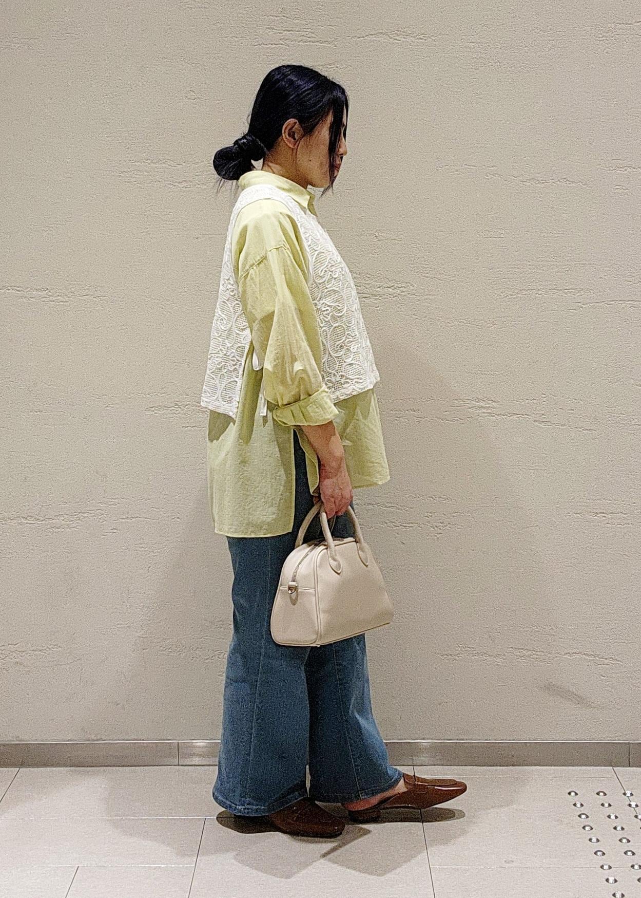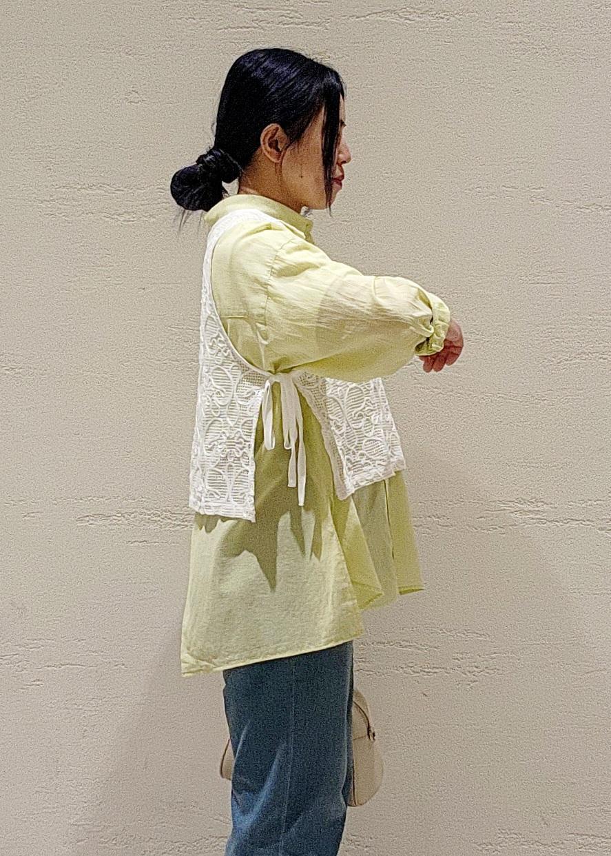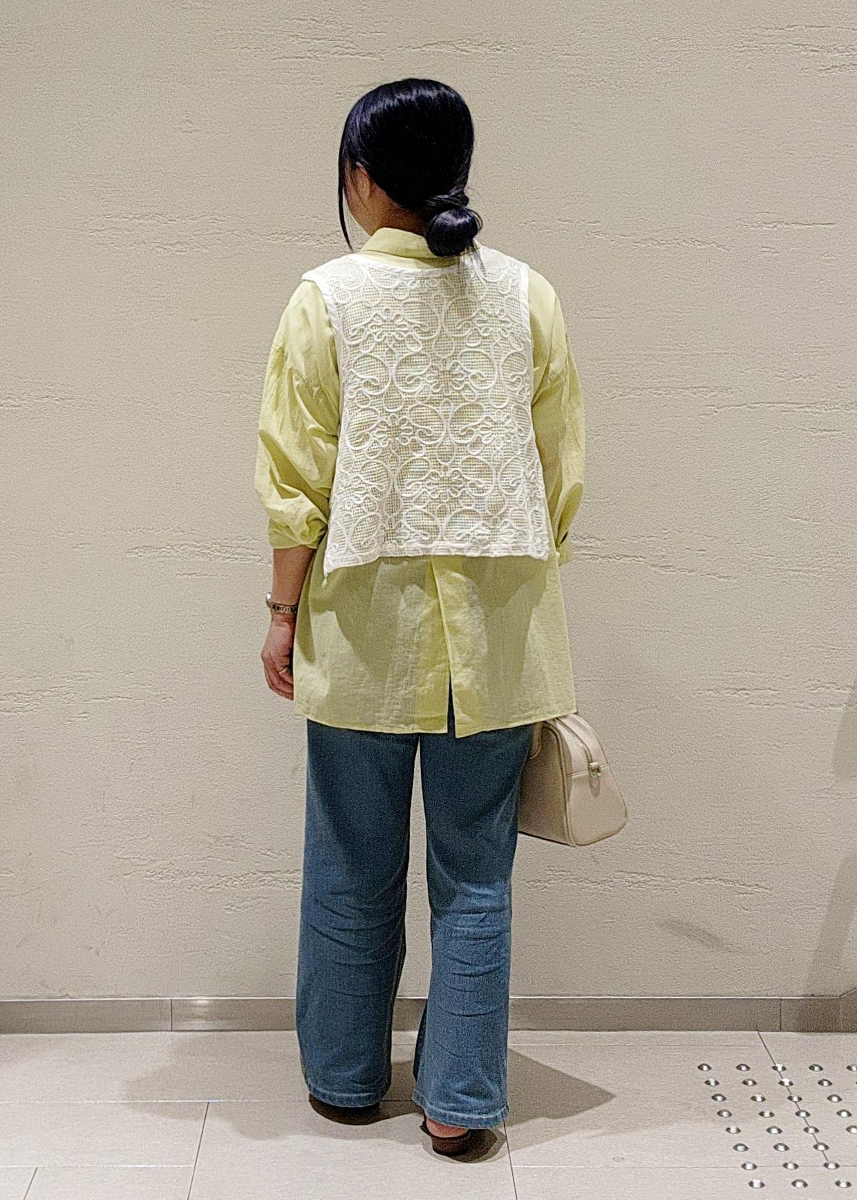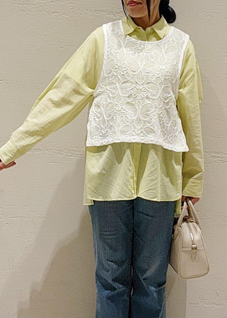 シャツにレースベストを重ねて、スタイルアップとお洒落度アップ!