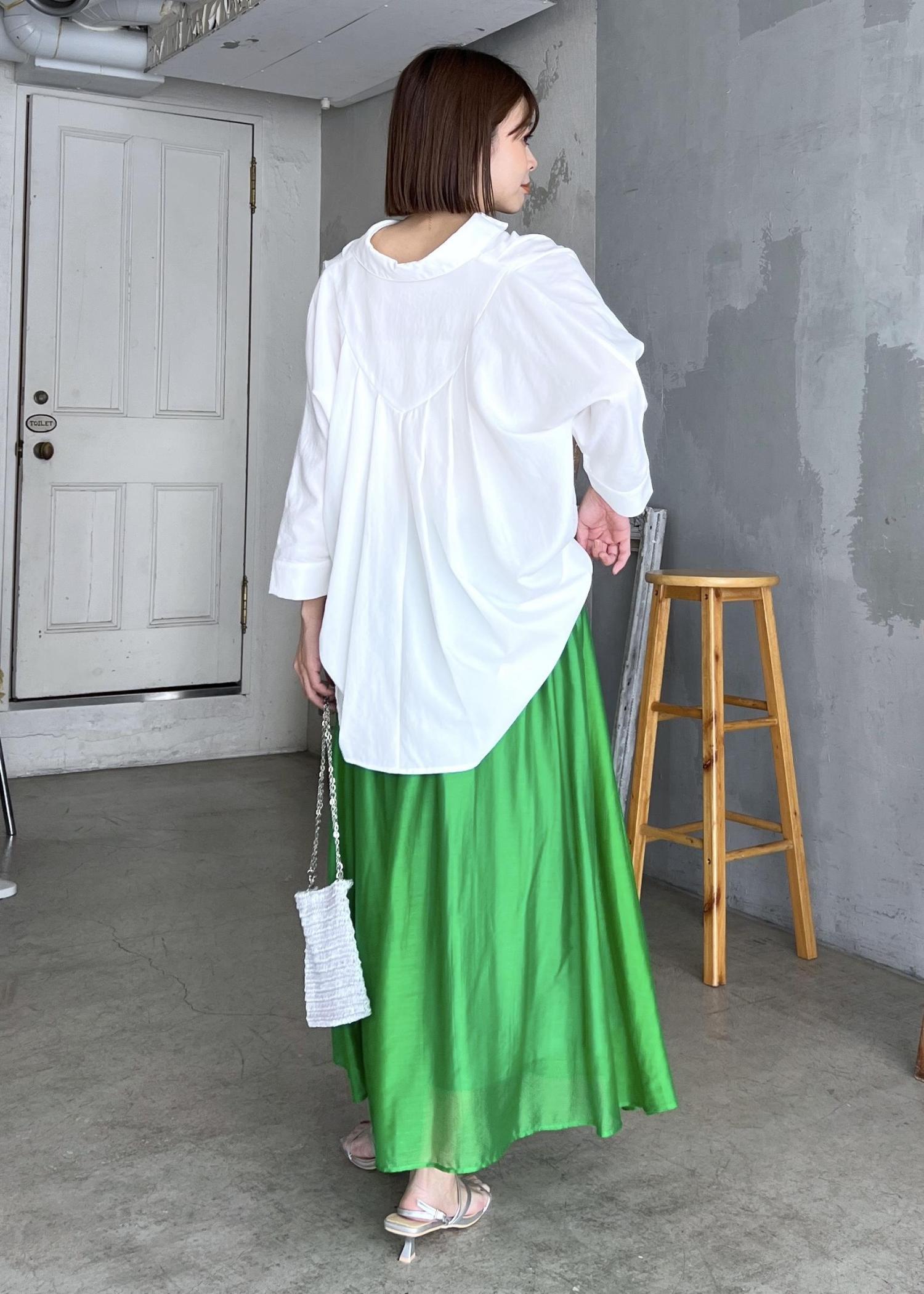ゆったりシルエットのシャツを合わせて、体型カバーも叶うコーデにしました。