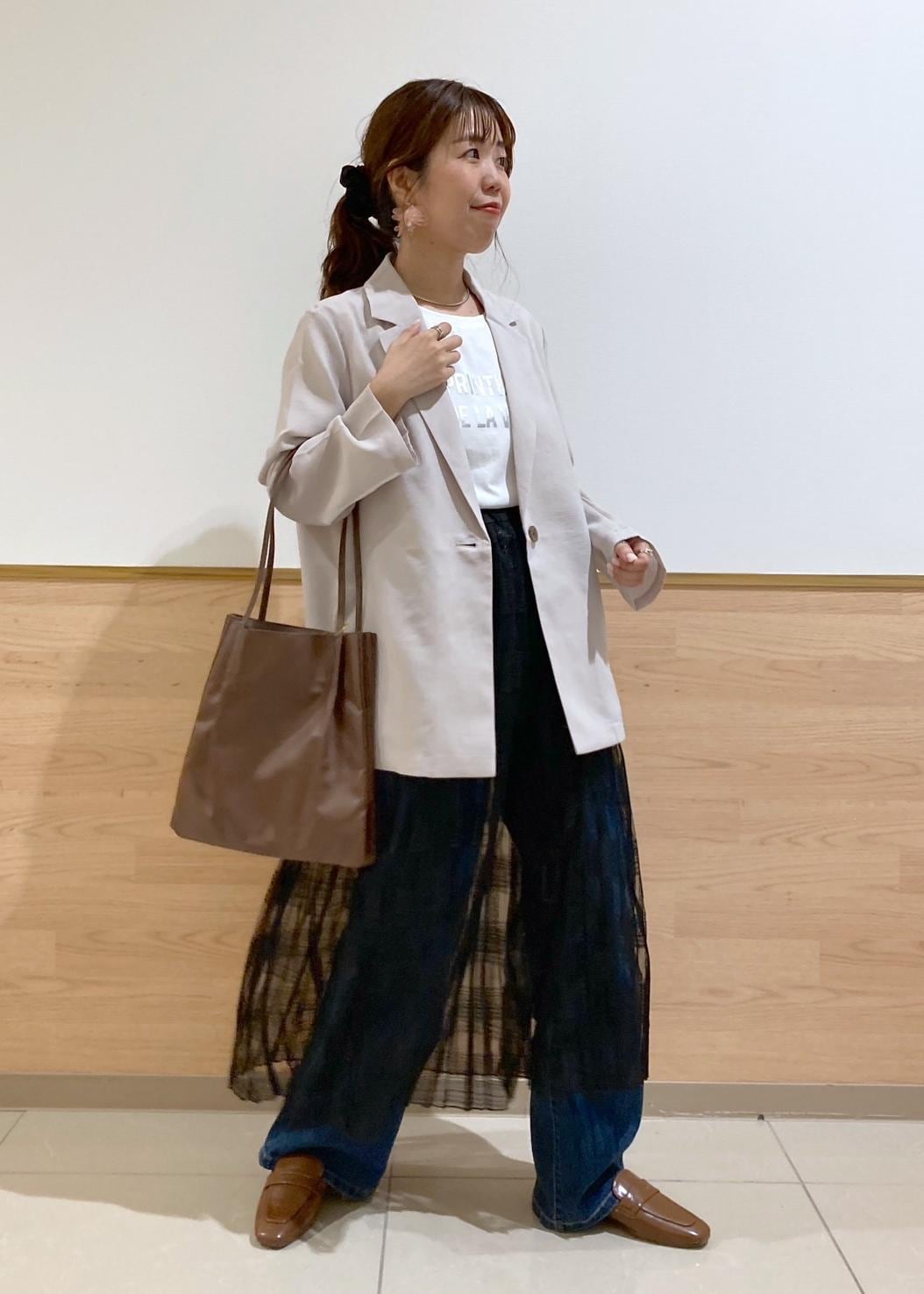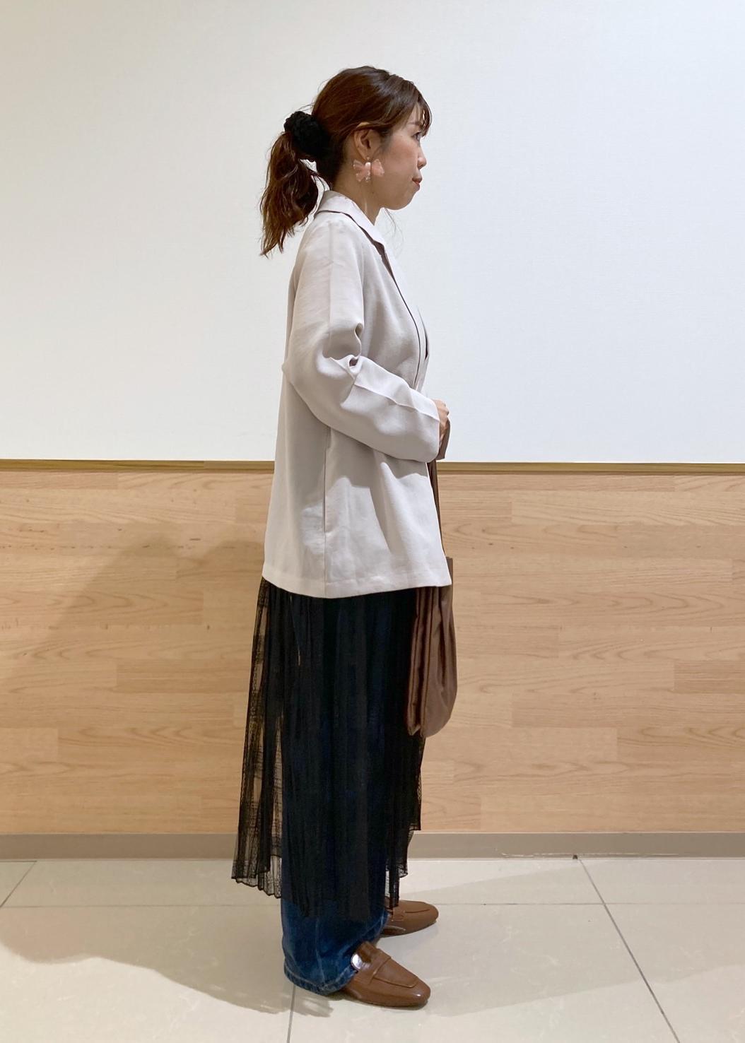 デニムの上にレイヤードとして着用することで体型カバー+トレンド感が出ておすすめです。 -