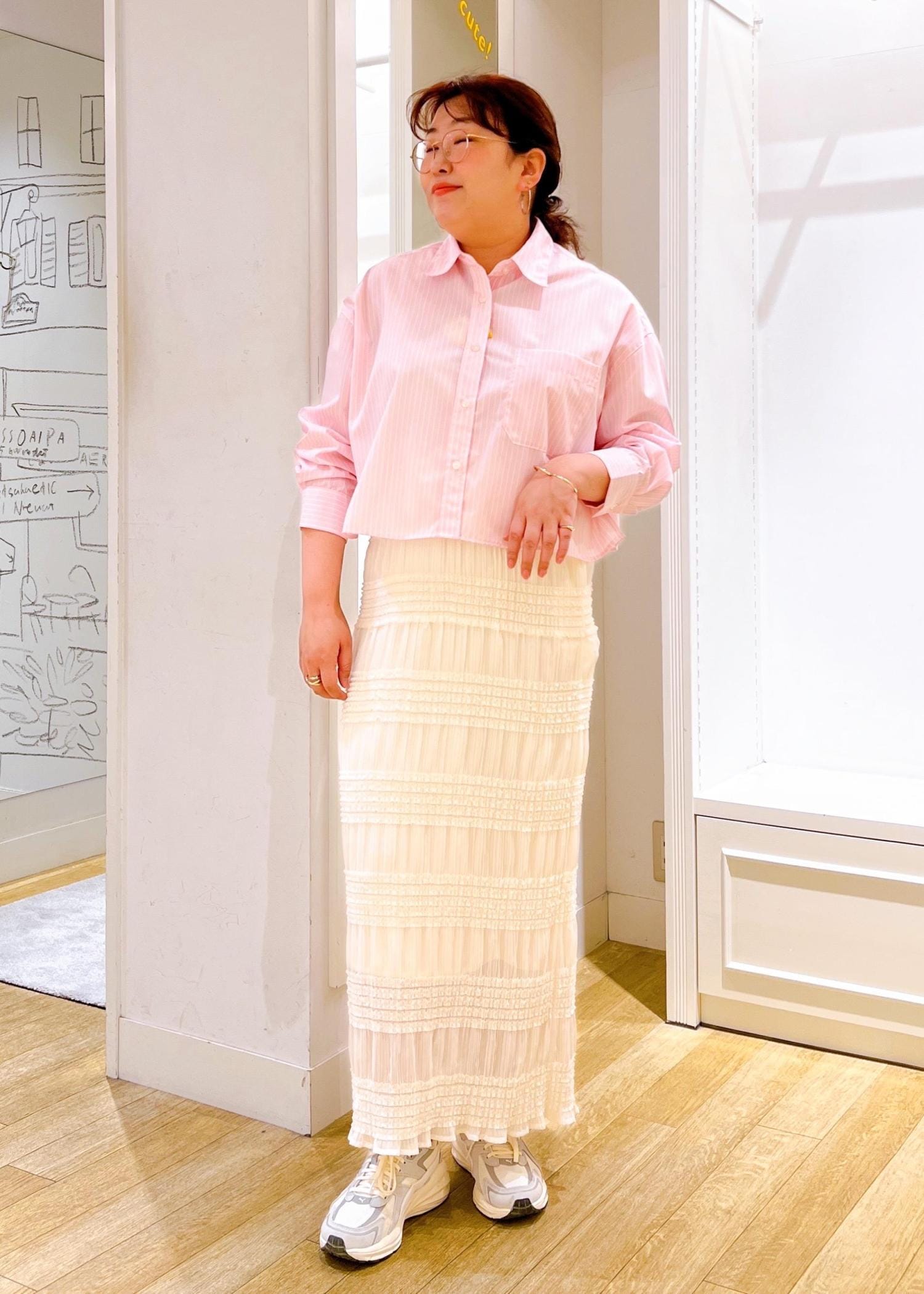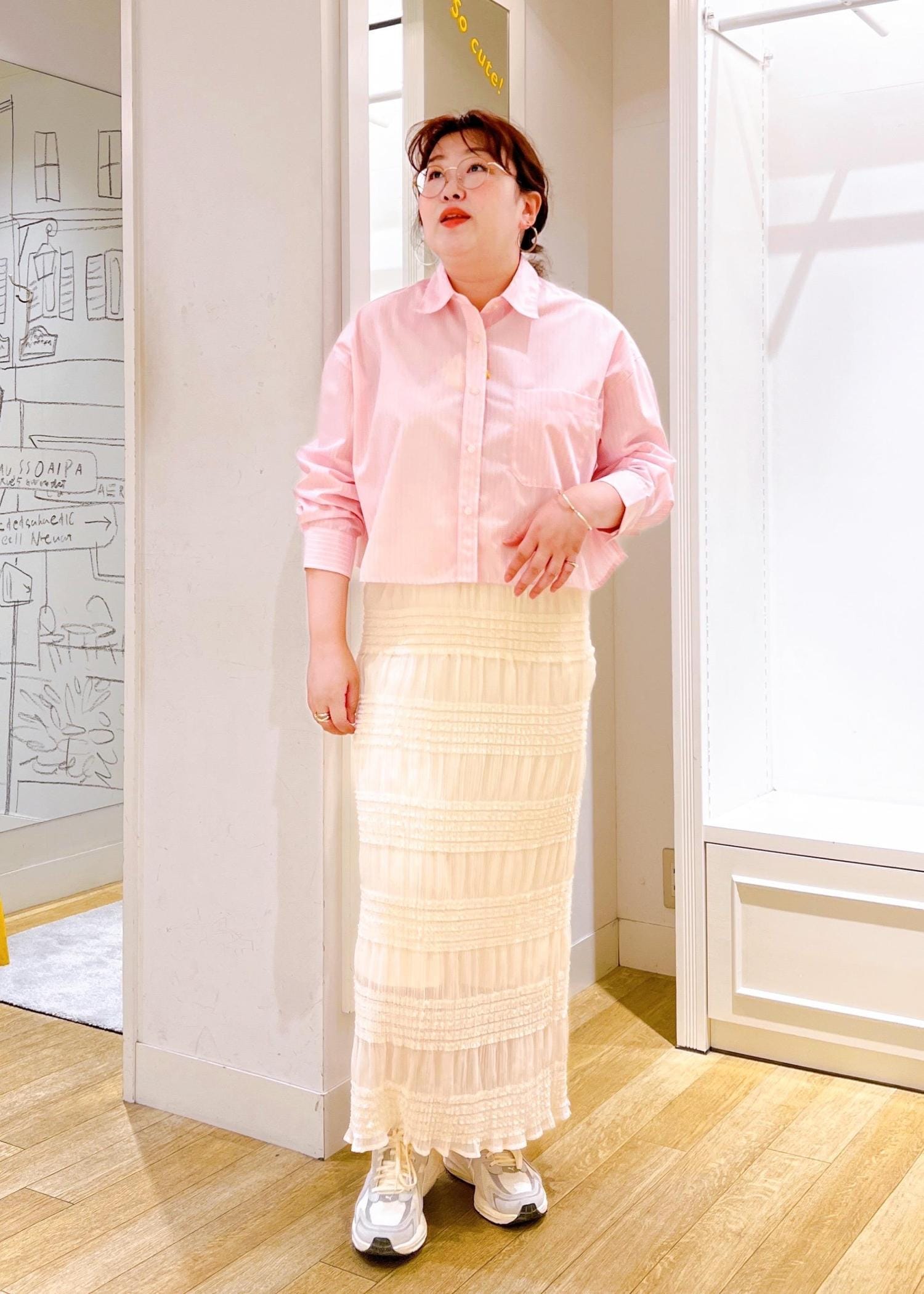 ピンクで絶妙なバランスのフェミニンコーデ♪