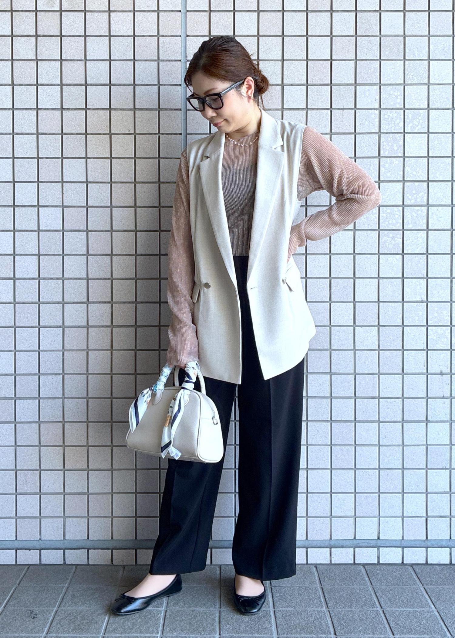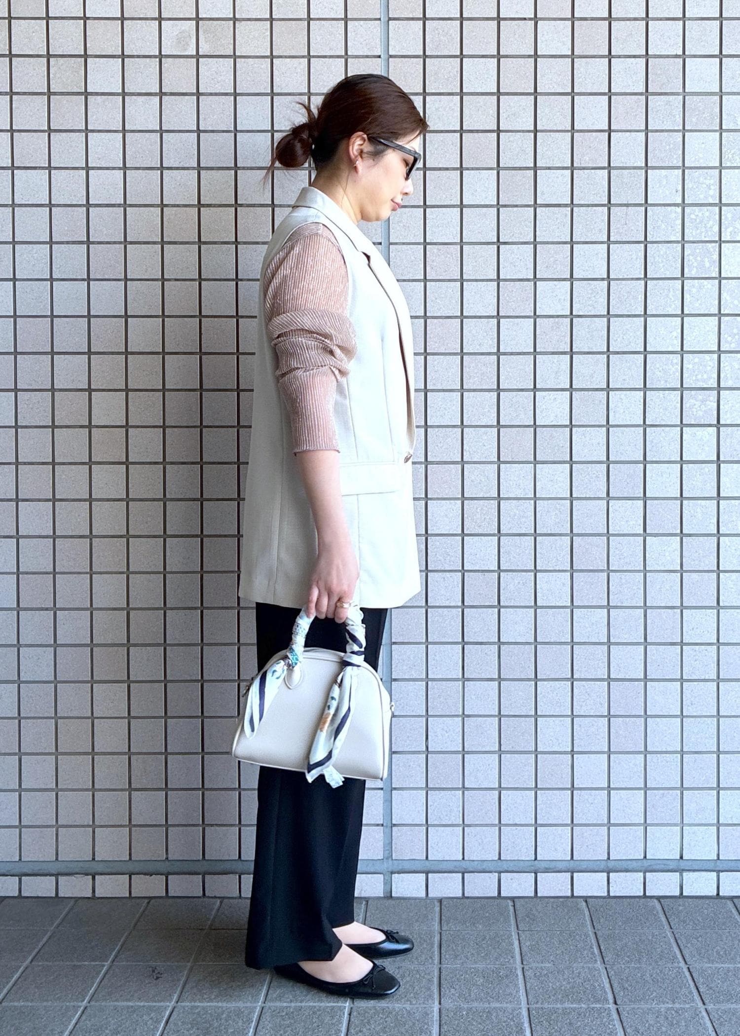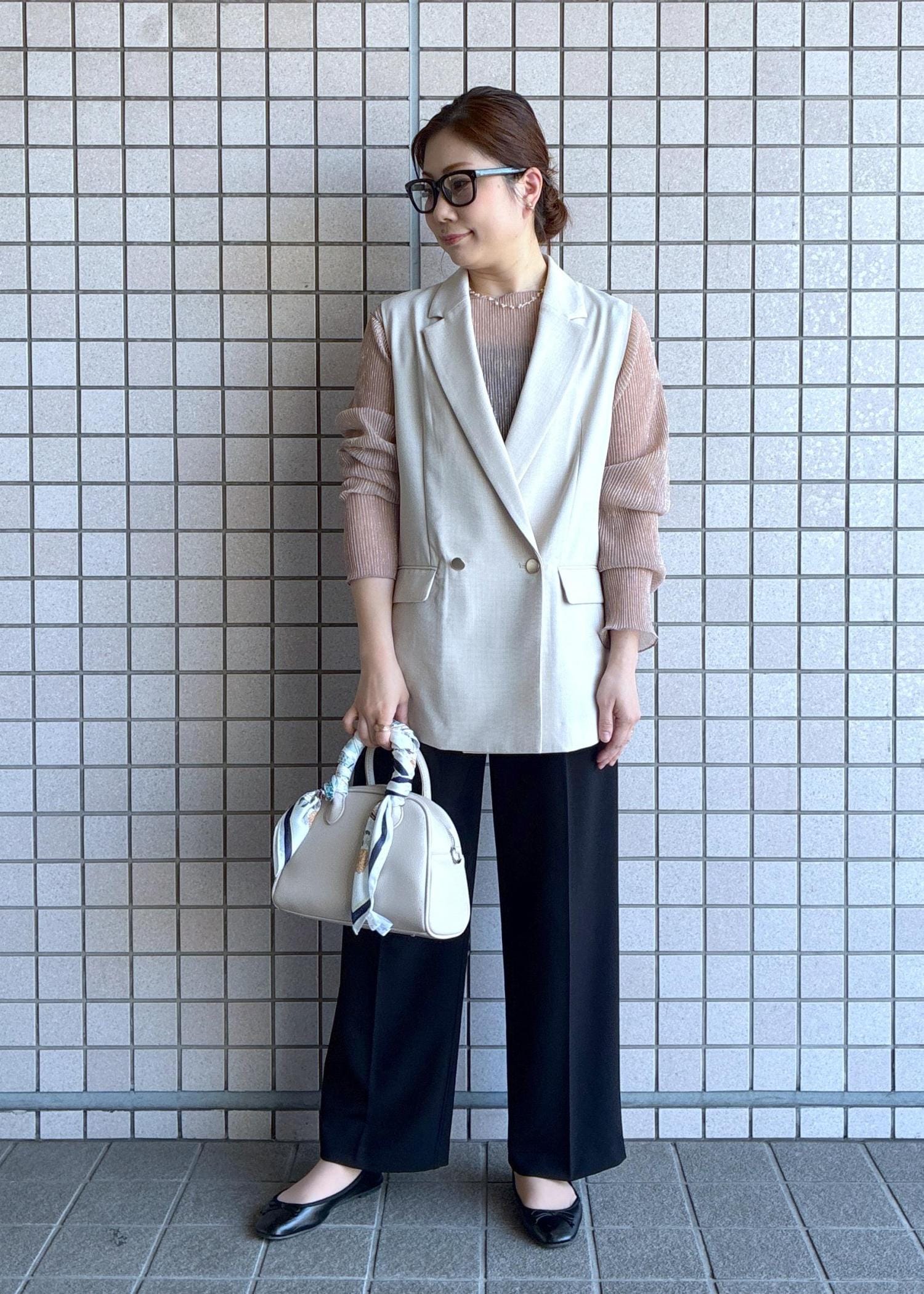 春を意識して、トップスやジレは明るい色を合わせました♪