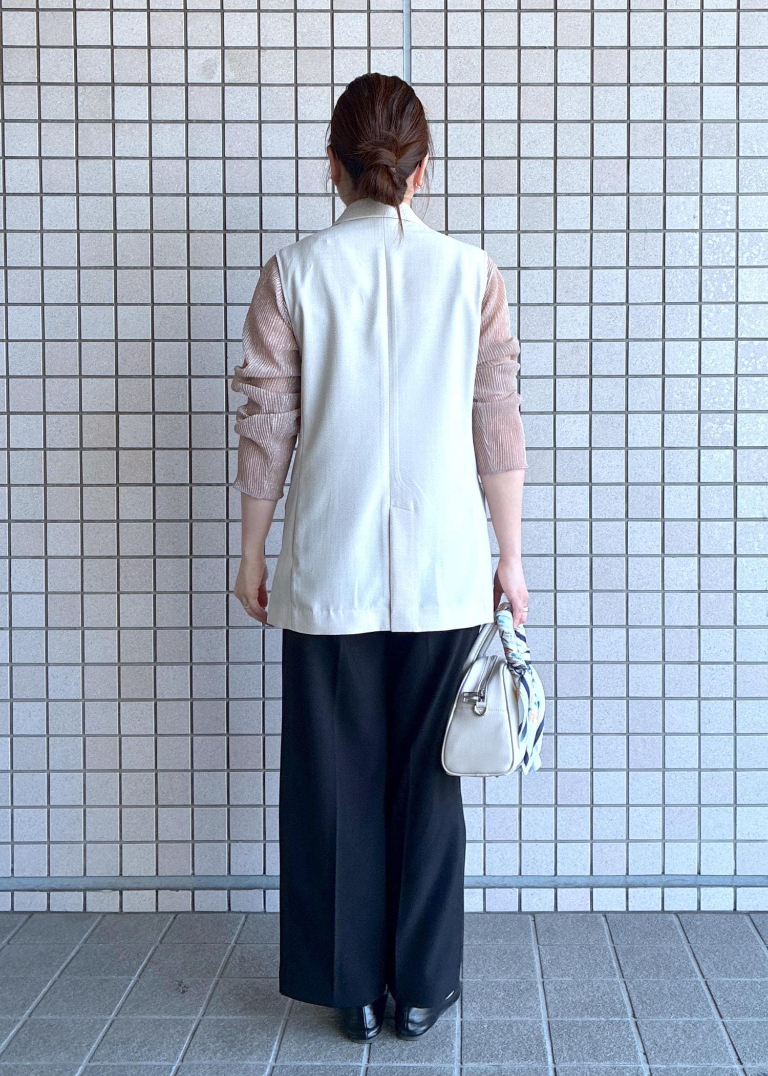 シンプルなデザインなので着回ししやすく、インナーを変えて色々な雰囲気で使っていただけます。 -