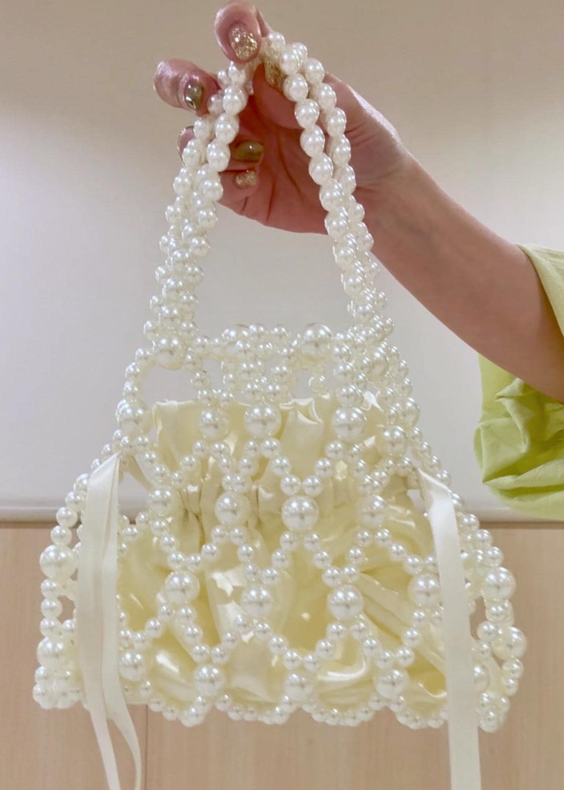 アウトレットROPÉ PICNIC PASSAGEポーチ付きビーズハンドバッグオフホワイト / F¥2,250レビュー巾着がセットになったパールビーズデザインのバッグです。