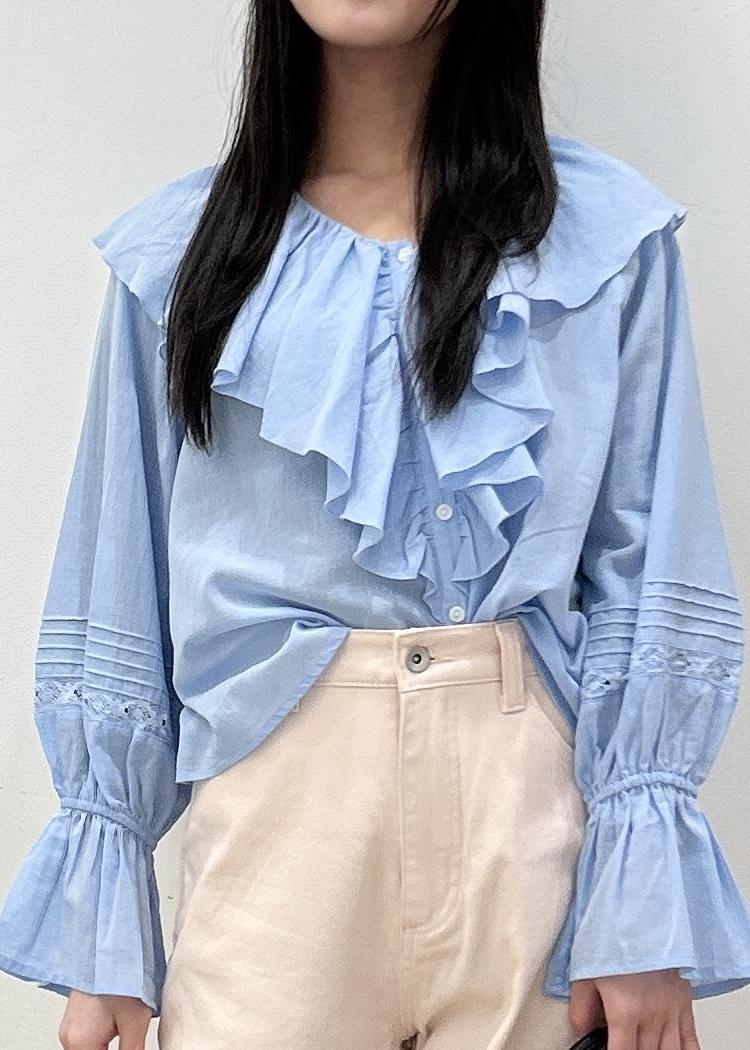 アウトレットROPÉ PICNIC【接触冷感・通気性】お着軽シャツシリーズ/綿ボイルフリルブラウスサックス / 38¥4,391レビュー身長:156cm