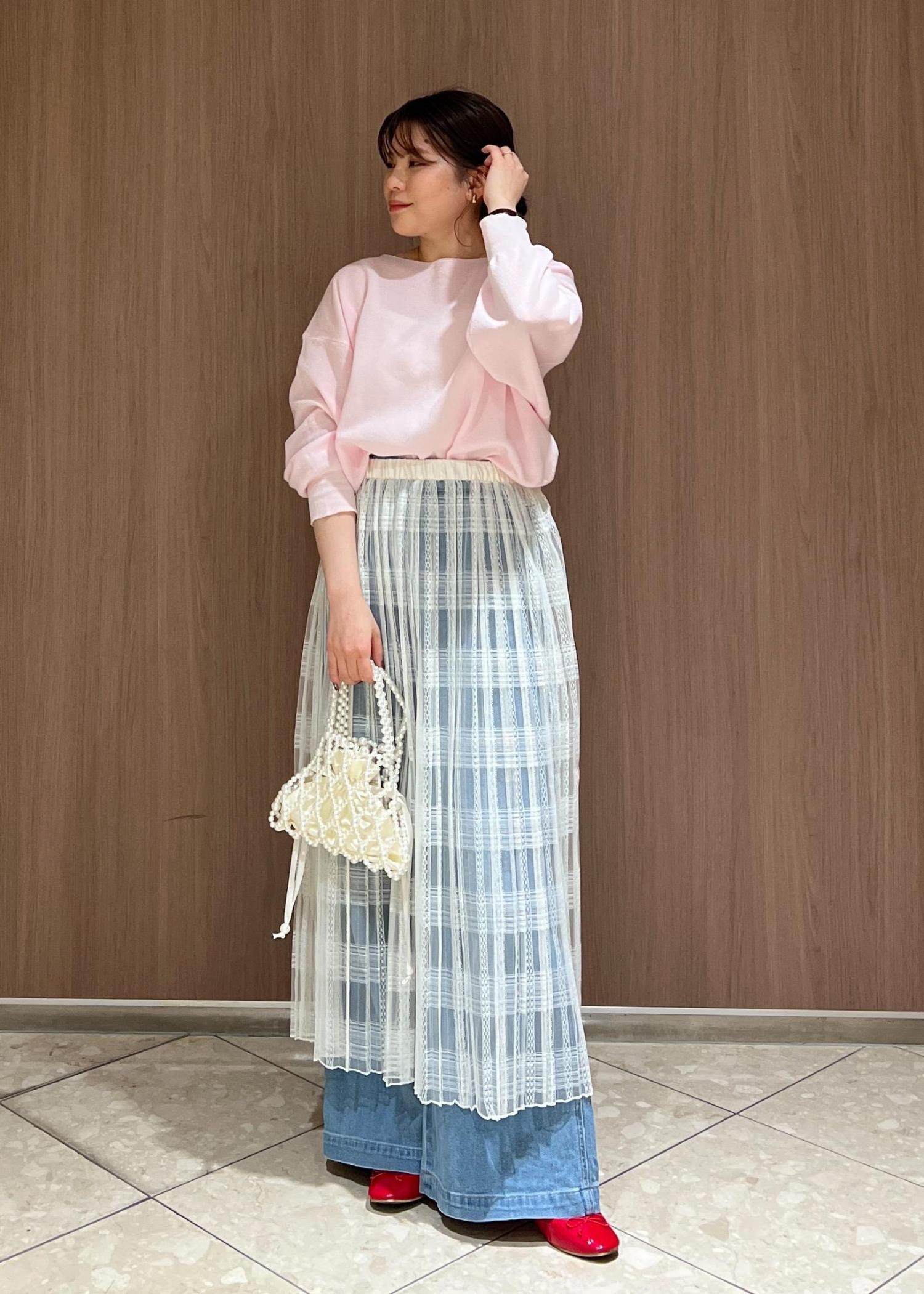 シアー素材なので透け感あり、ニットでも軽くヘルシーな印象でお召しいただけます◎ -