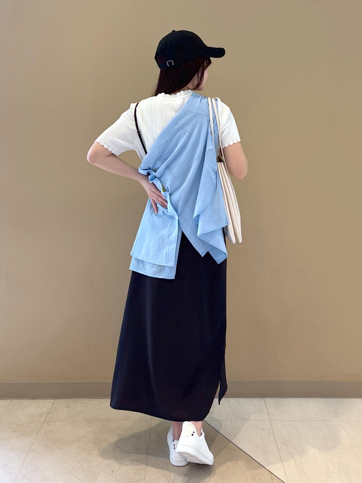 動きやすさを意識したカジュアルなお出かけスタイル。体温調節に便利な薄手シャツは肩掛けすると楽ちんかつオシャレにアップデートできます。