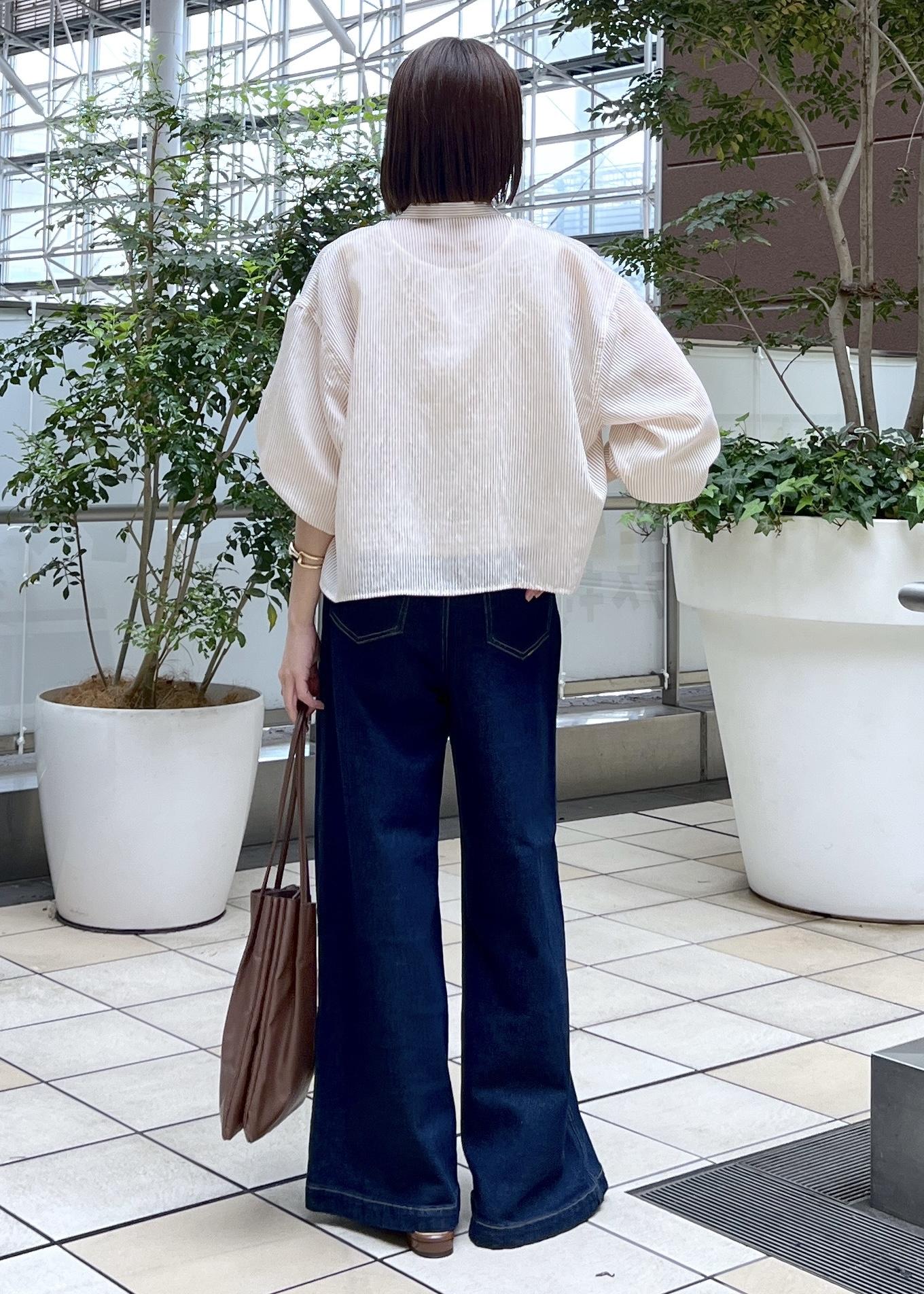 身幅はゆとりのあるサイズ感なので、インするアイテムを選ばず羽織にも着やすいです。 -