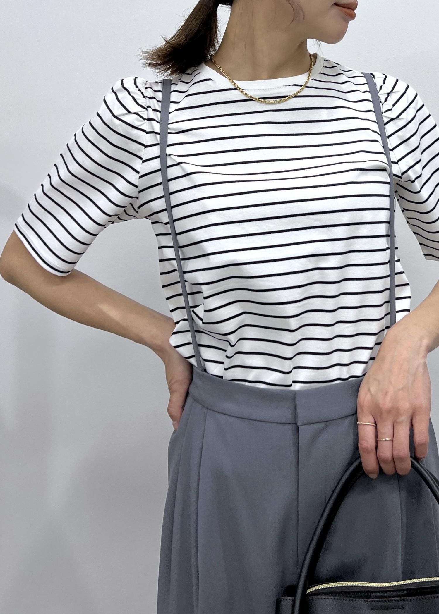 夏のお出かけに着やすいボーダートップスは、UVカット・接触冷感の機能素材。