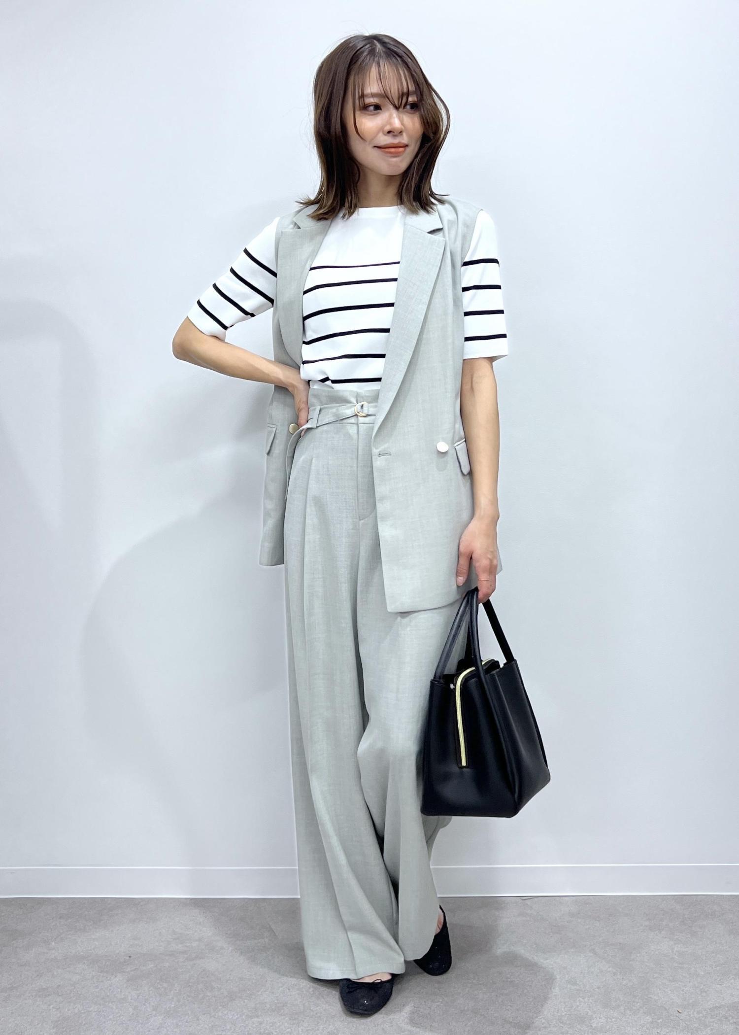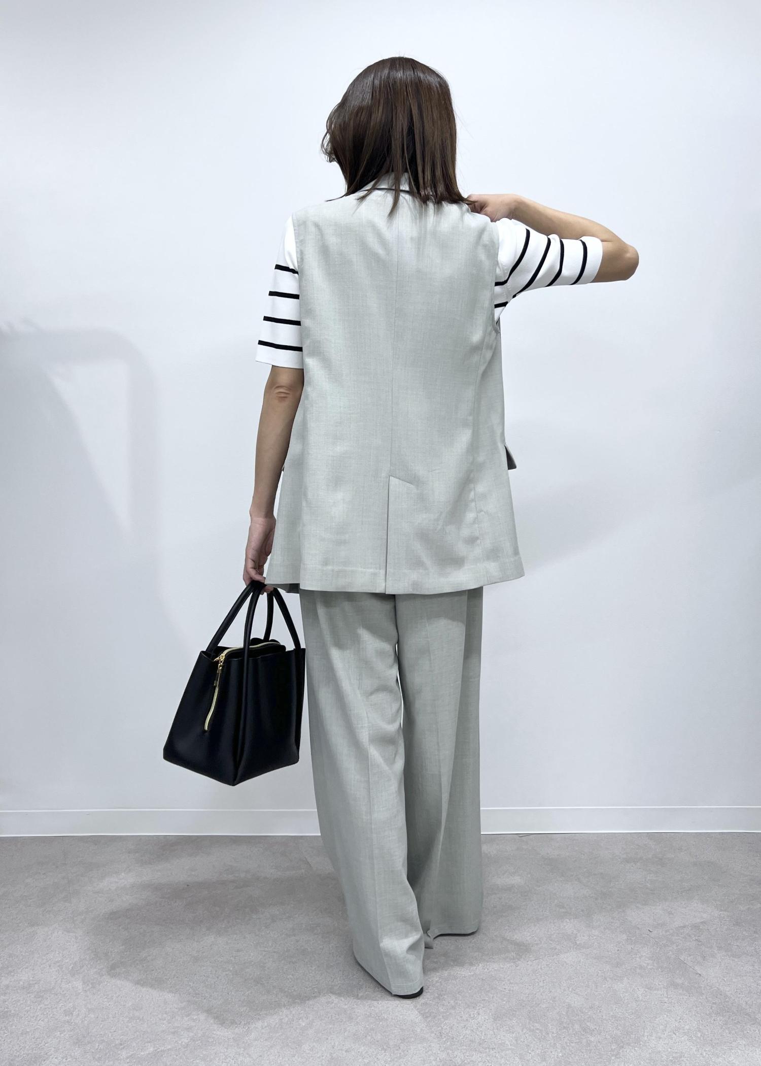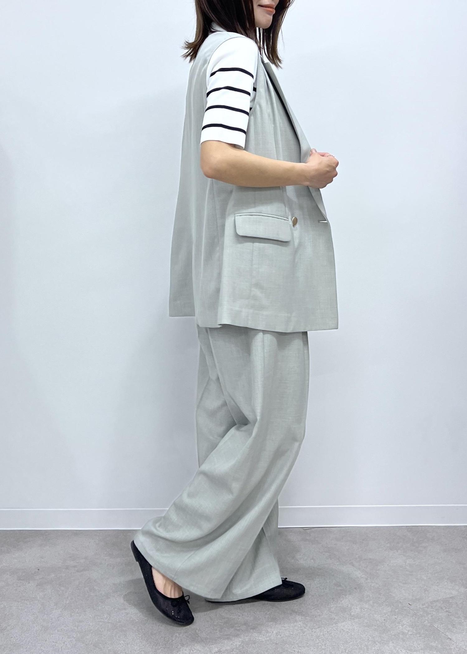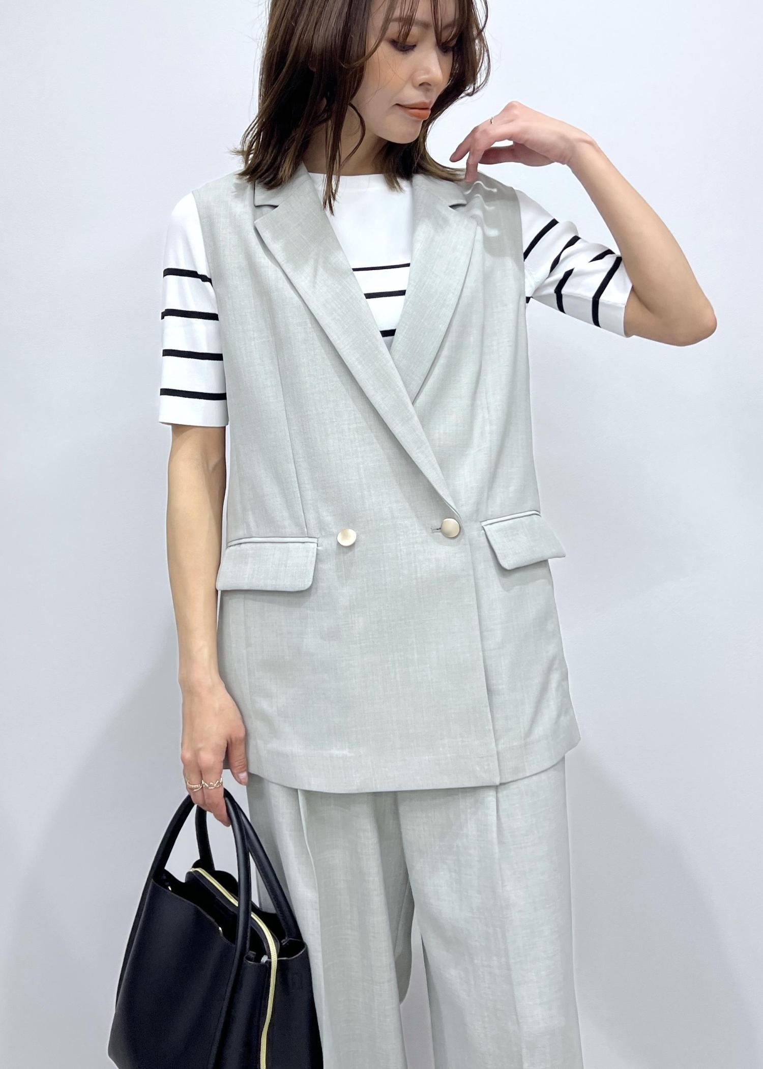 夏にも羽織りやすいジレは、セットアップで合わせて綺麗めカジュアルな着こなしも◎。