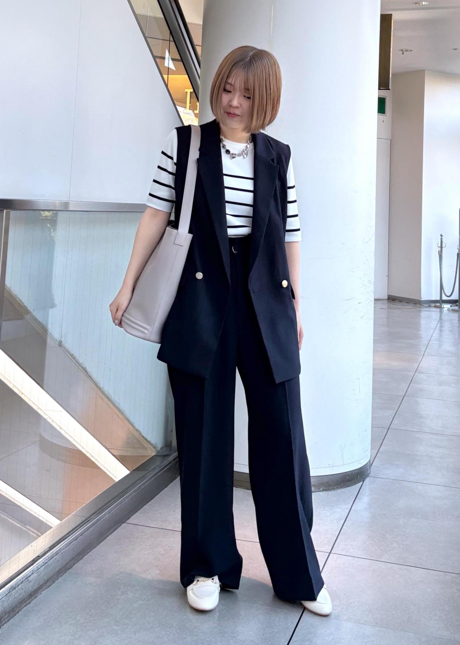 セットアップ対応シリーズで、これからの季節に向けた涼しげなコーディネートにしました☺︎
