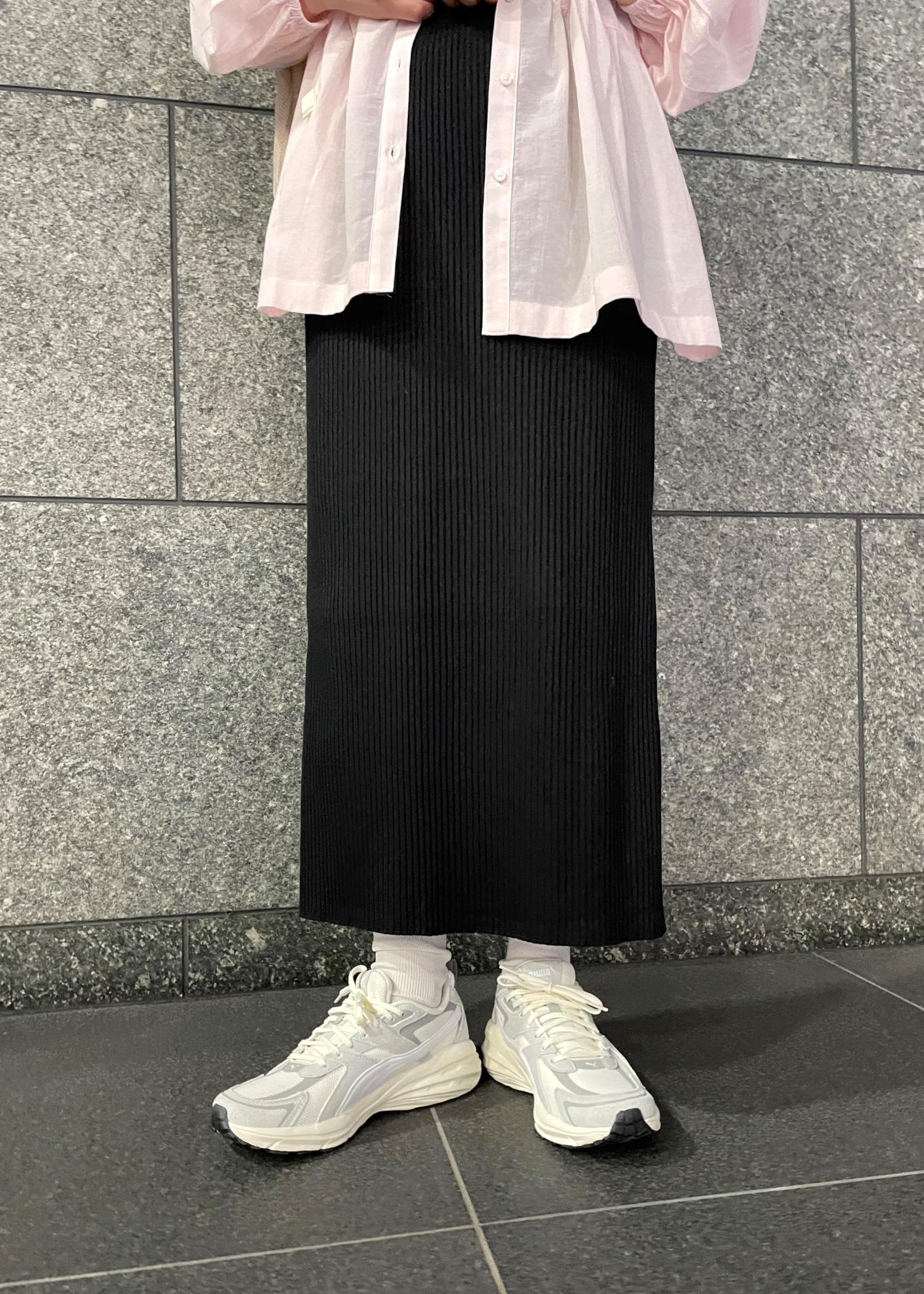 リブ素材でストレッチ性のある生地なので、履き心地が良いです。少し厚みがある分ラインを拾いにくいです。