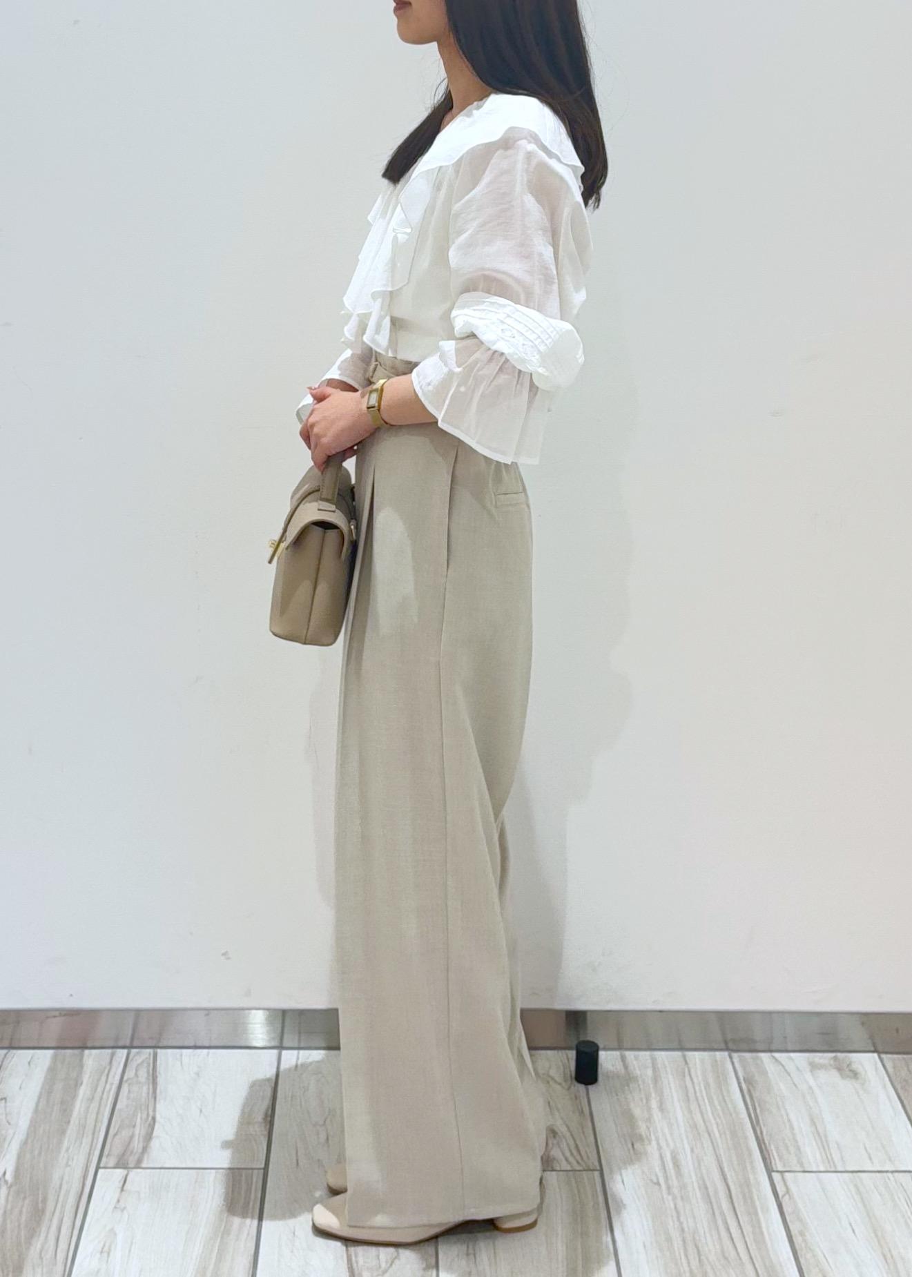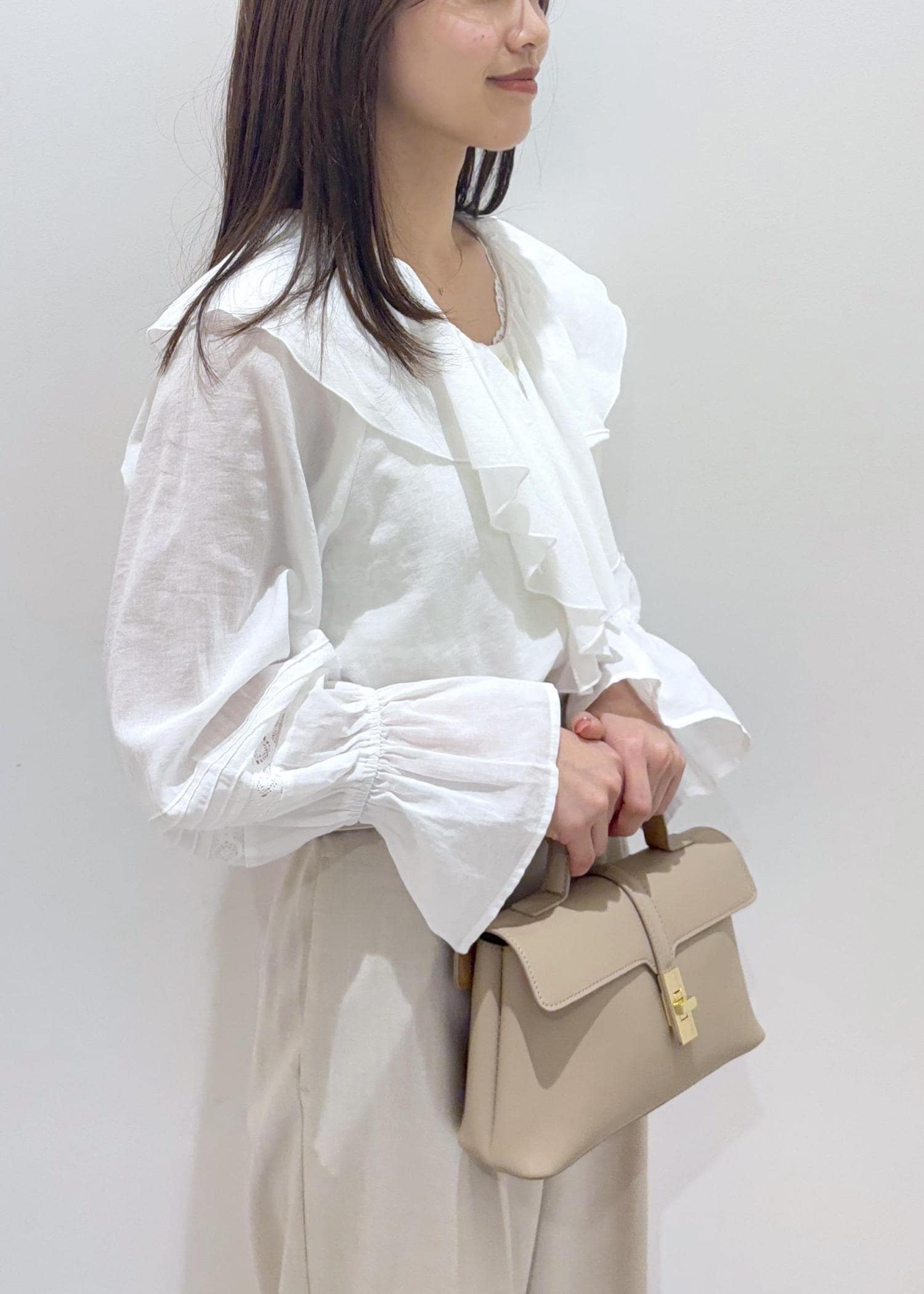 おすすめの着方は手首に時計や、ブレスレットをつけ、腕まくりをすることで華奢みえ効果と華やかさを出すことができます。カーディガンなどを羽織り、フリルのデザインを外に出して着るのもおすすめです♡ -