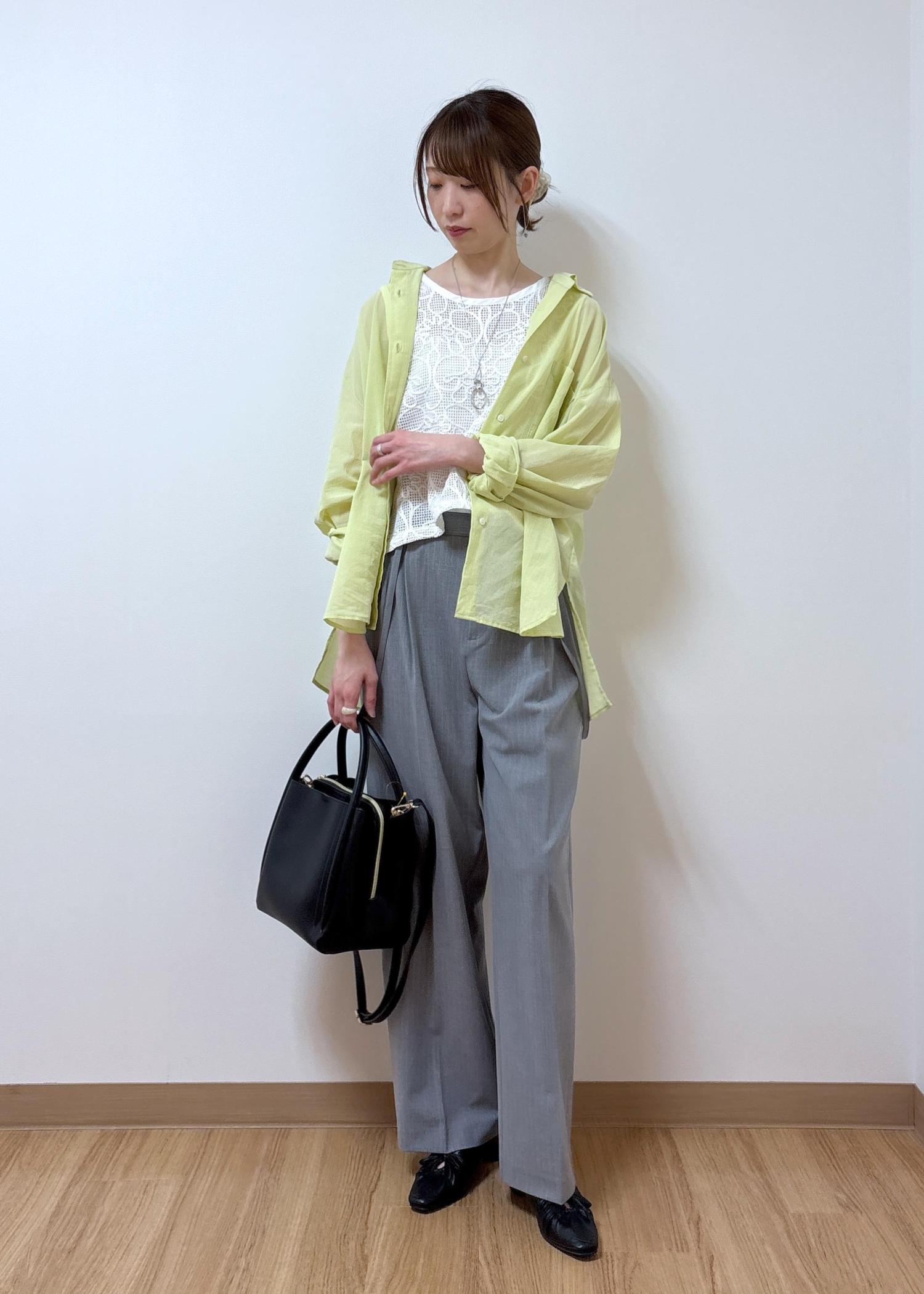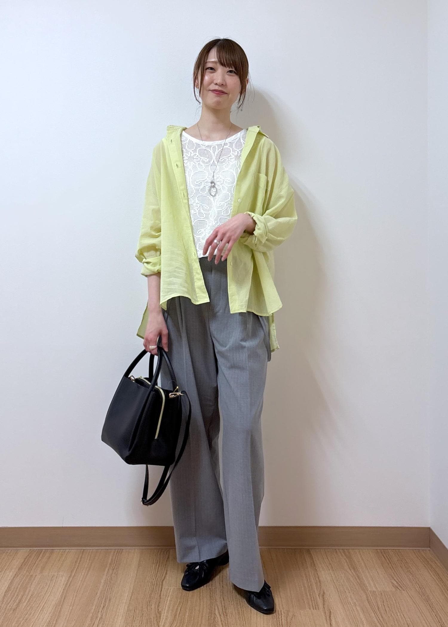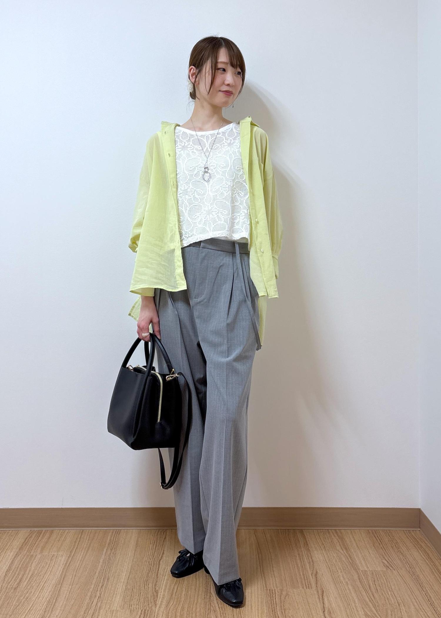 私自身イエローは普段着慣れないカラーなので、他のアイテムをホワイトやグレーなどベーシックなカラーでまとめました。