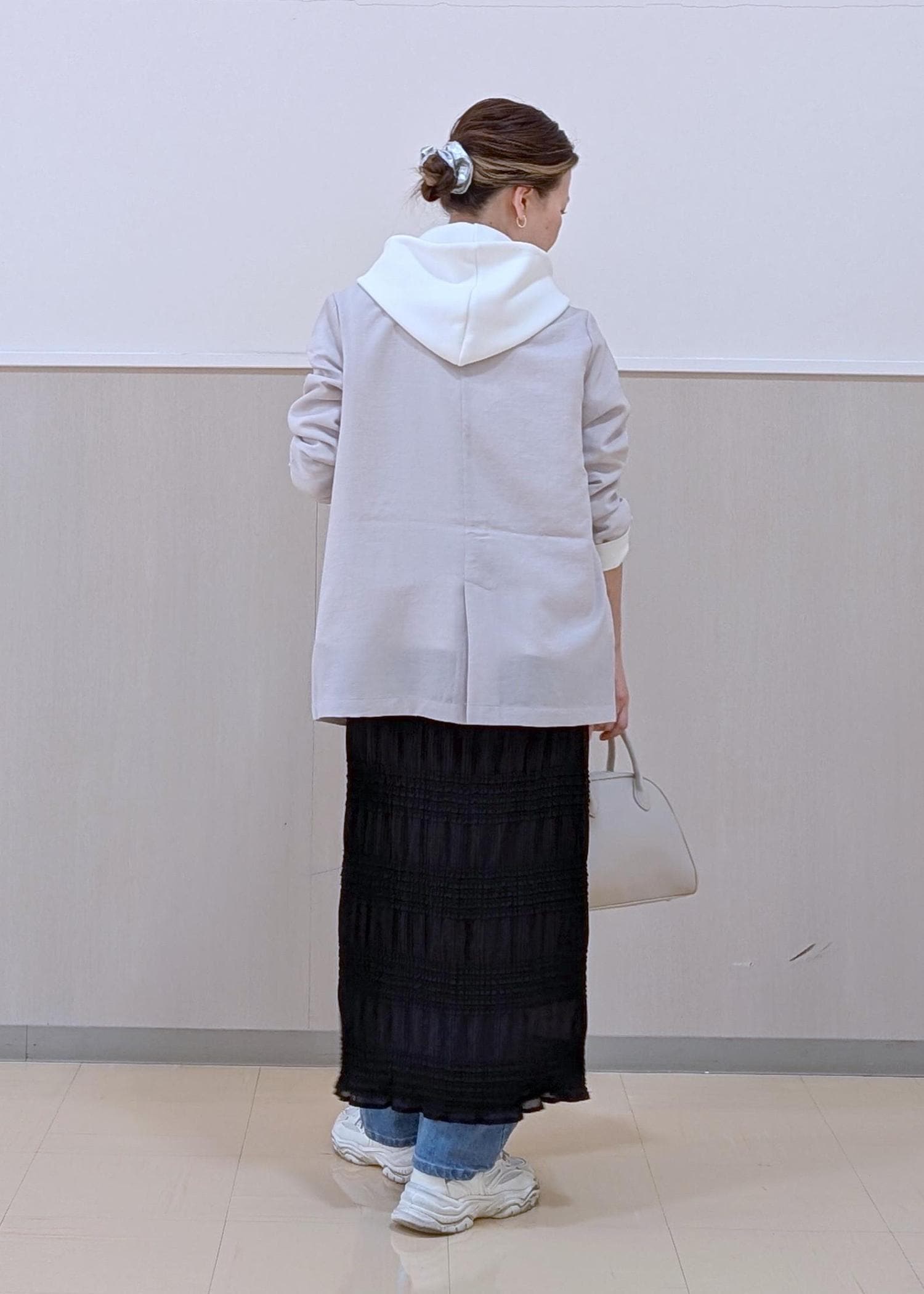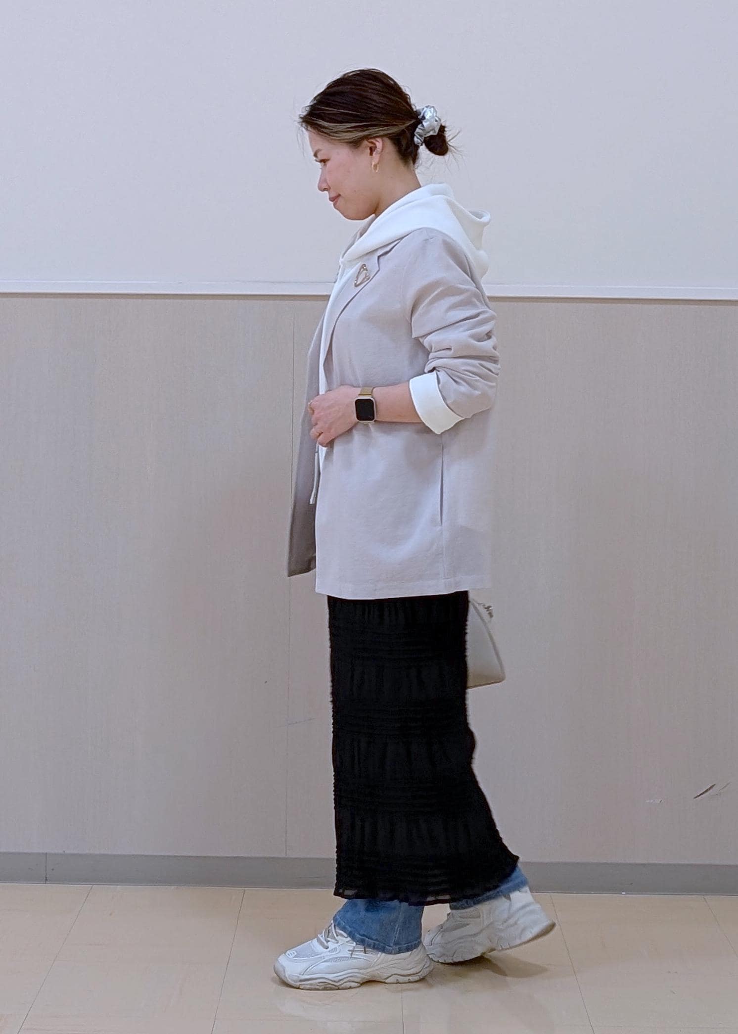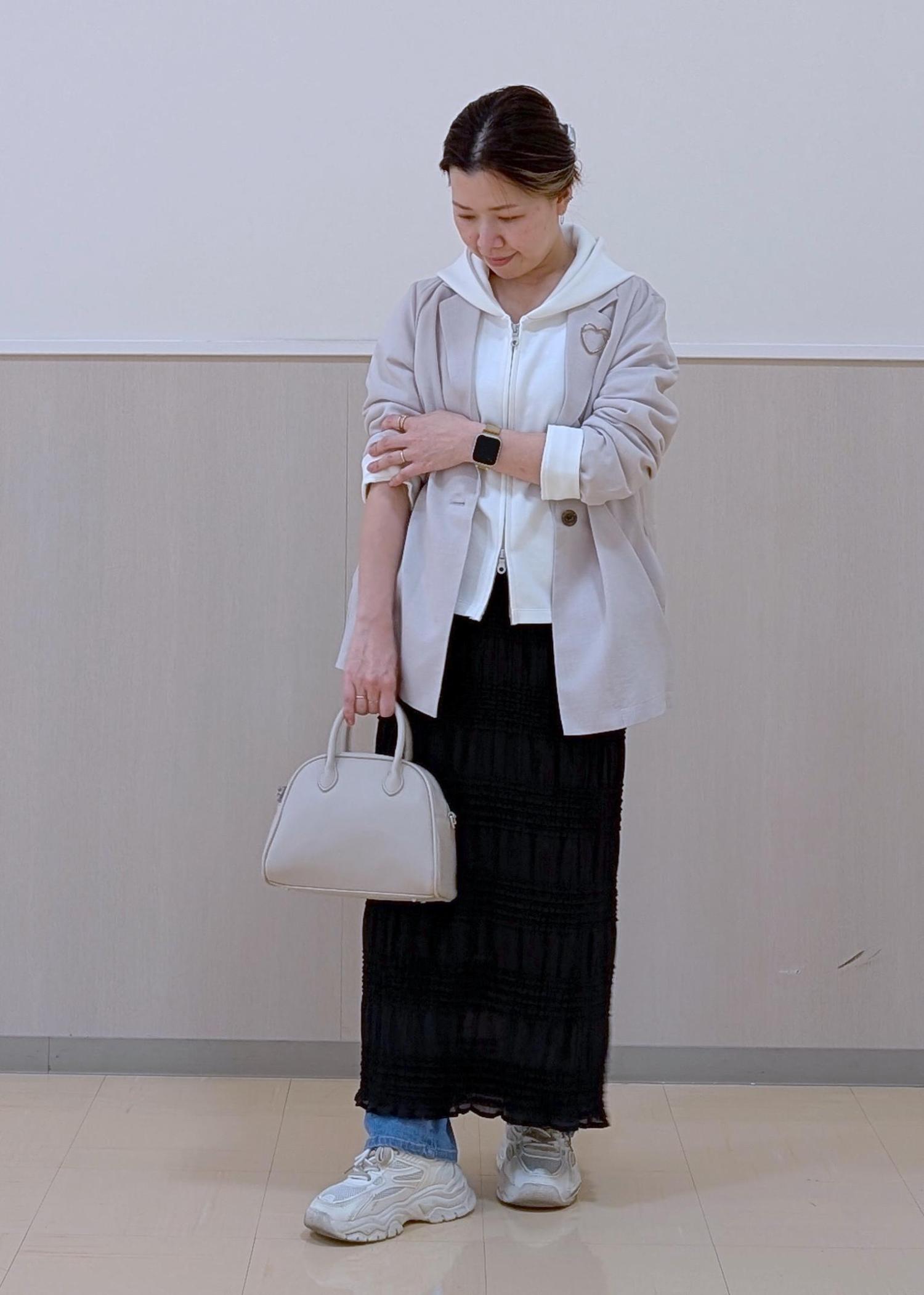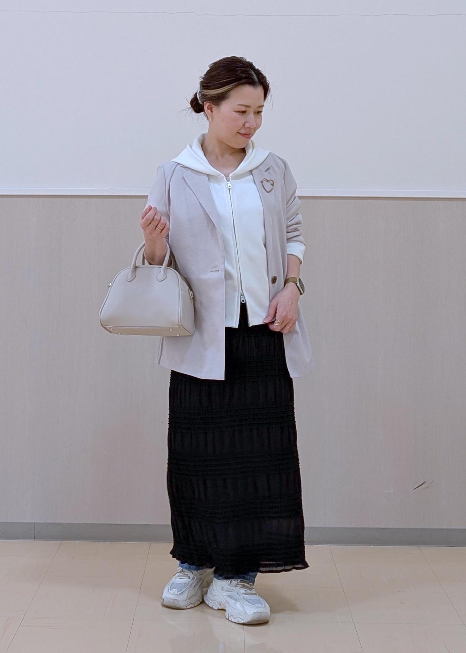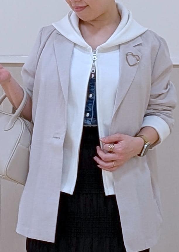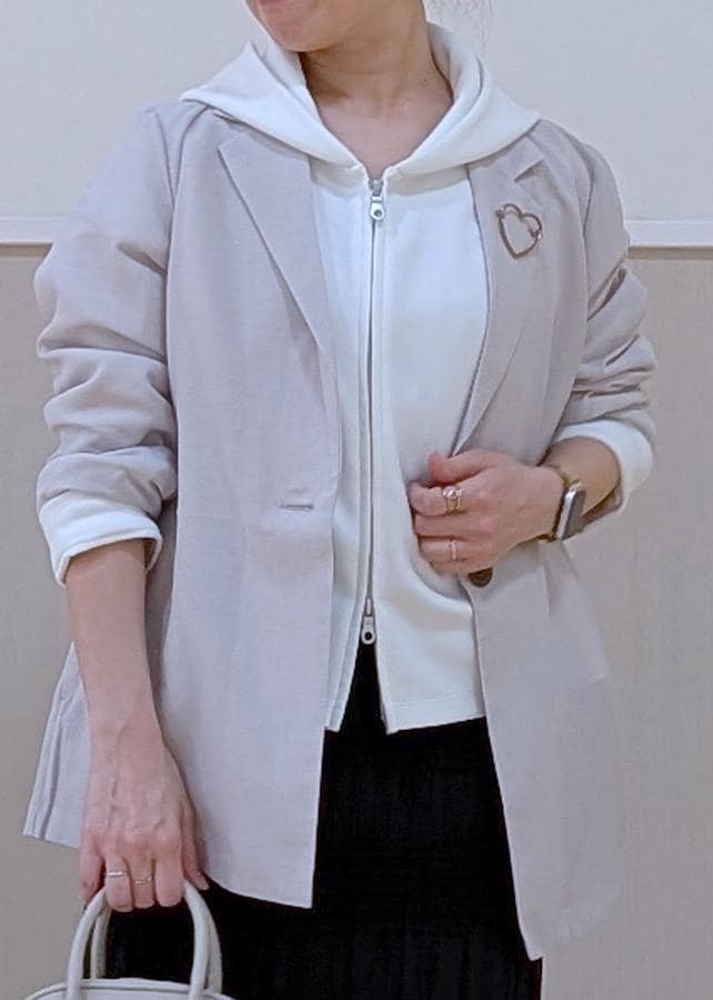 軽めのジャケットスタイルに、インナーをパーカーを合わせて大人カジュアルにまとめました♪