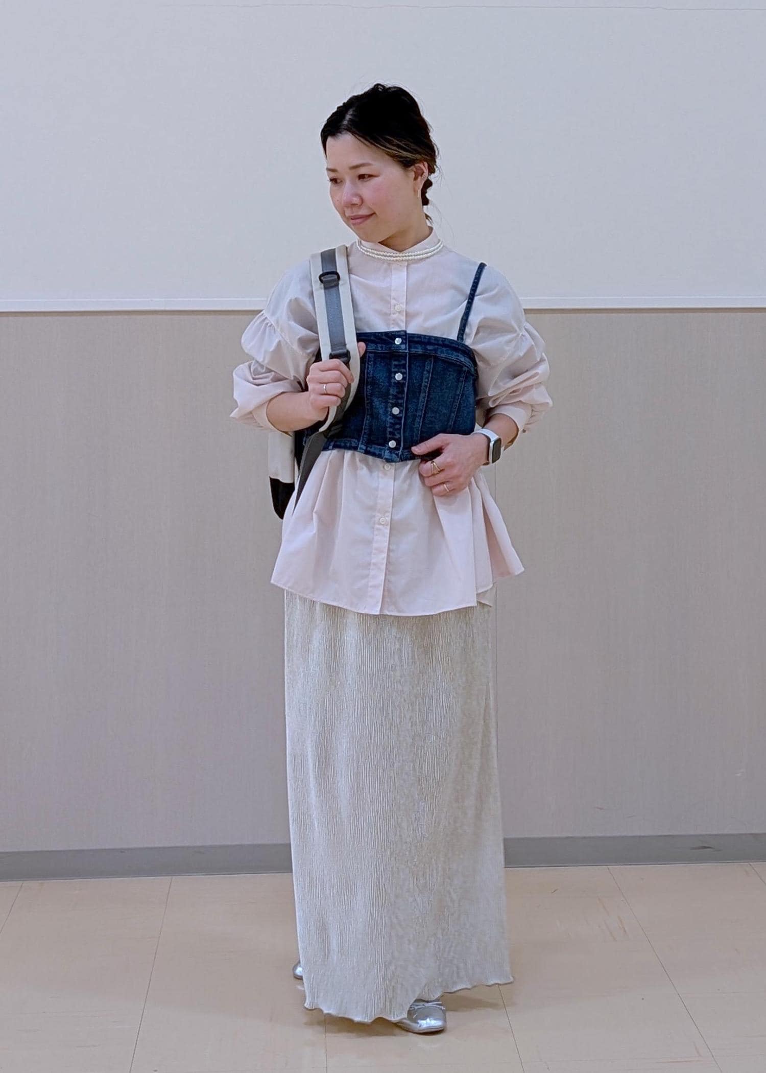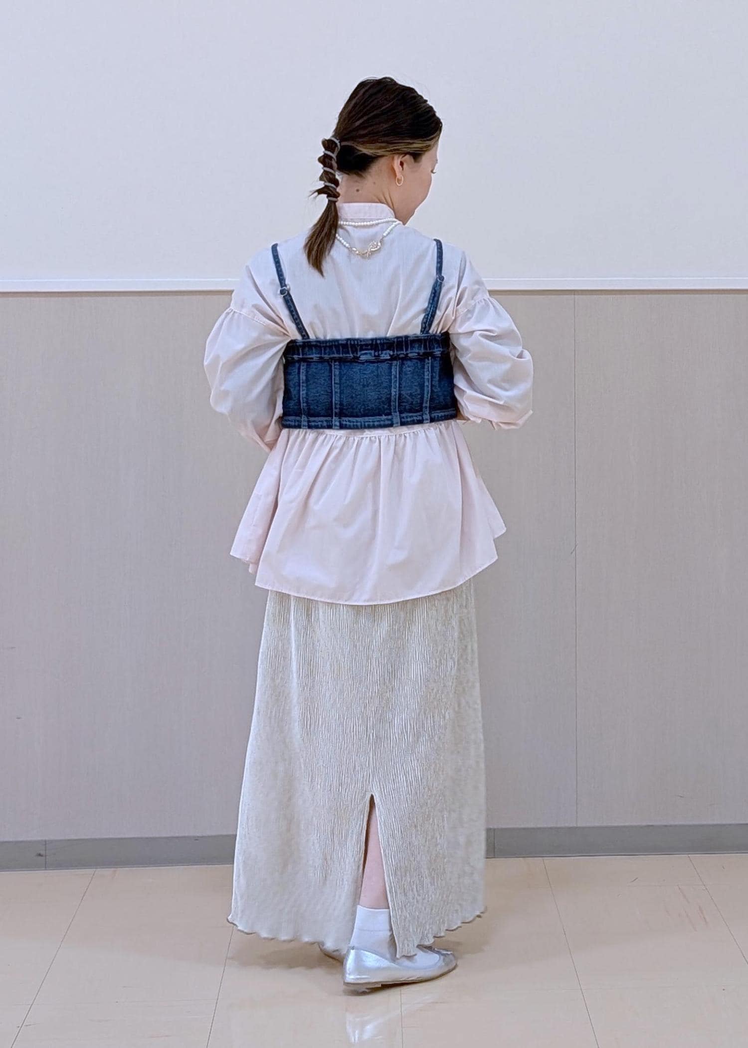トップスはビスチェを合わせることで、全体をキュッと締めて見せてくれるので、ビスチェ合わせもマストです!!