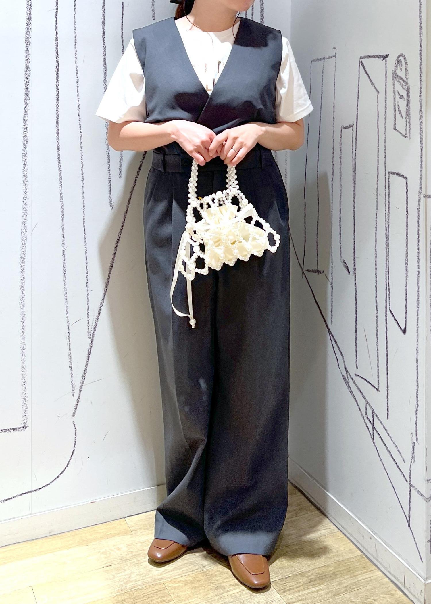 シンプルなオールインワンスタイルです。今回はヒールなしだったので150cm以下の方には5cm以上の厚底サンダルやヒール、裾直ししてからオススメします!