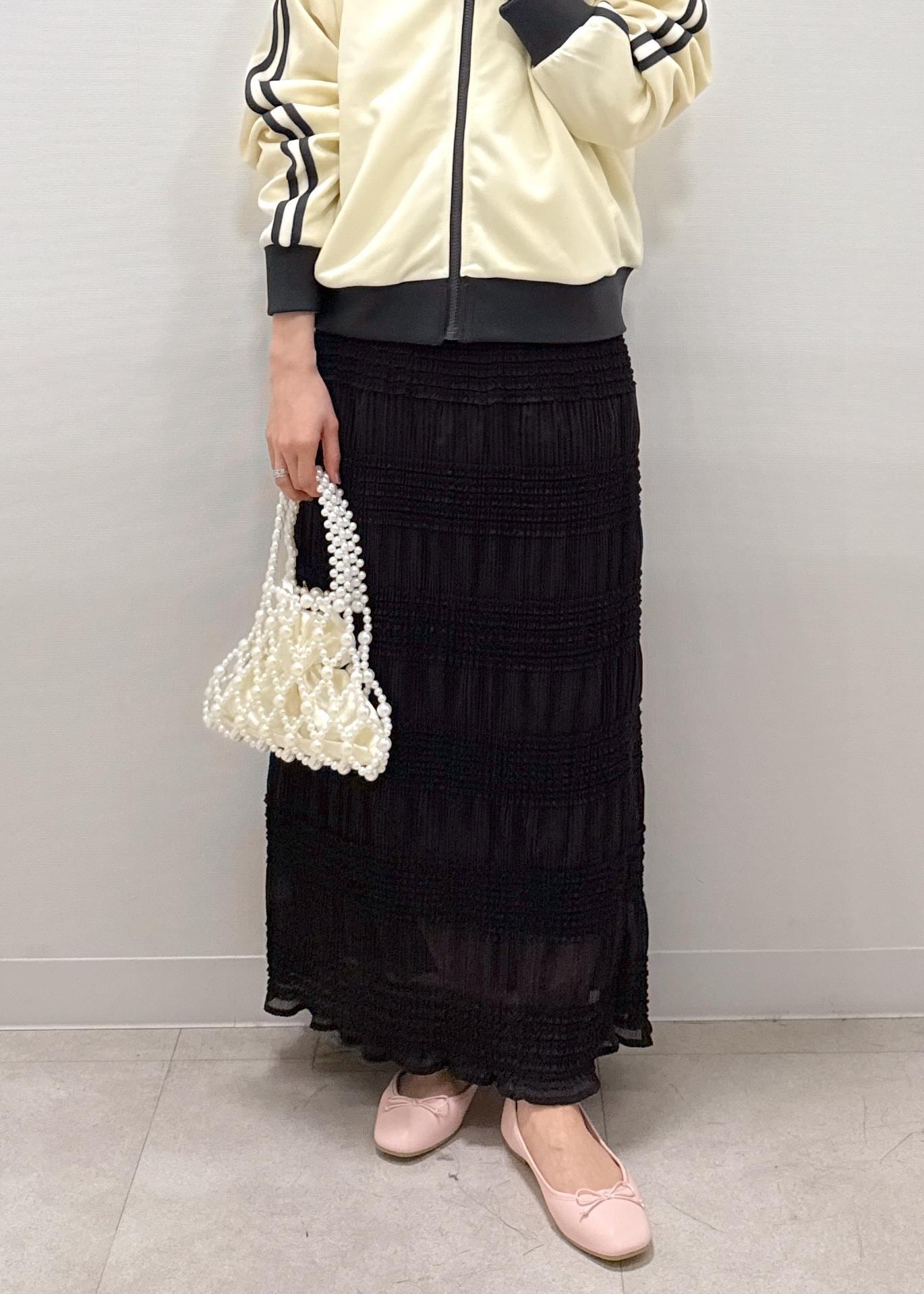 レディライクなスカートと合わせて甘さも◎