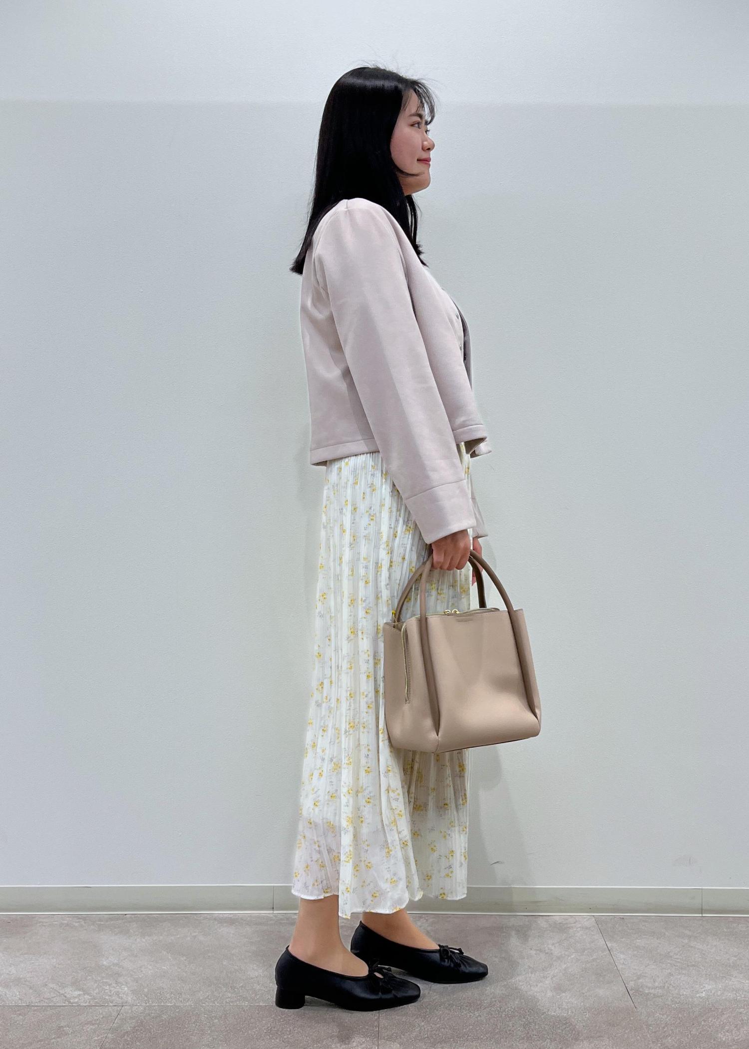 プリーツがしっかり入っているので座った時のシワも気になりません。