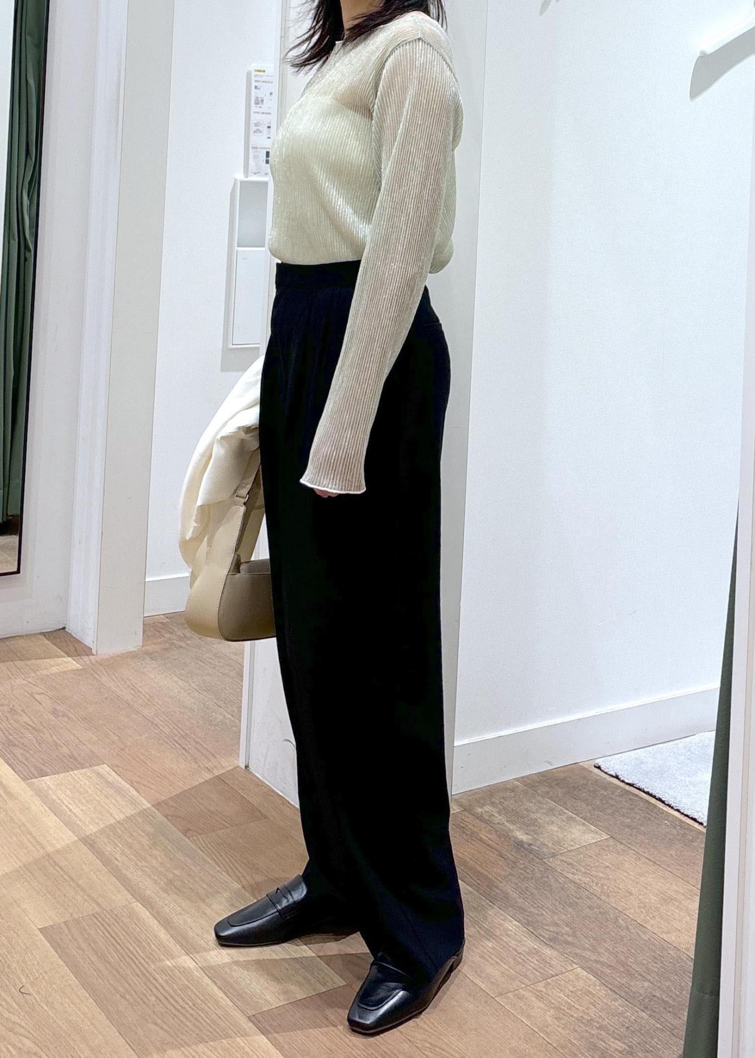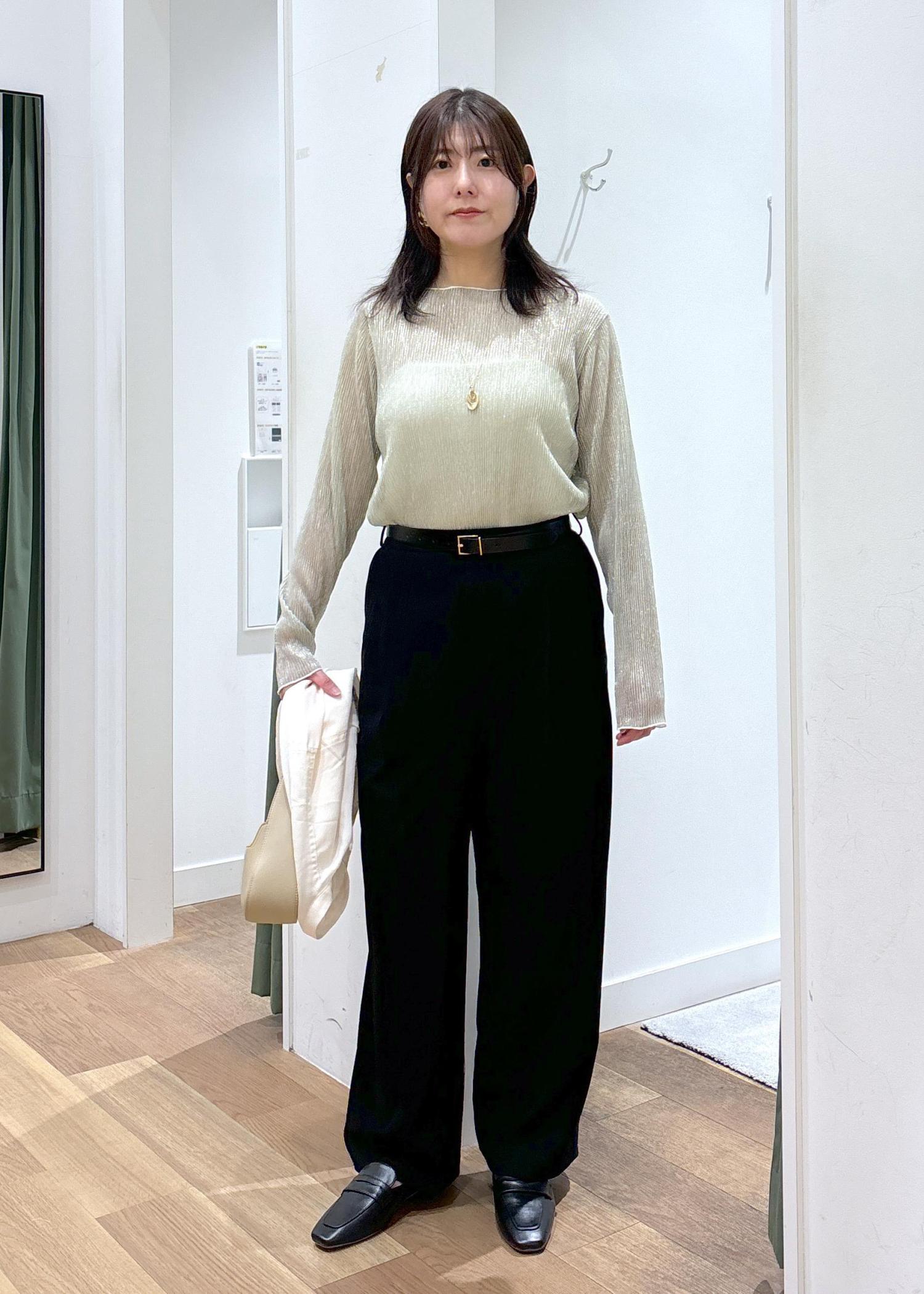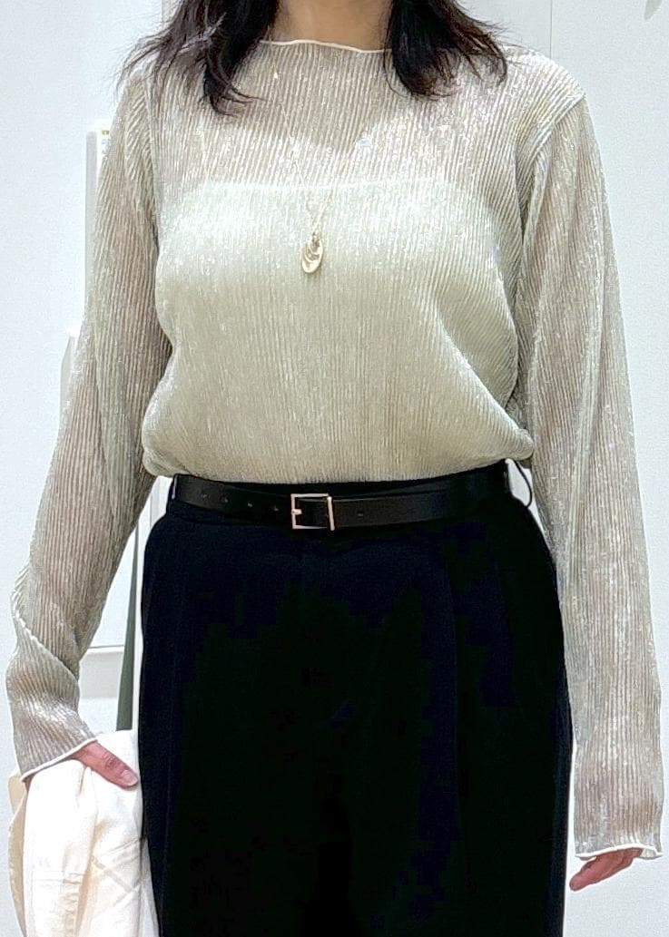インナーに入れて頂くと、大人っぽく今年らしい雰囲気のスタイリングが完成する万能トップスです