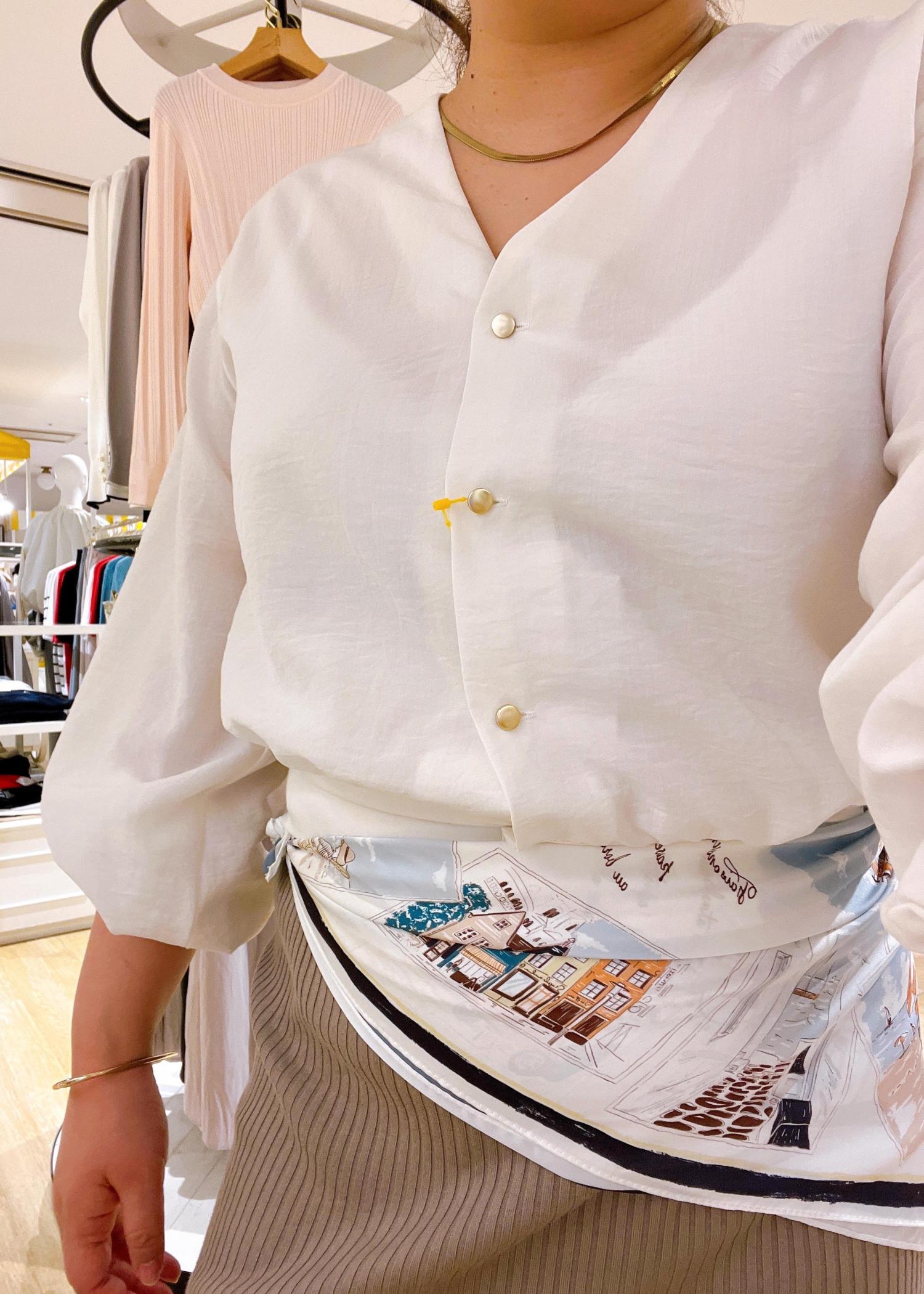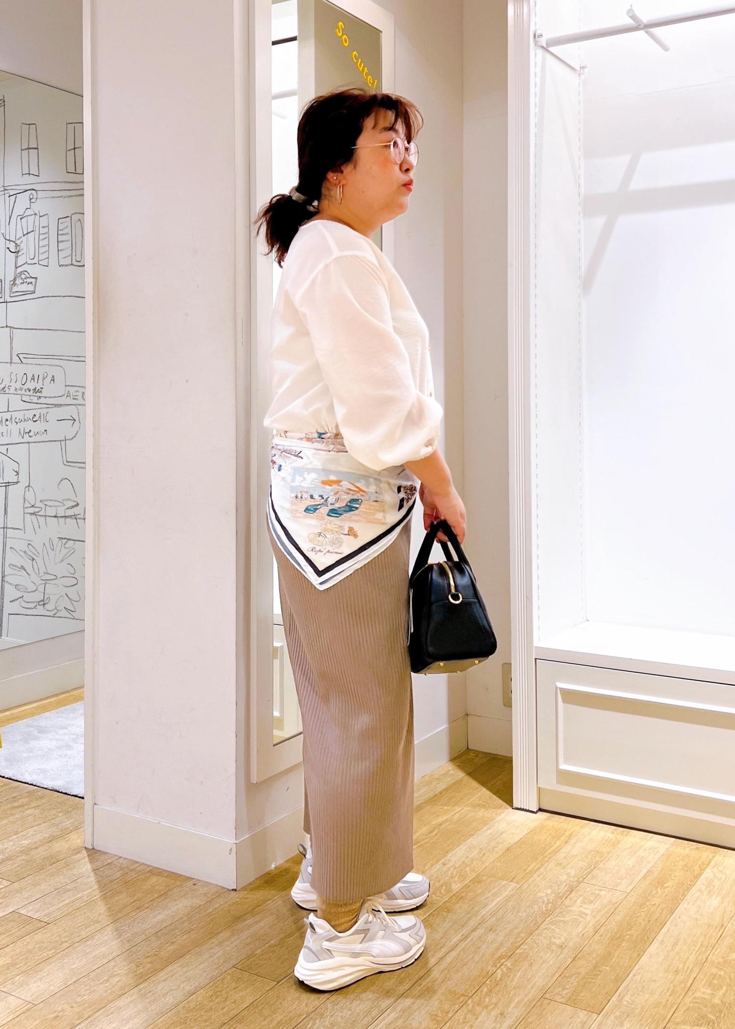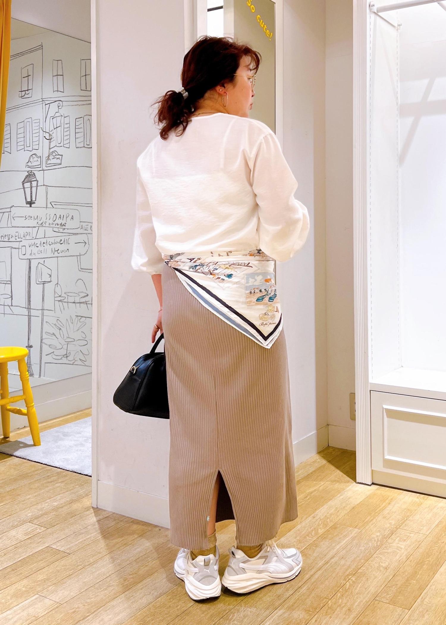スカーフの腰巻きでトレンド感を+