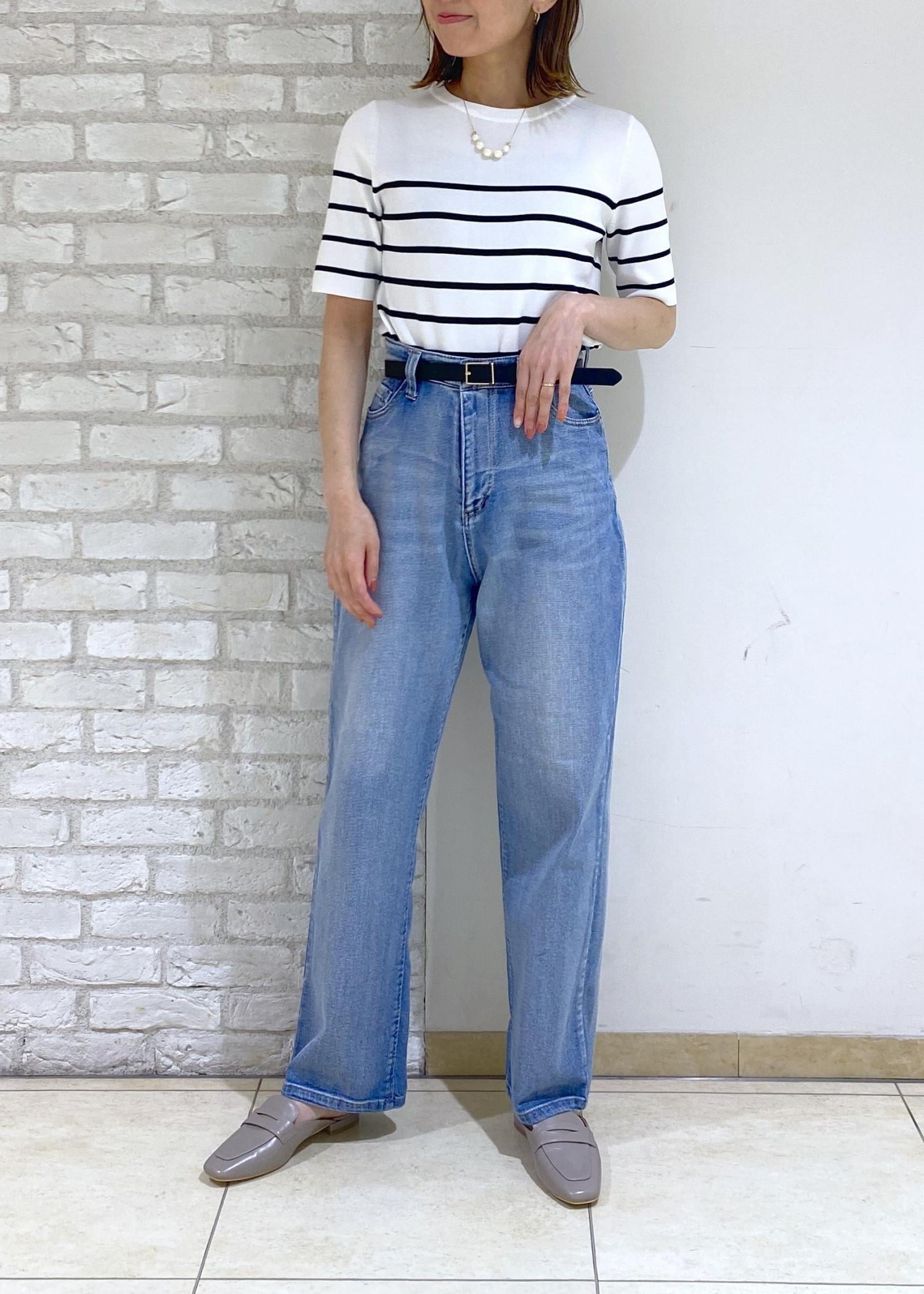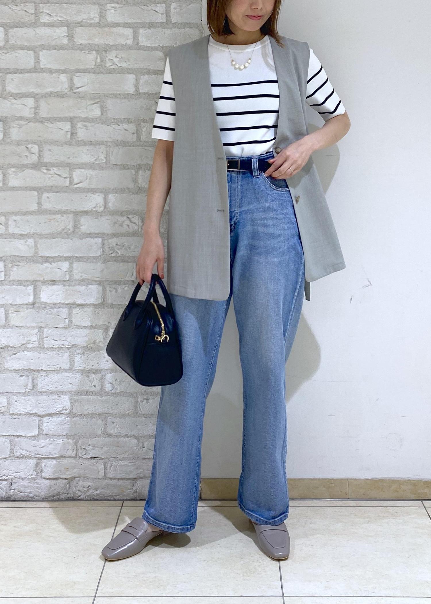 デニムパンツで大人カジュアルなスタイリングにしました。