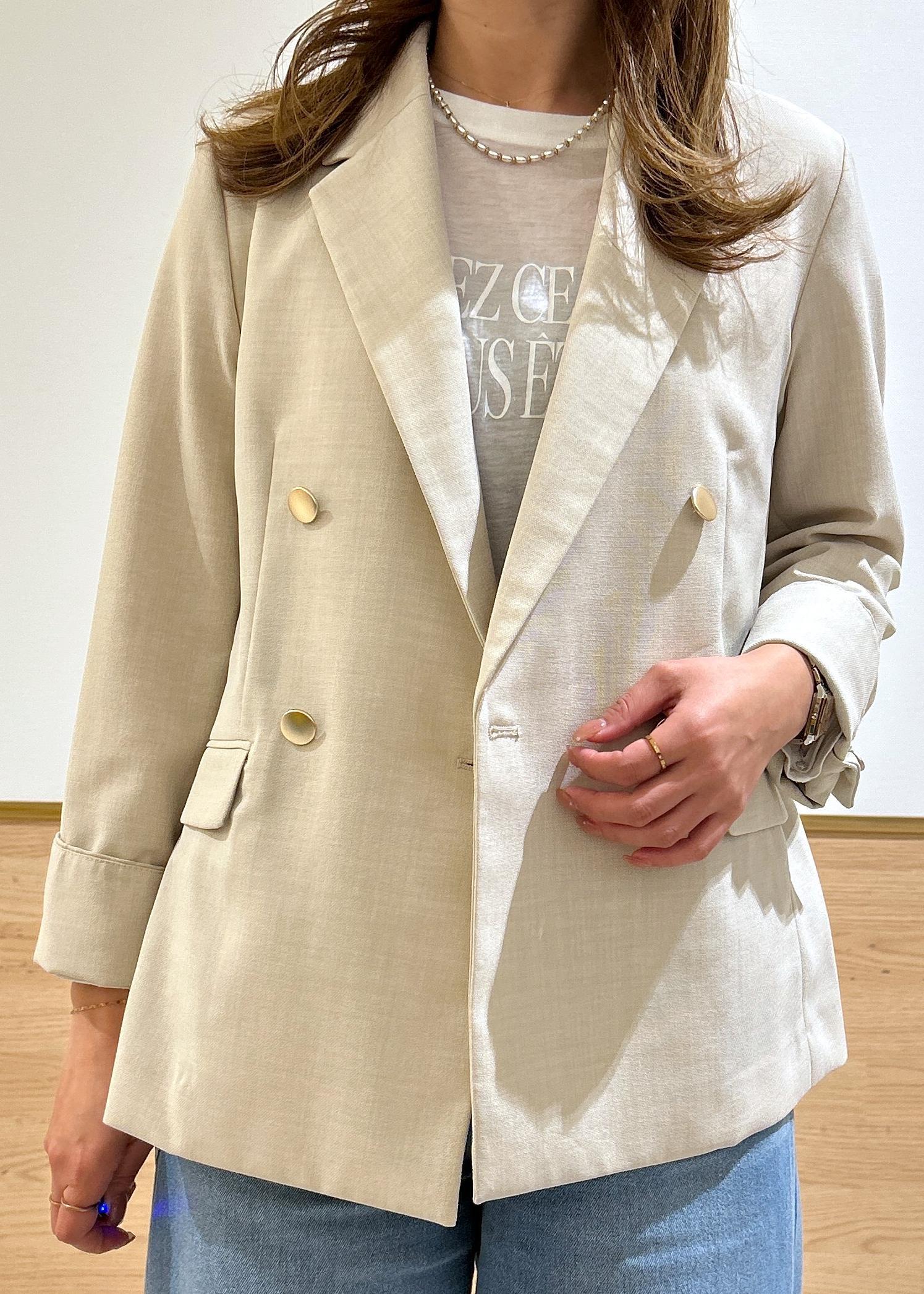 ジャケットはオンオフと着回せるデザインで、季節の変わり目におすすめの一枚です◎