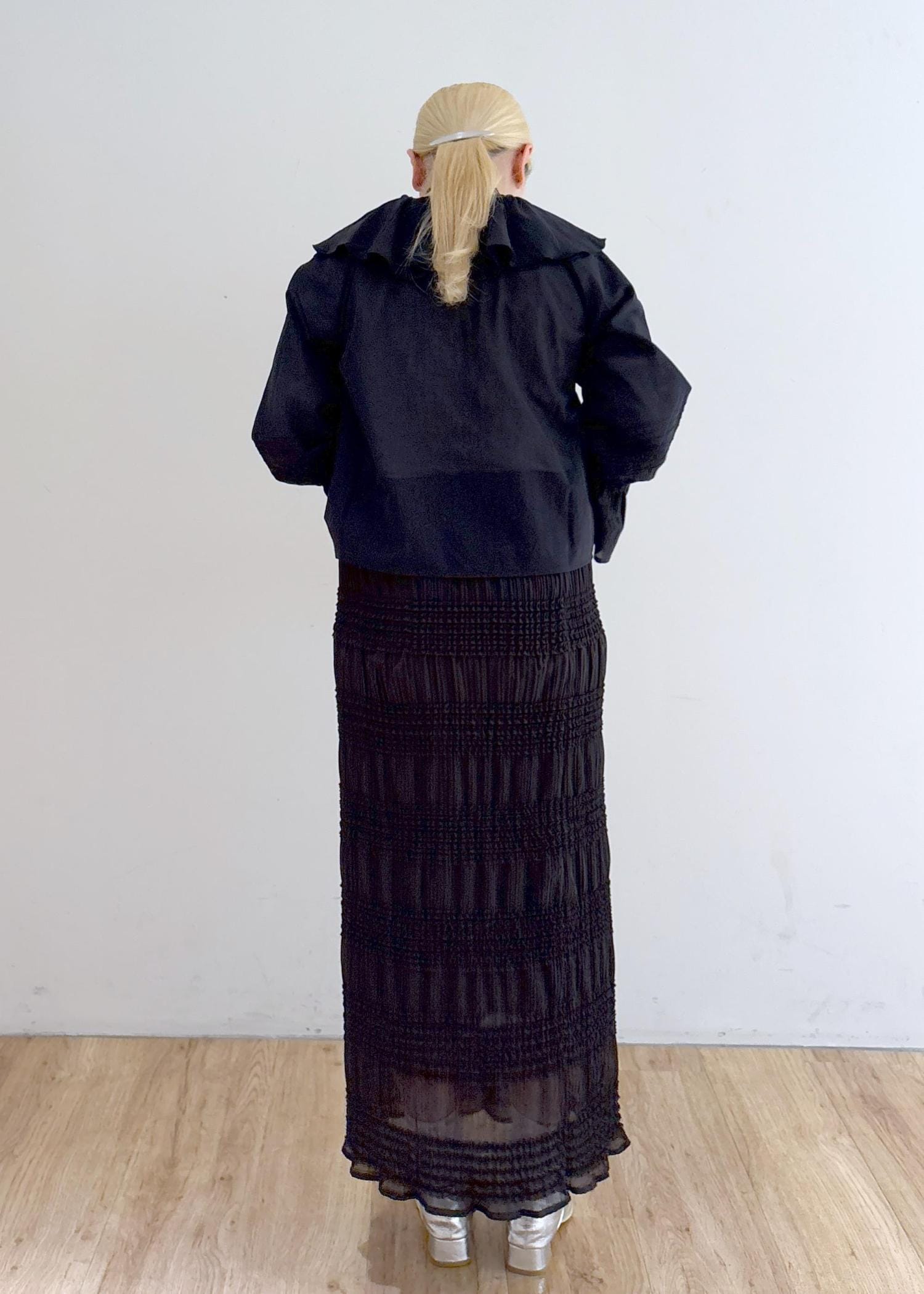 ROPÉ PICNICフリルギャザーロングスカートチャコール / 38¥6,490レビュータイトスカート特有の歩きにくさがない、伸縮性のある軽い生地感です◎ フリルのデザインでかわいく、上品にも着こなせるアイテムです!