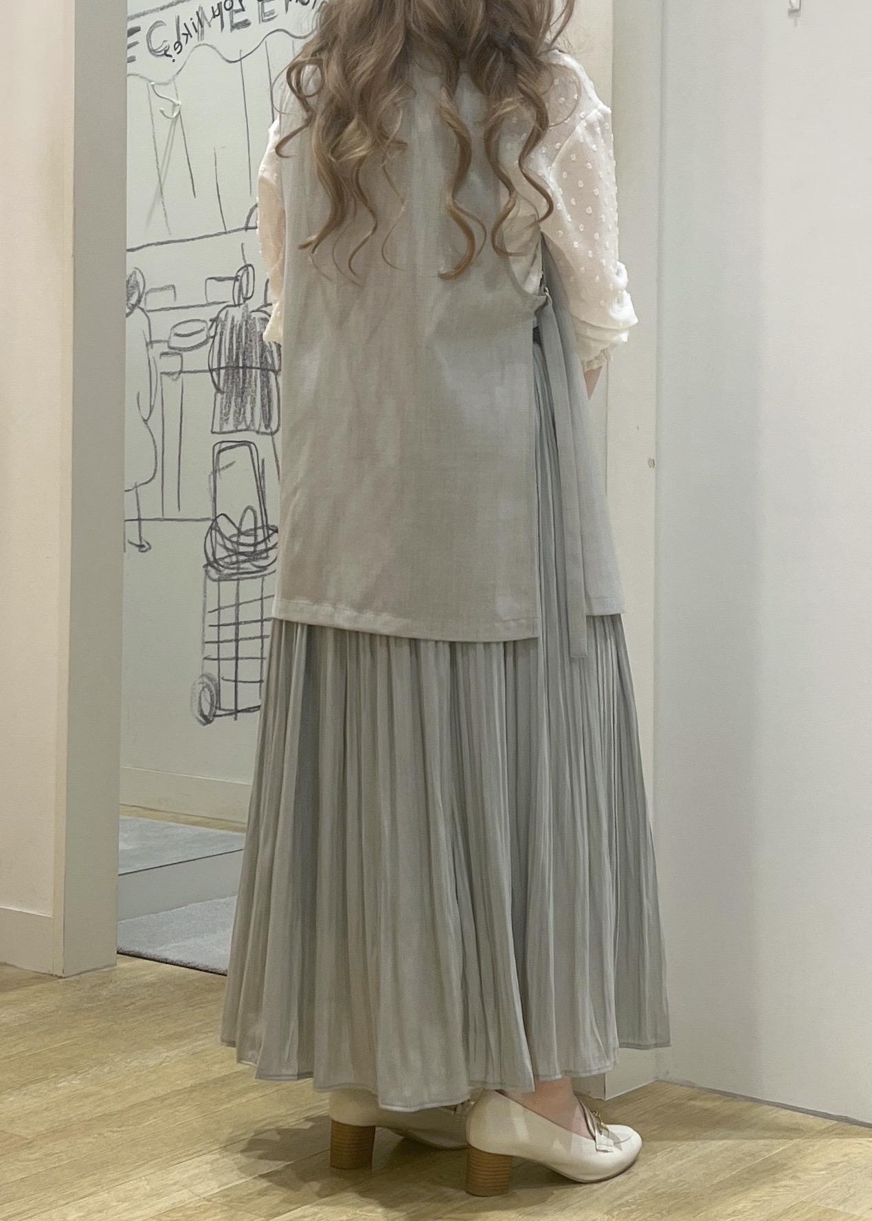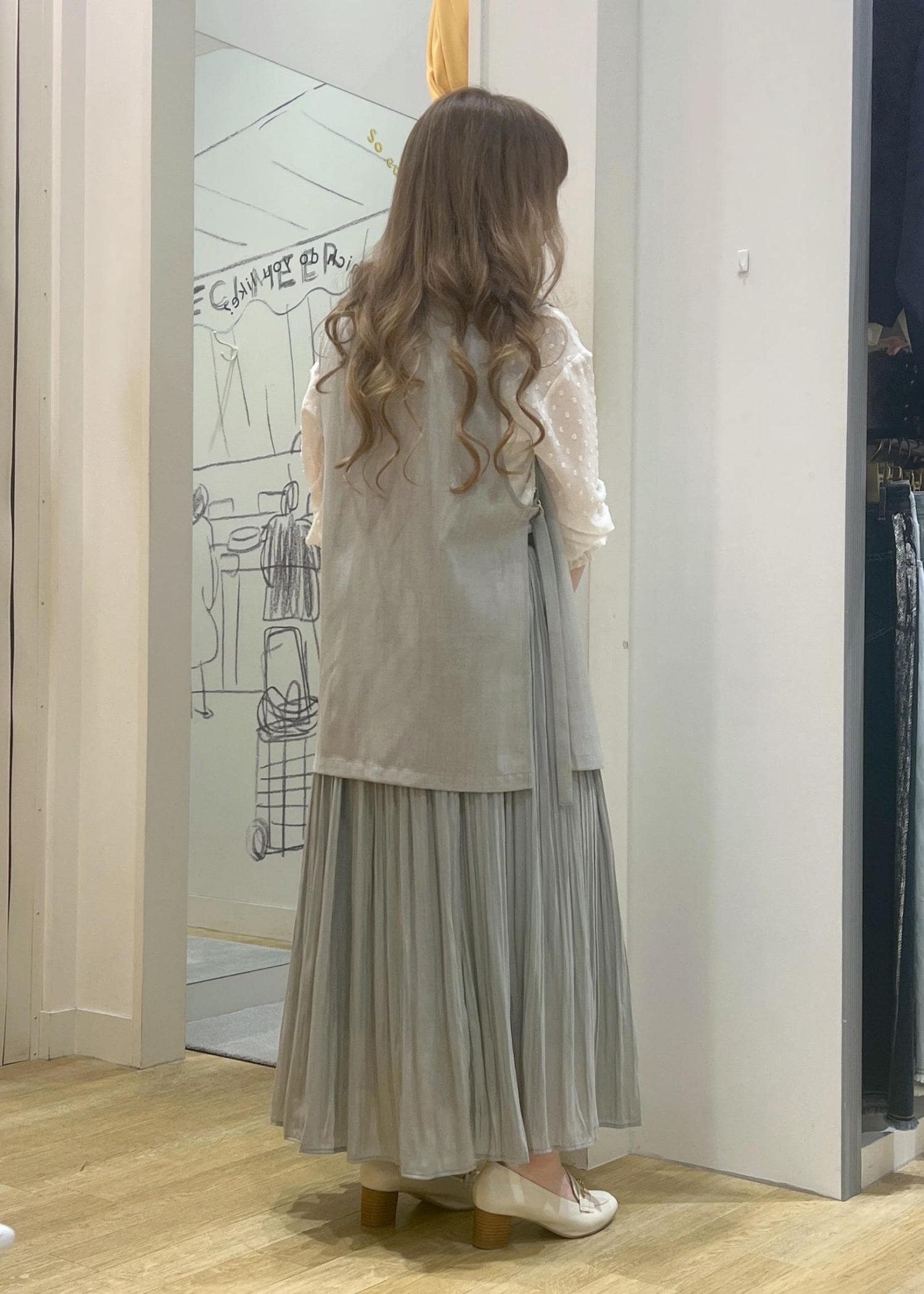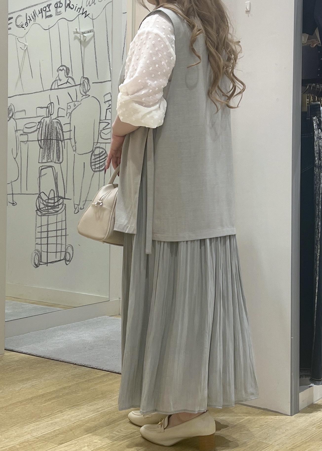 トップスのドット柄ブラウスはシアー素材になっていて透け感が可愛く、袖もボリュームのあるシルエットになっているのでふんわりした可愛しい雰囲気になります♪