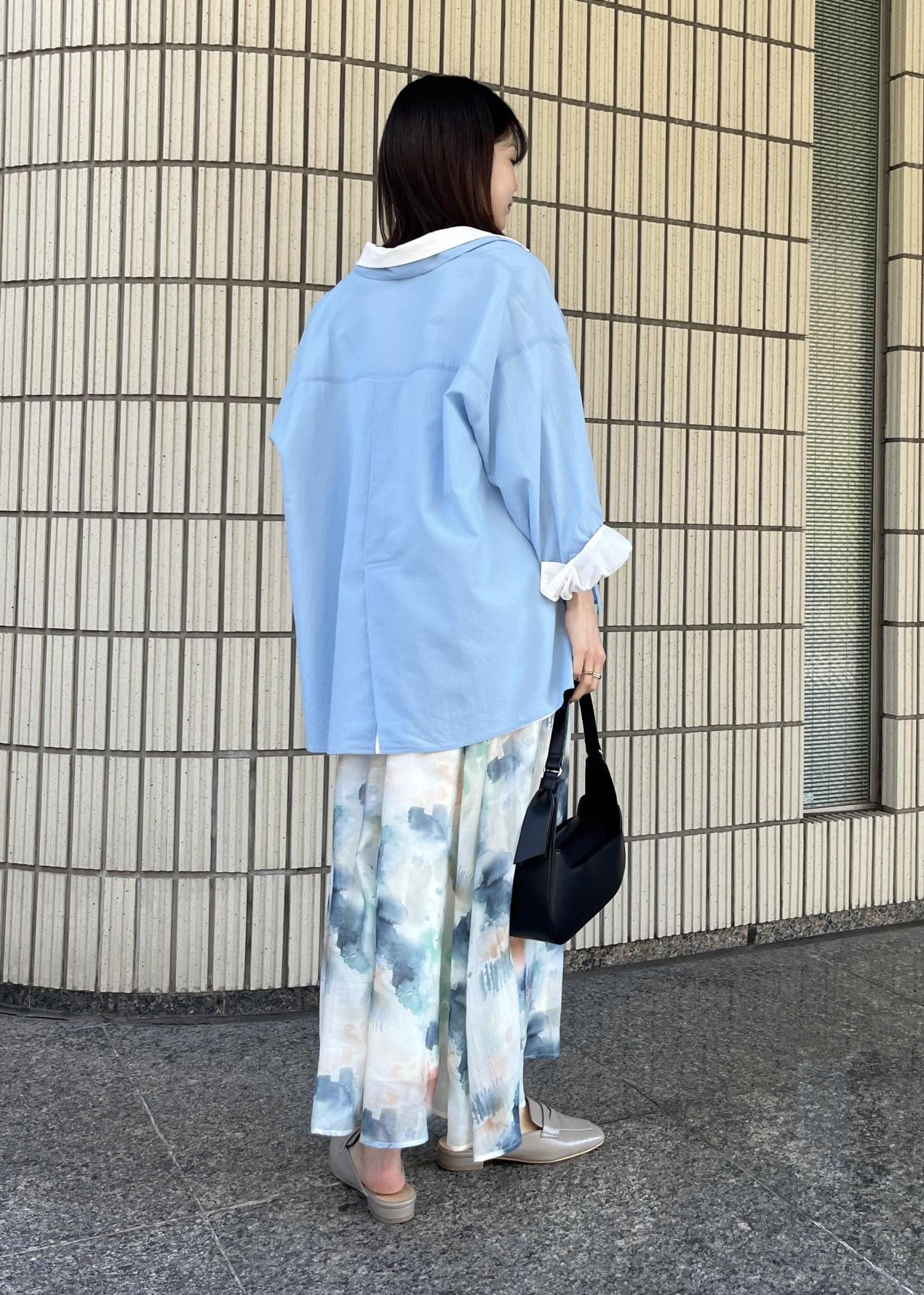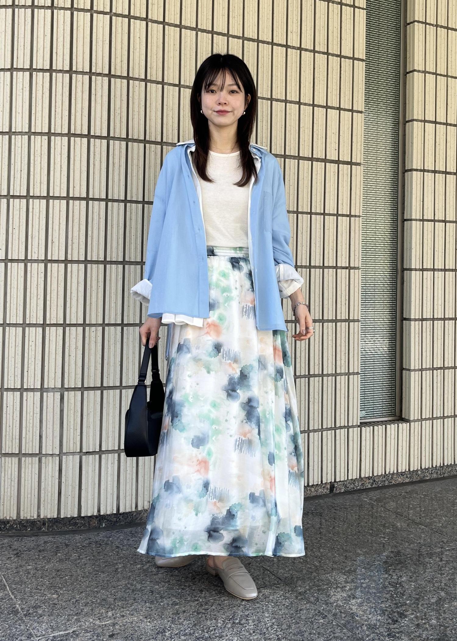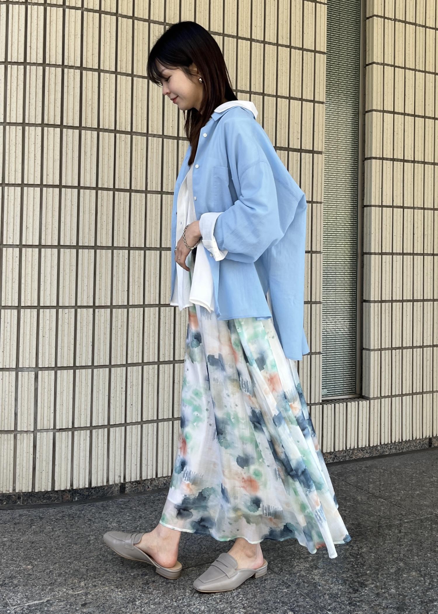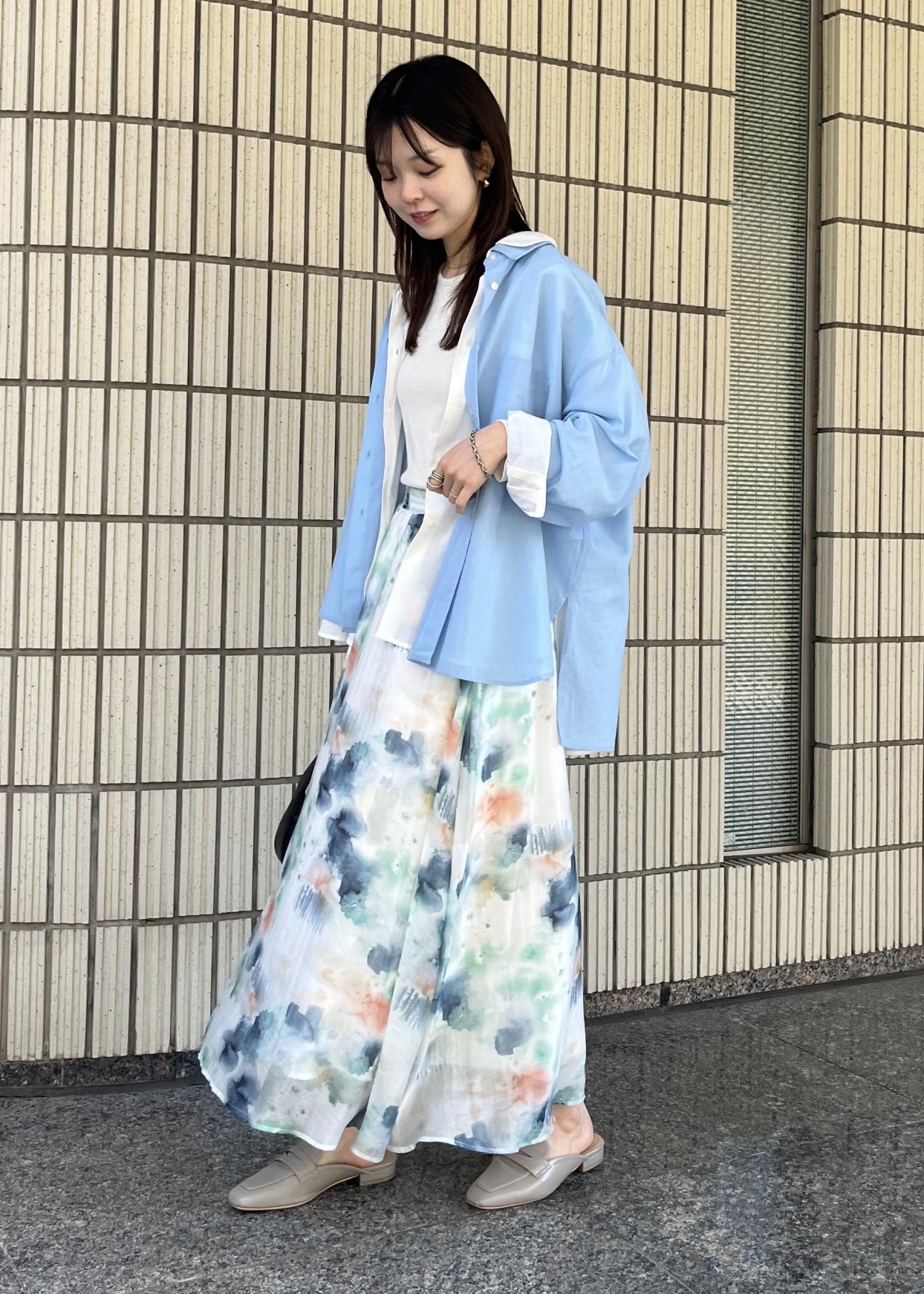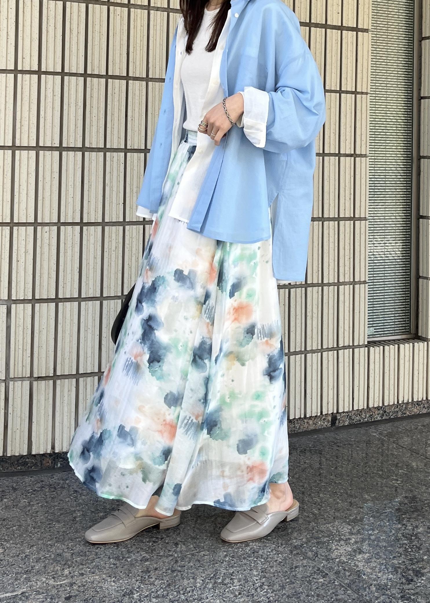同系色のスカート合わせが新鮮で◎