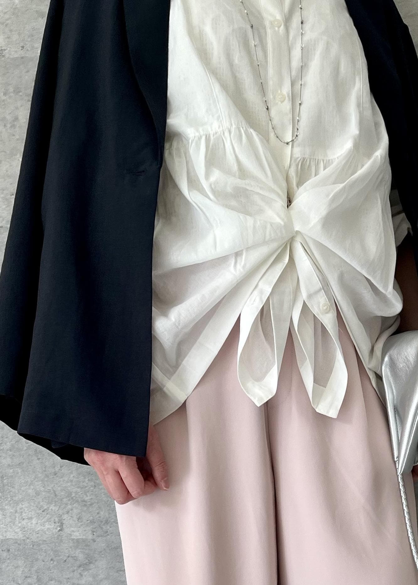 このコーデを考えたときに、ペプラムのデザインは私には少し甘めに感じたので、おすすめのシャツアレンジをして雰囲気を変えてみました☺︎