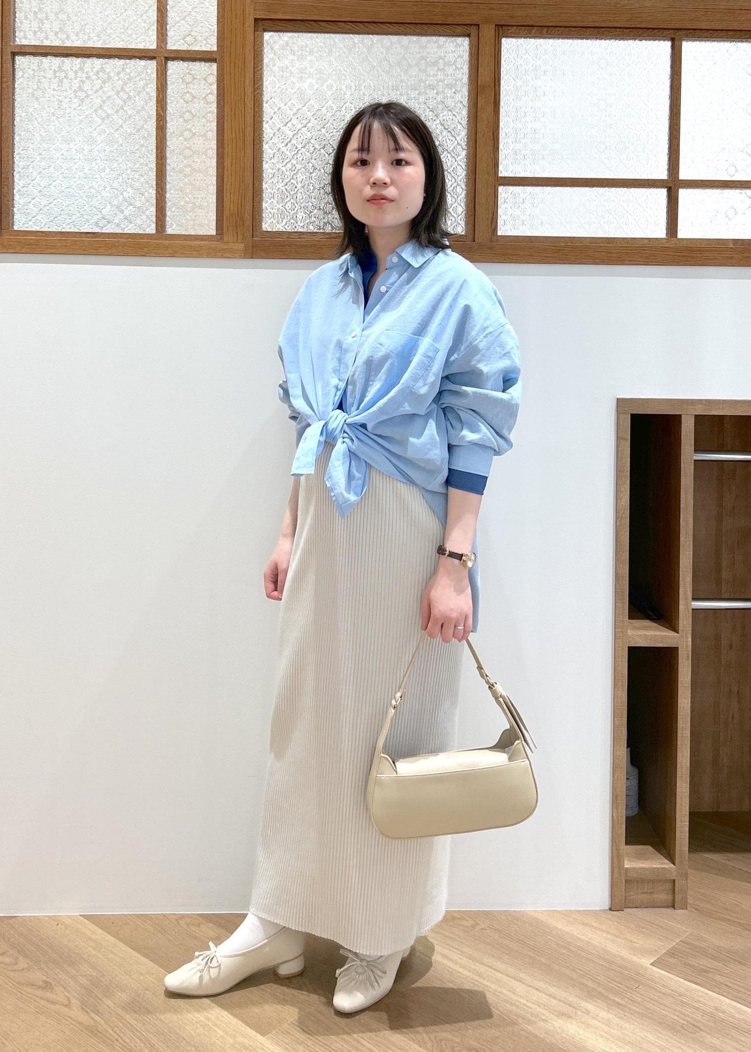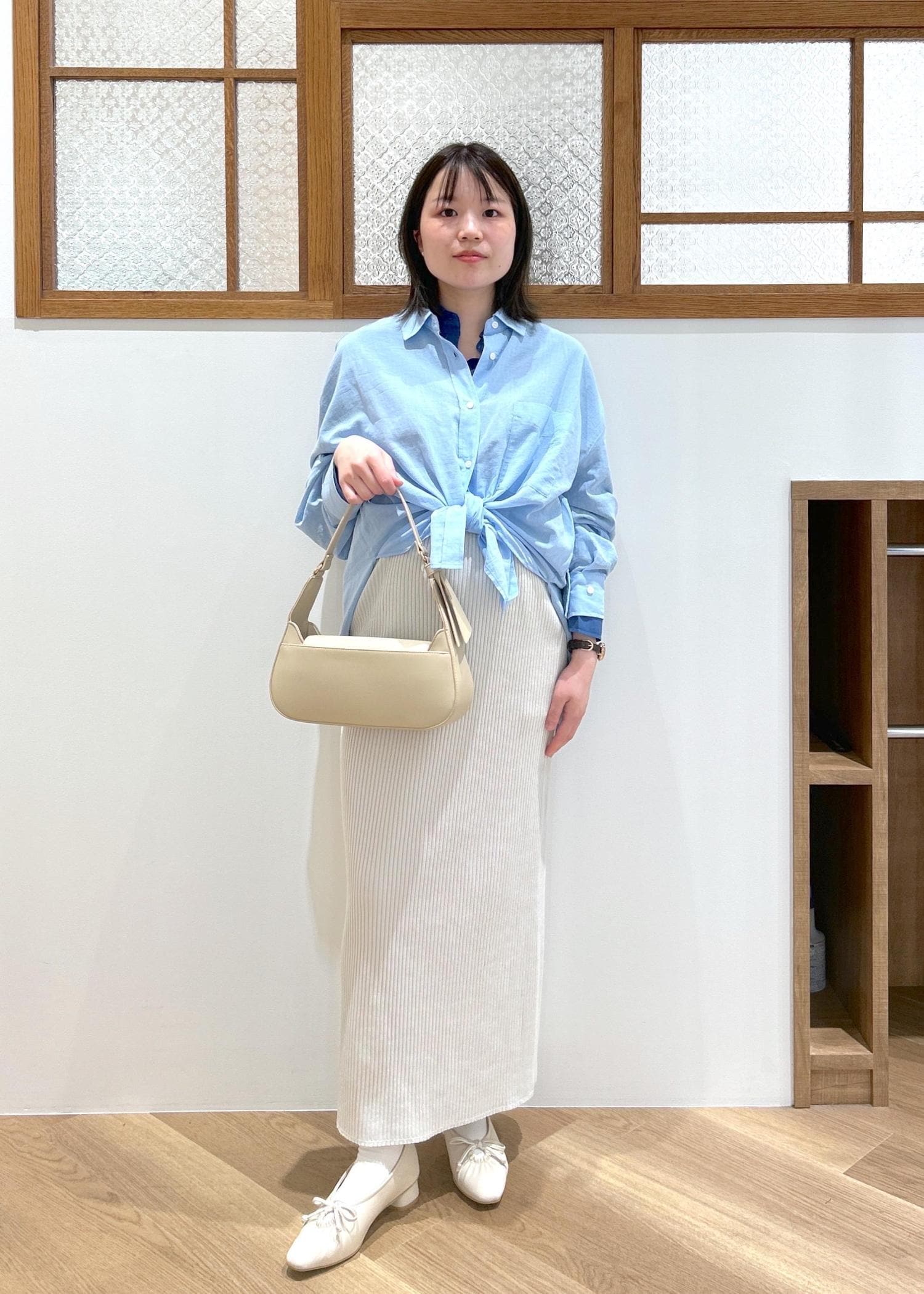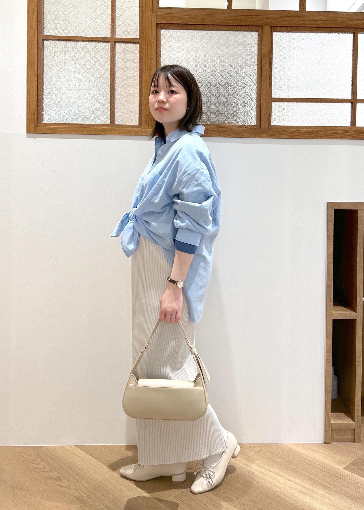同色系のブルーで合わせると統一感が生まれ、コーディネートが組みやすくなります。