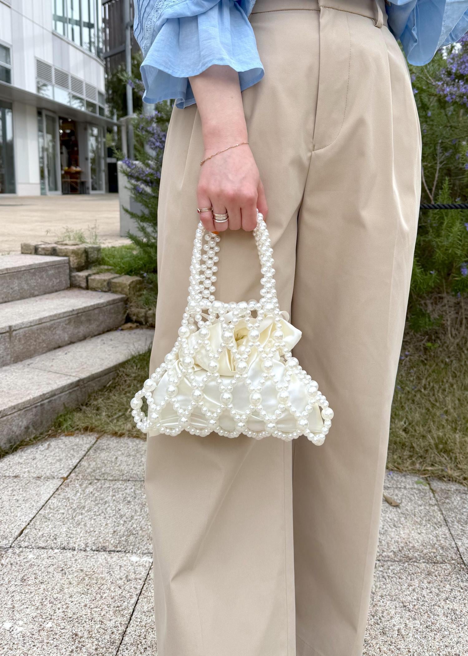 全体的にパールがちりばめてあるので、ドレスアップやカジュアルどちらでもお使いいただきやすいです。