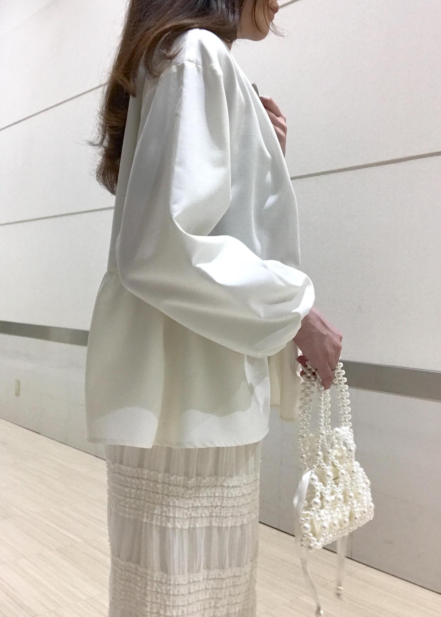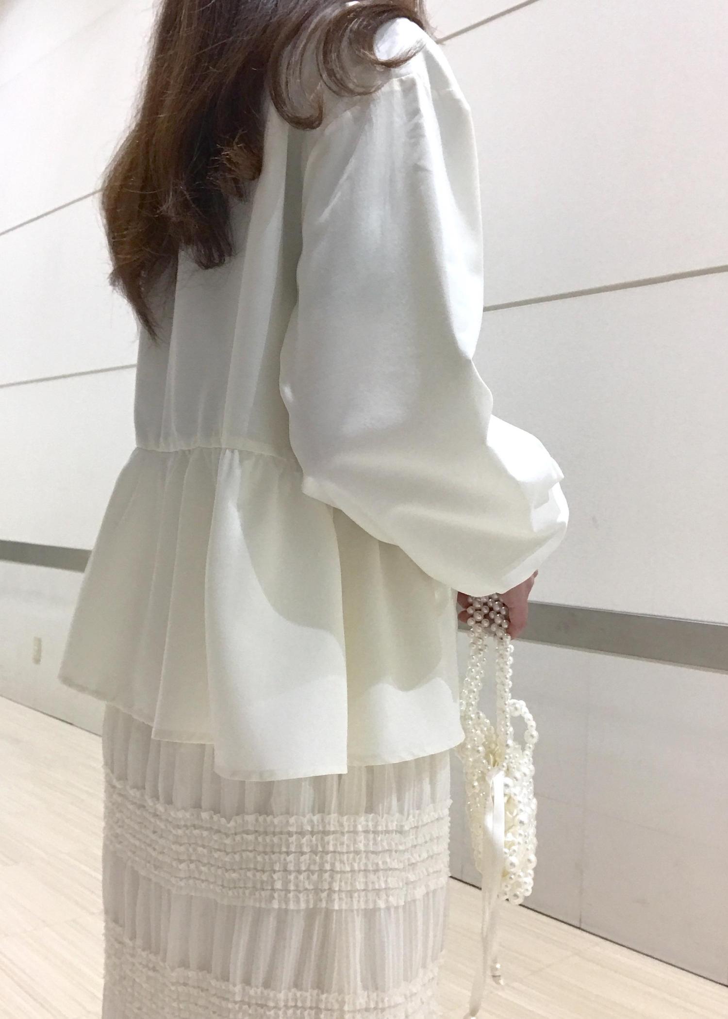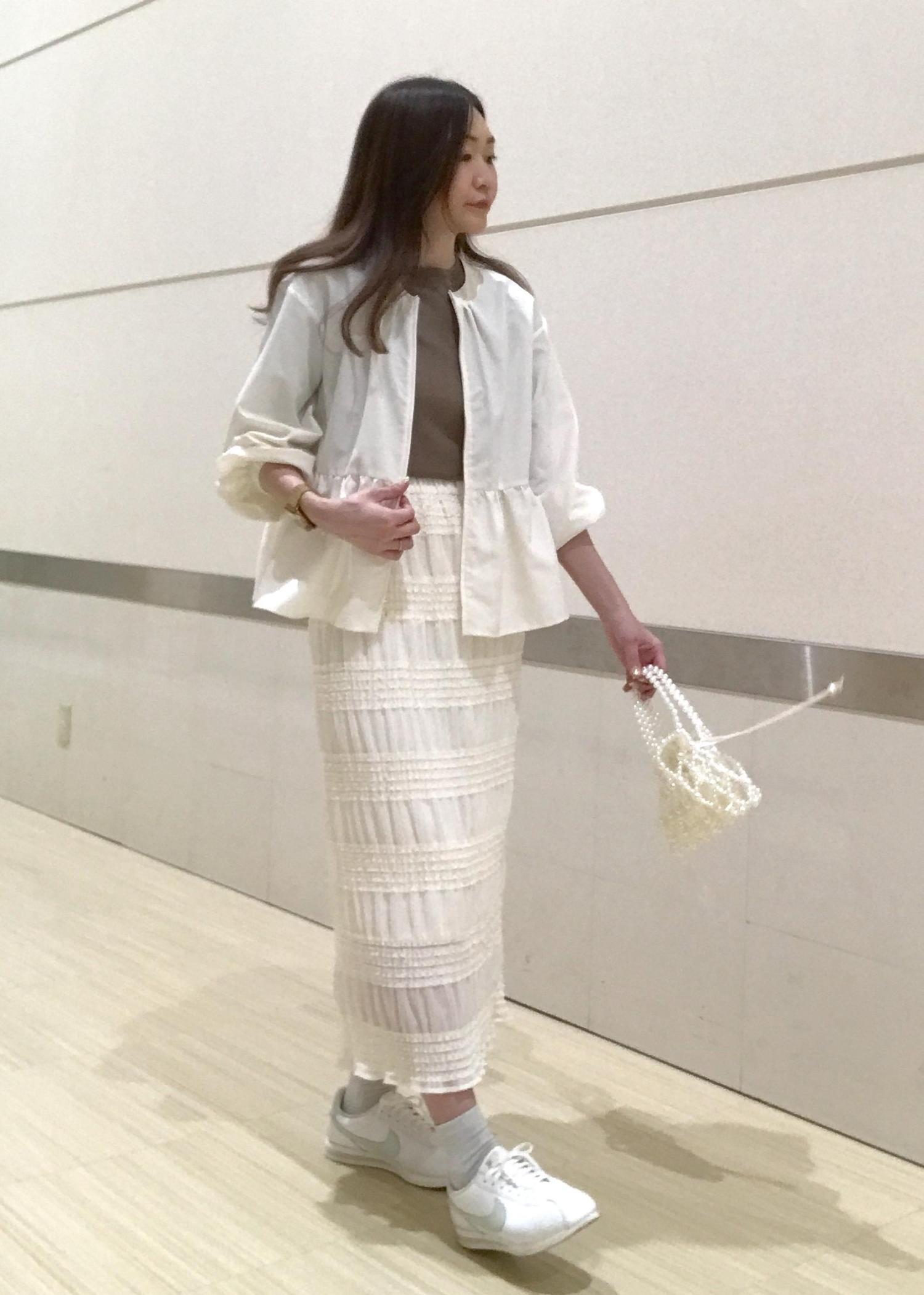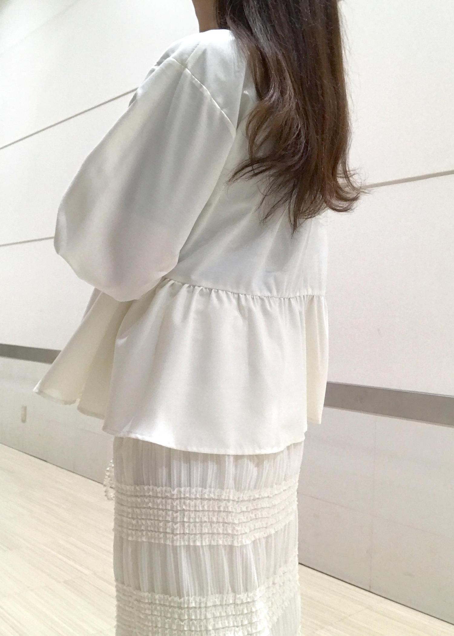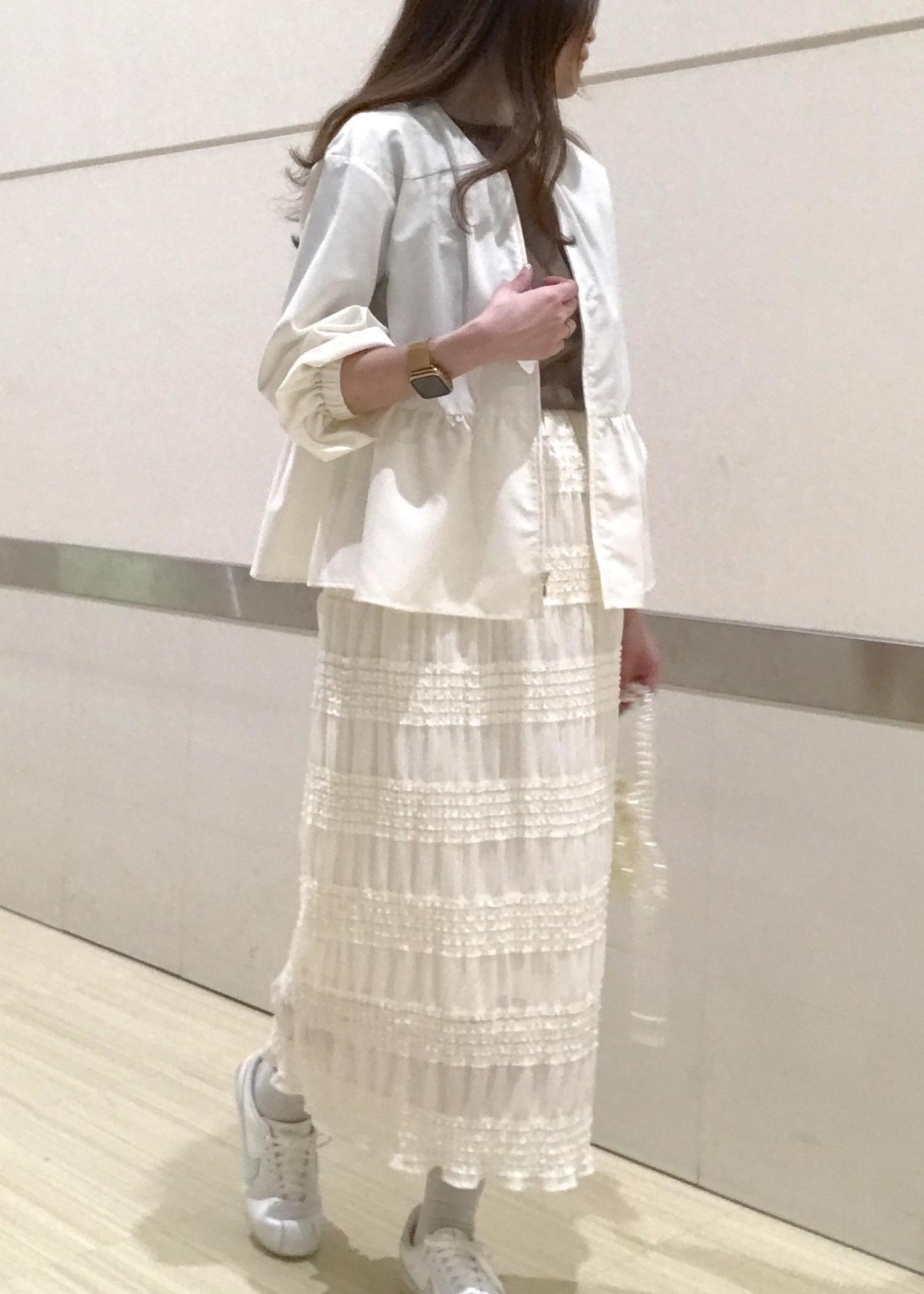 クリーンなホワイトカラーのブルゾンを軽やかなチュール素材スカートとコーディネートしました!