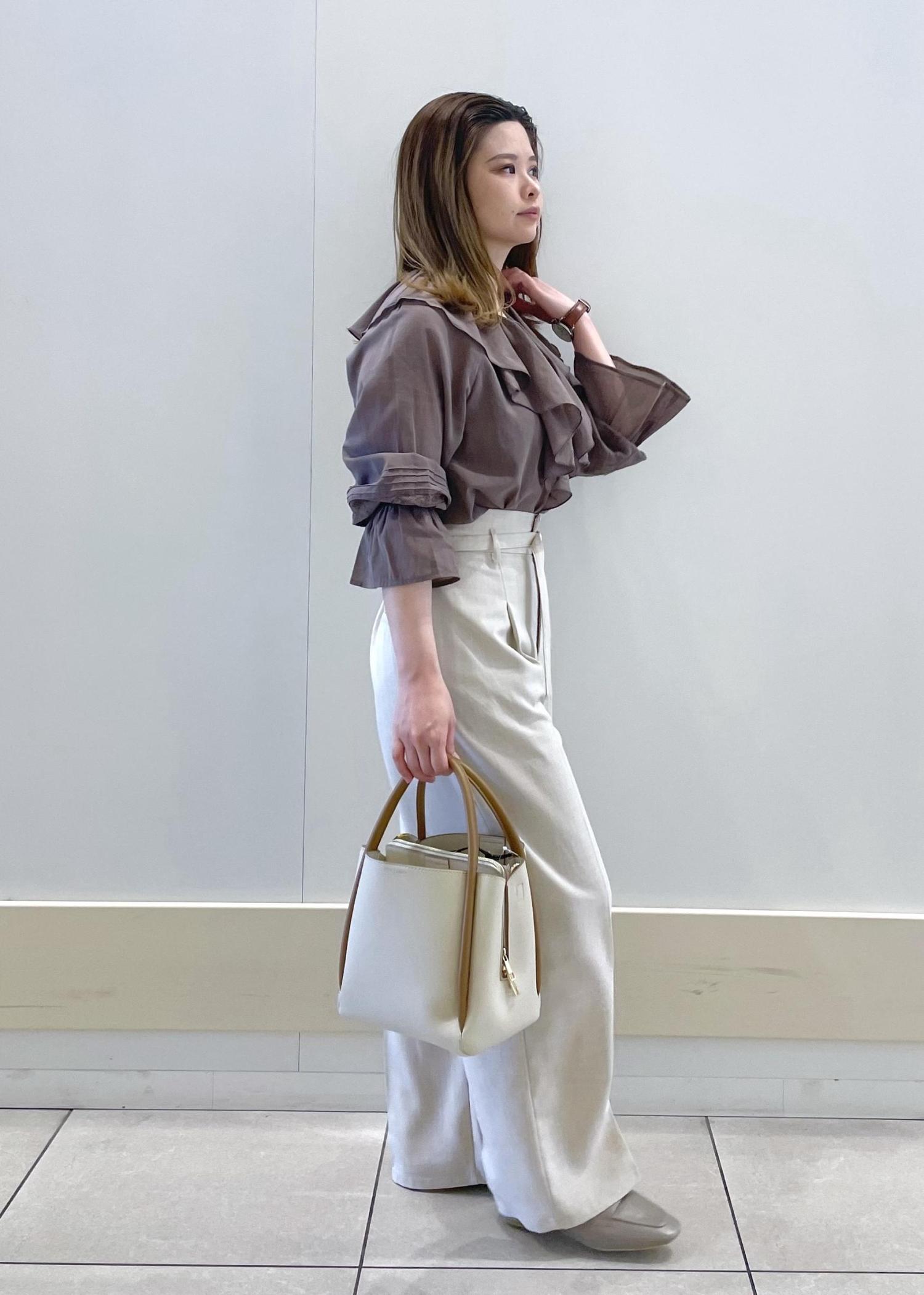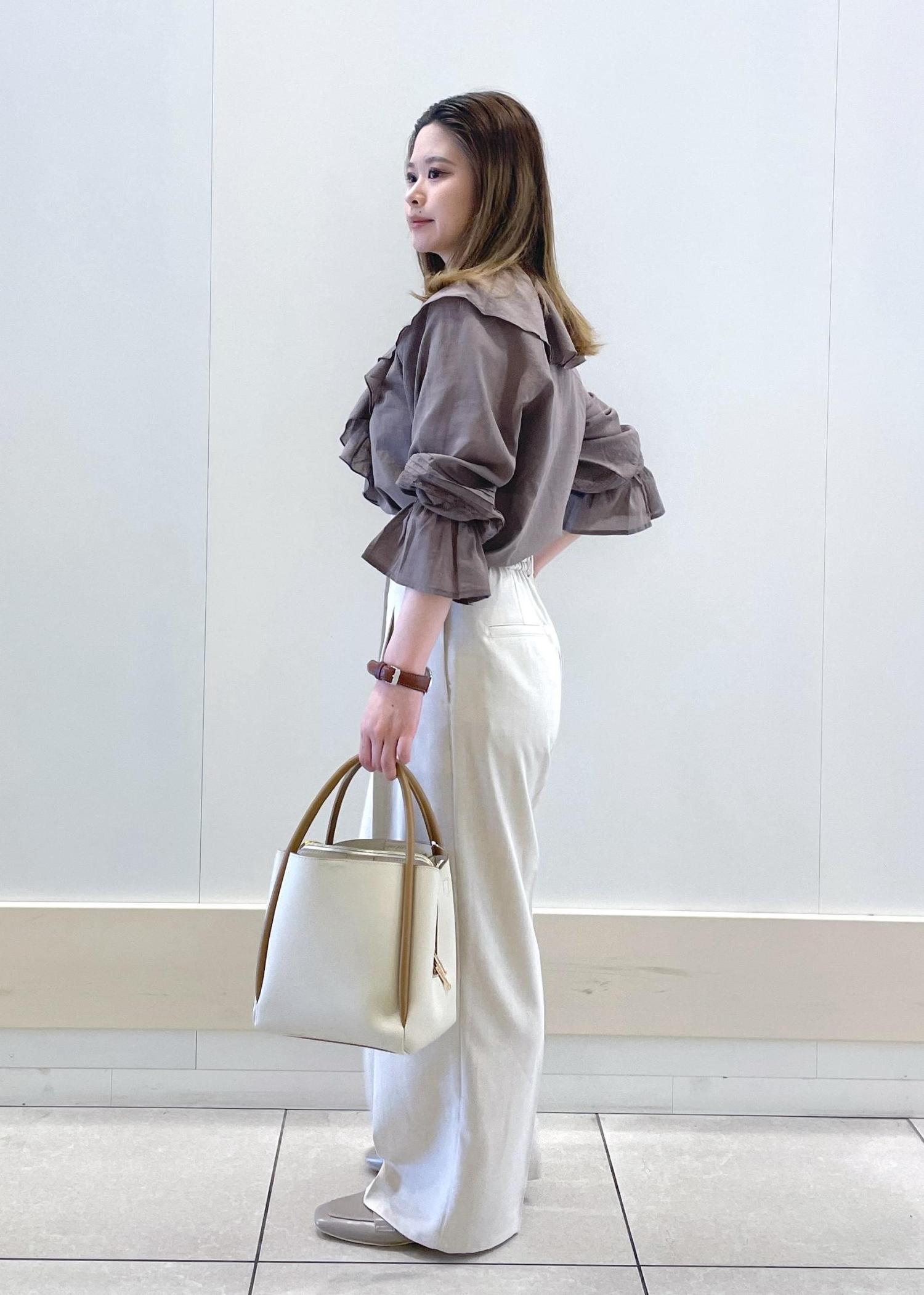 フリルブラウス×ブラウスで、上品な大人カジュアルコーデ。