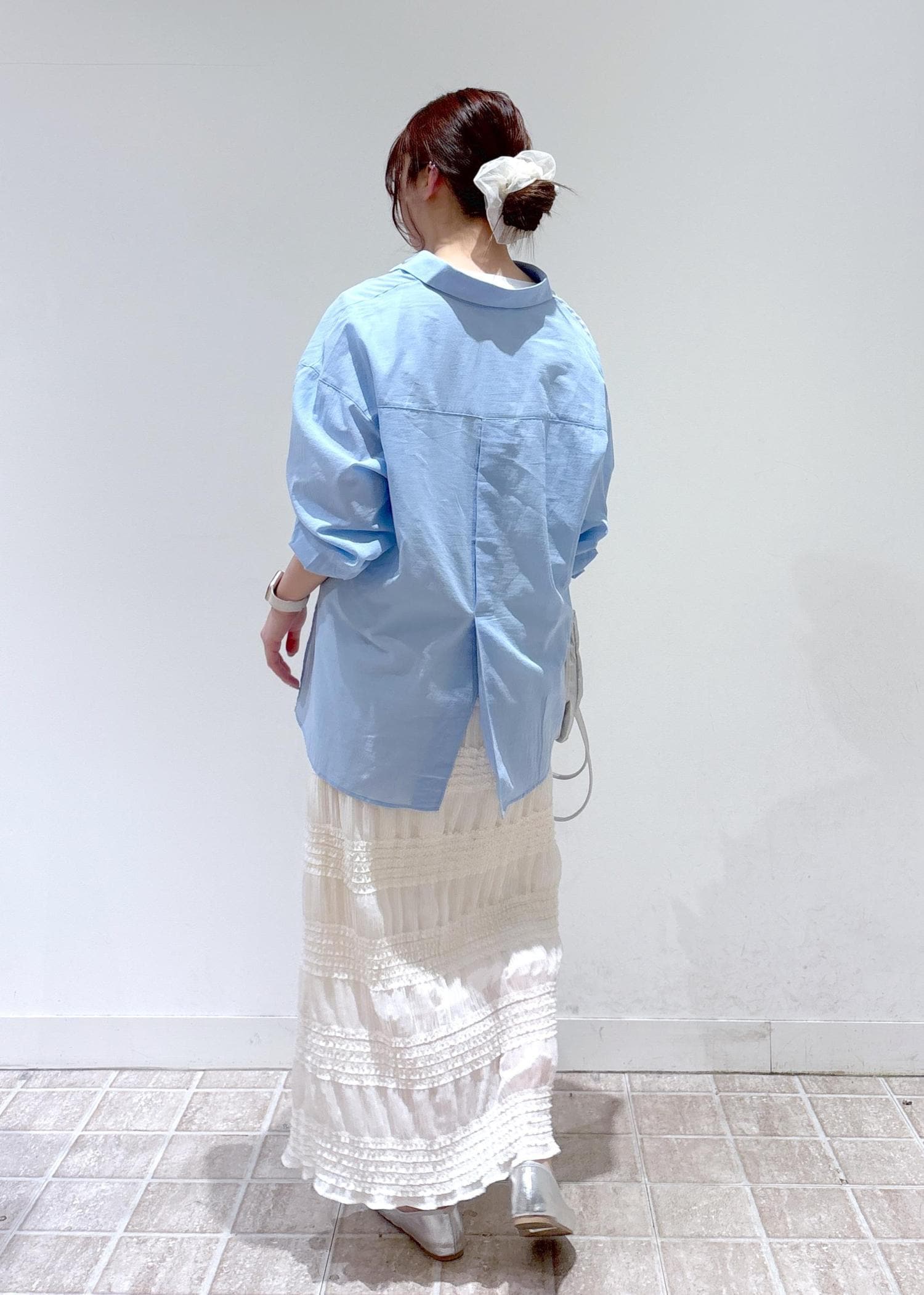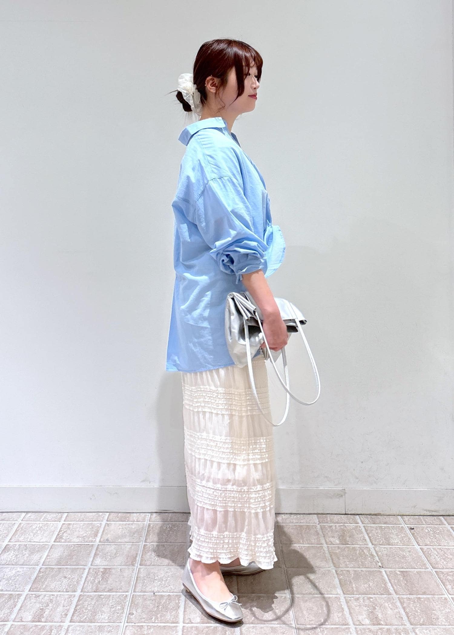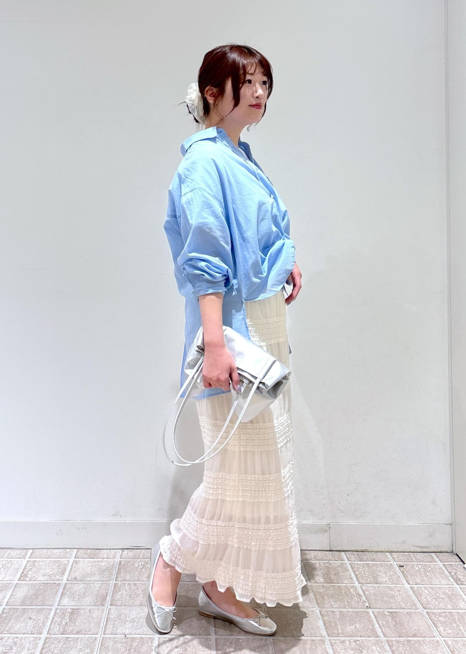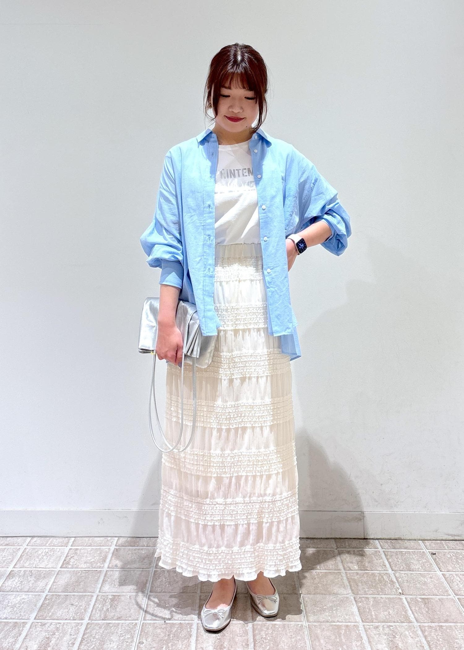 ブルーシャツのレディコーデ
